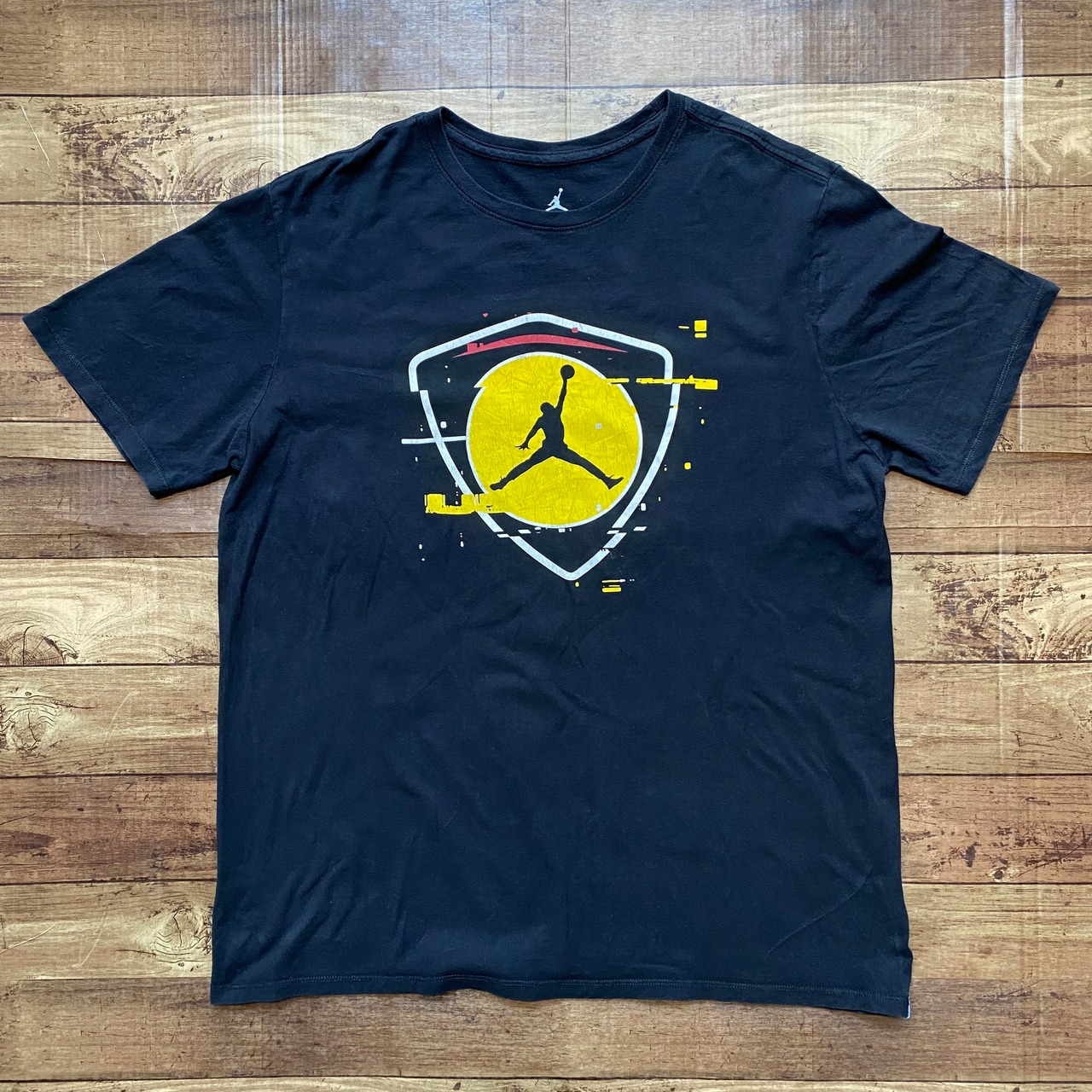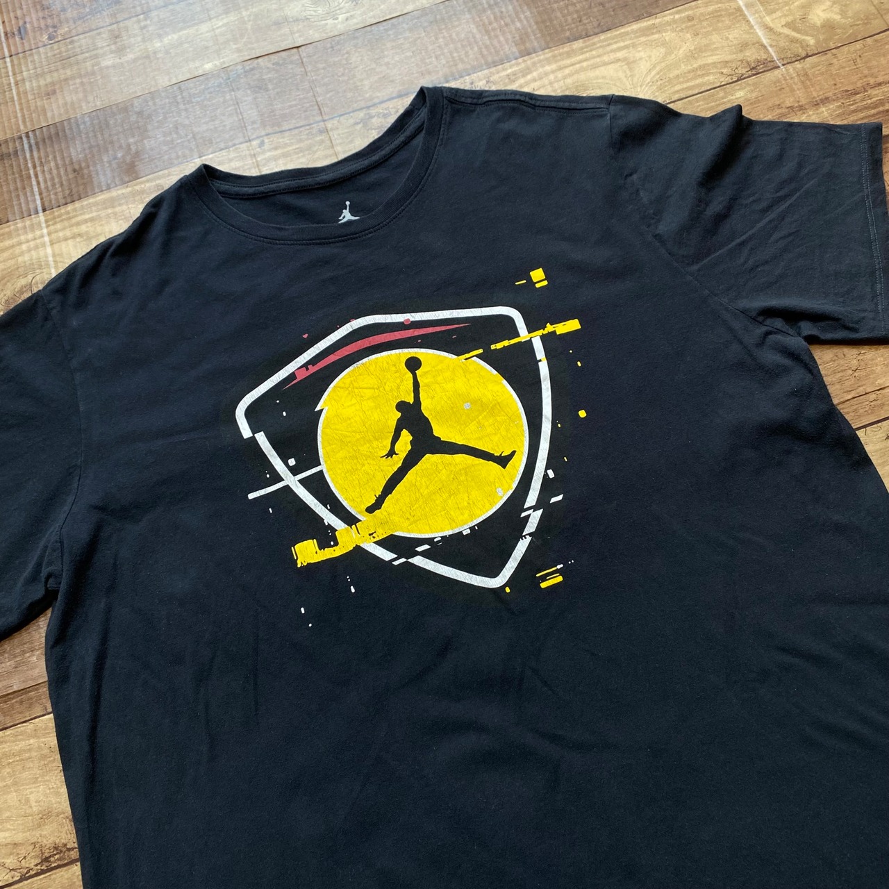 ジョーダンブランドのジャンプマンロゴが大胆にプリントされたTシャツ。ブラックベースにイエローとホワイトのアクセントが映える1枚。スポーツMIXやストリートスタイルにもおすすめです。