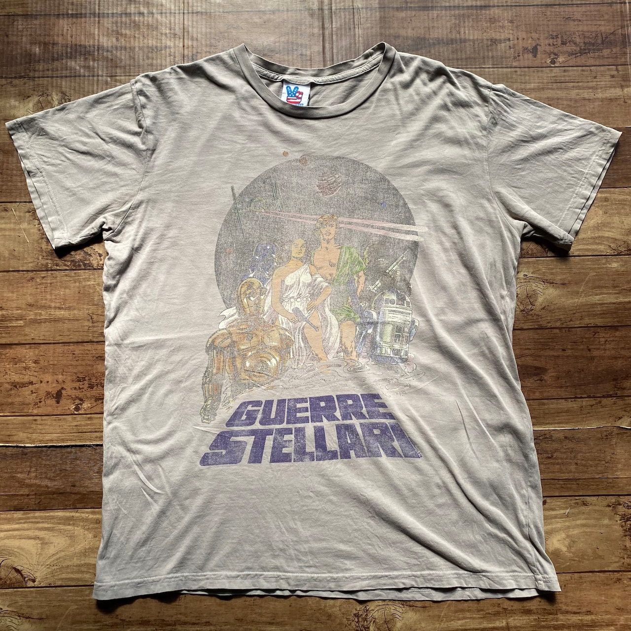 アメリカブランド「JUNK FOOD」によるスターウォーズ(イタリア語タイトル:GUERRE STELLARI)デザインのプリントTシャツです。ヴィンテージ加工が施されたようなフェード感と、柔らかいコットン生地が特徴。希少なUSA製モデルです。