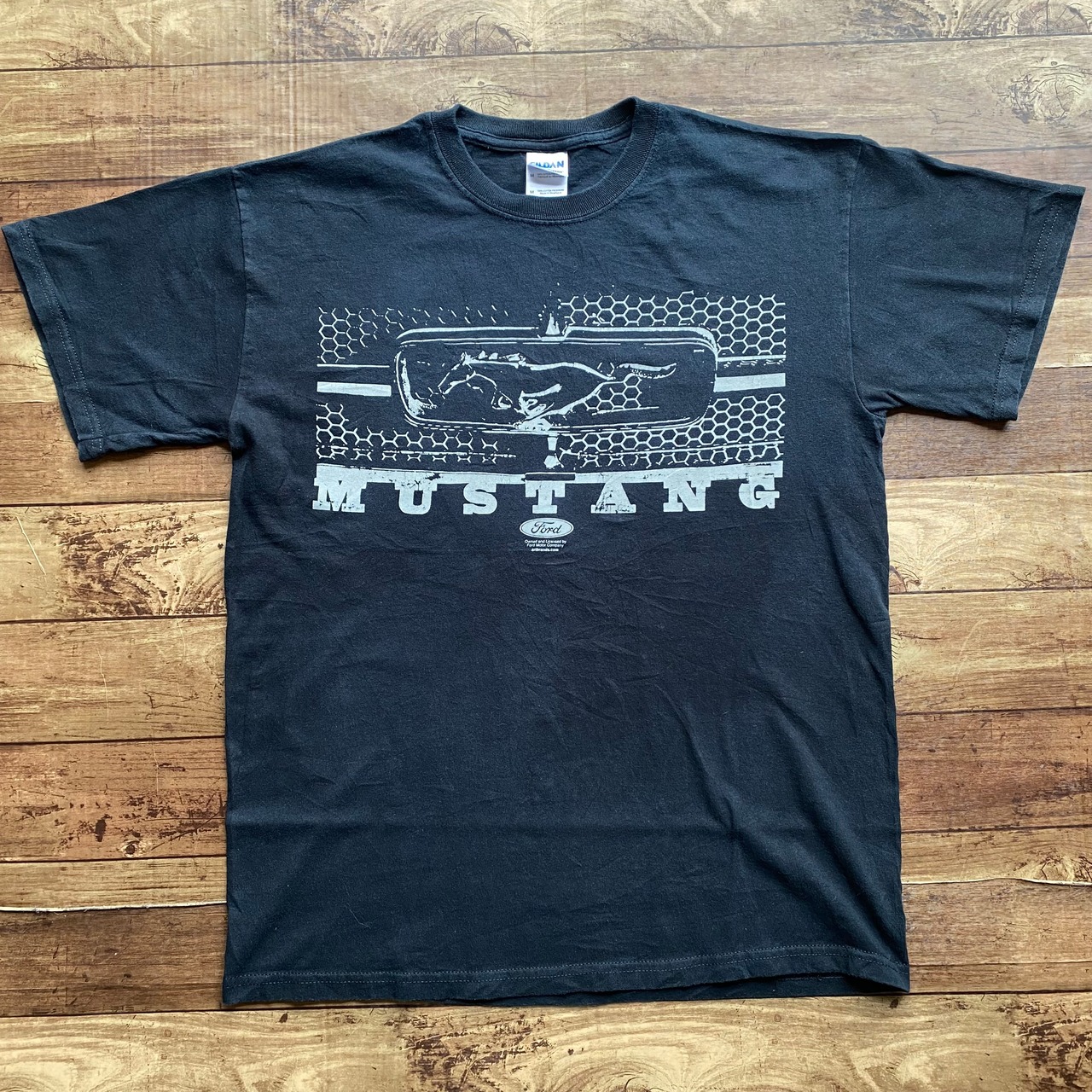 Ford Mustangの象徴的なフロントグリルを大きくプリントしたTシャツです。クラシックなアメ車ファンやフォード好きにおすすめの一枚で、シンプルながら存在感あるデザインが魅力。GILDAN Ultra Cottonボディを使用しており、しっかりとした生地感です。