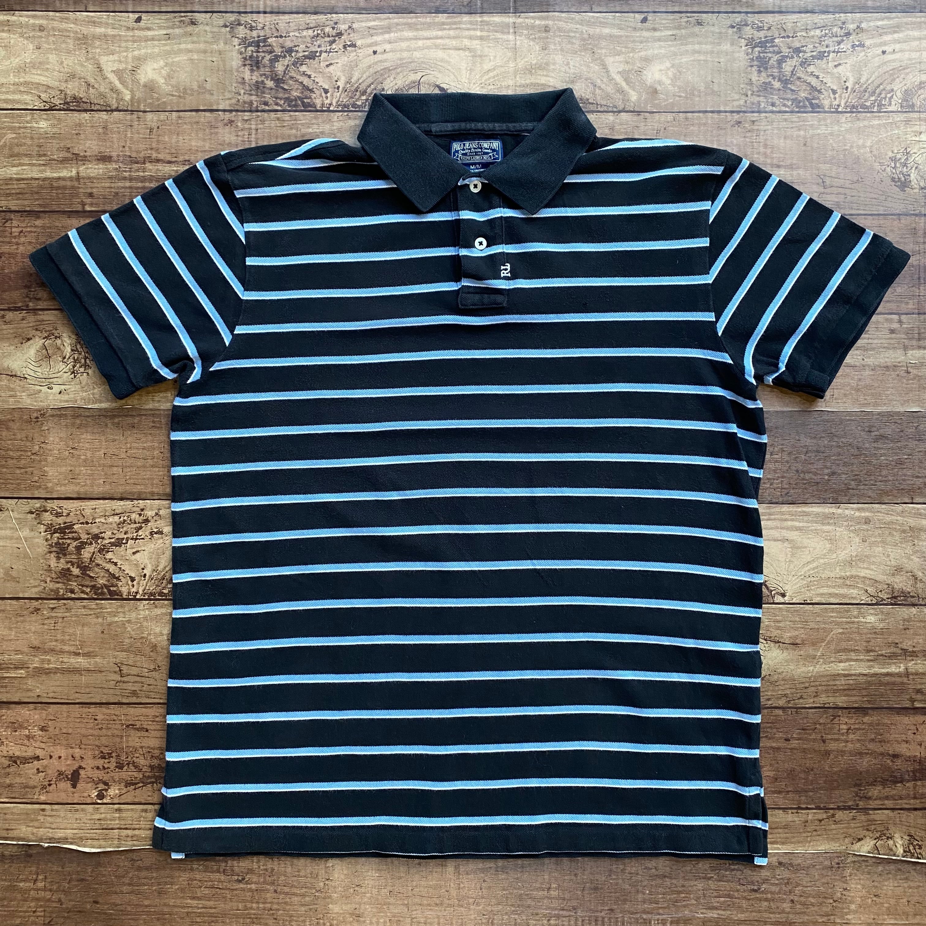 ブラックベースにブルーとホワイトのボーダーが映えるクラシックなデザイン。胸元には「RL」刺繍入りで、カジュアルにもキレイめにも合わせやすい一着です。