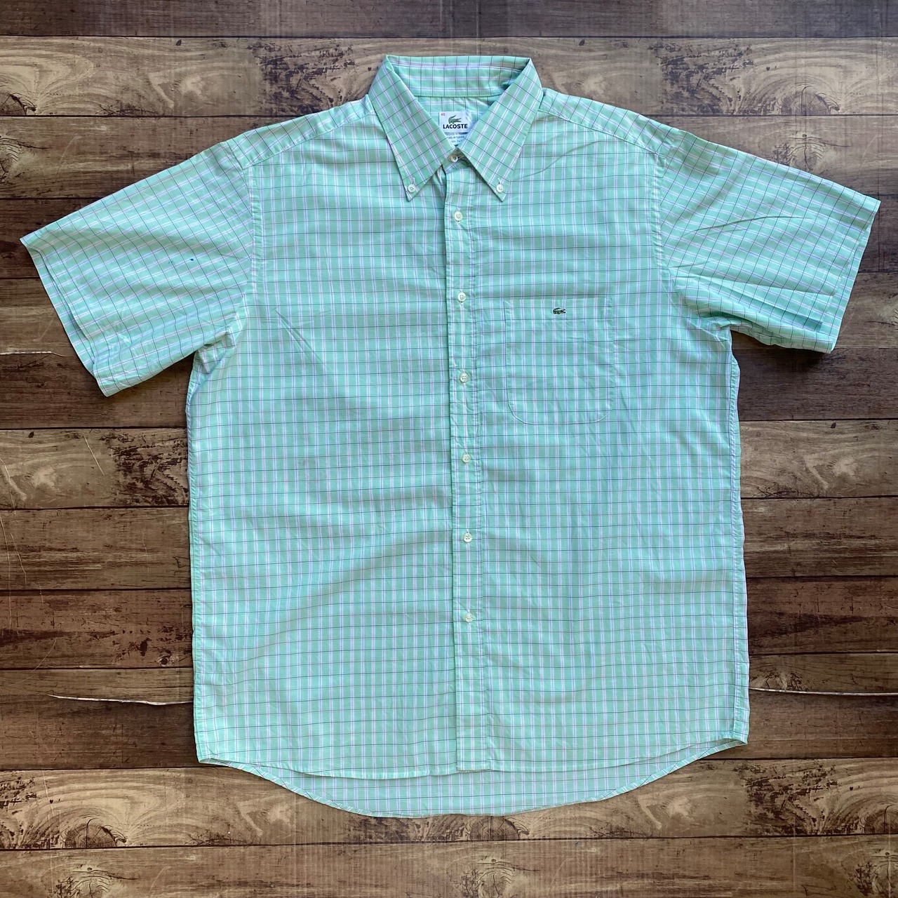 【90s】LACOSTE チェック柄 ボタンダウン 半袖シャツ グリーン - Size 45
