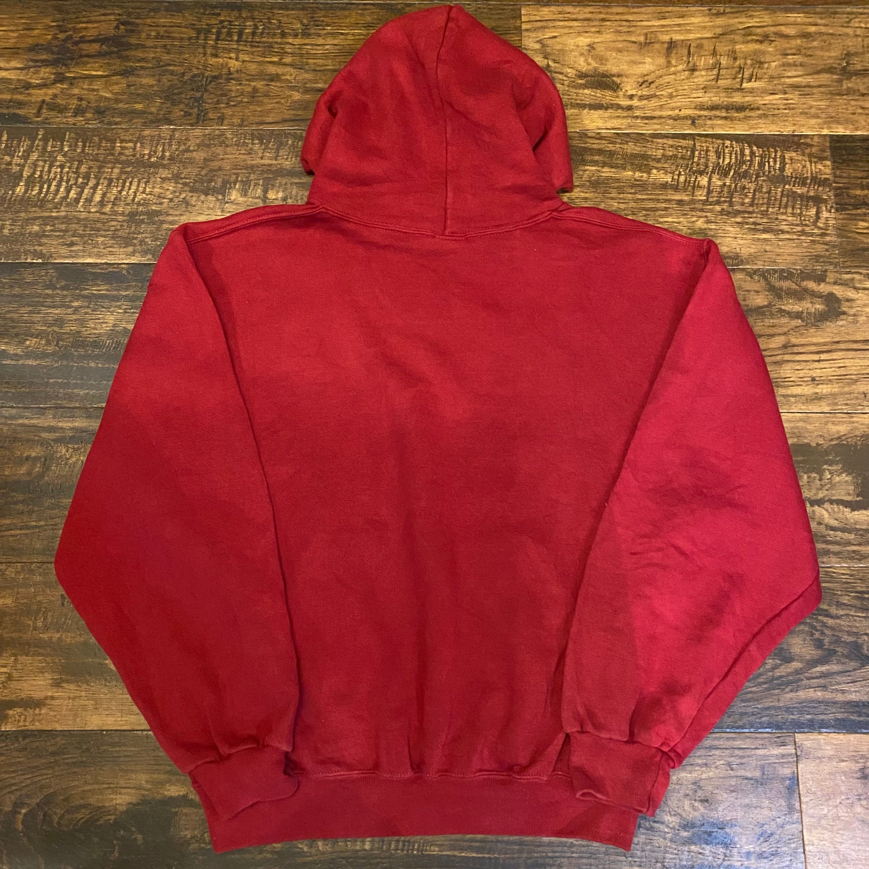 カレッジスウェットらしいバーガンディ×イエローの配色で、程よいフェード感が魅力です。