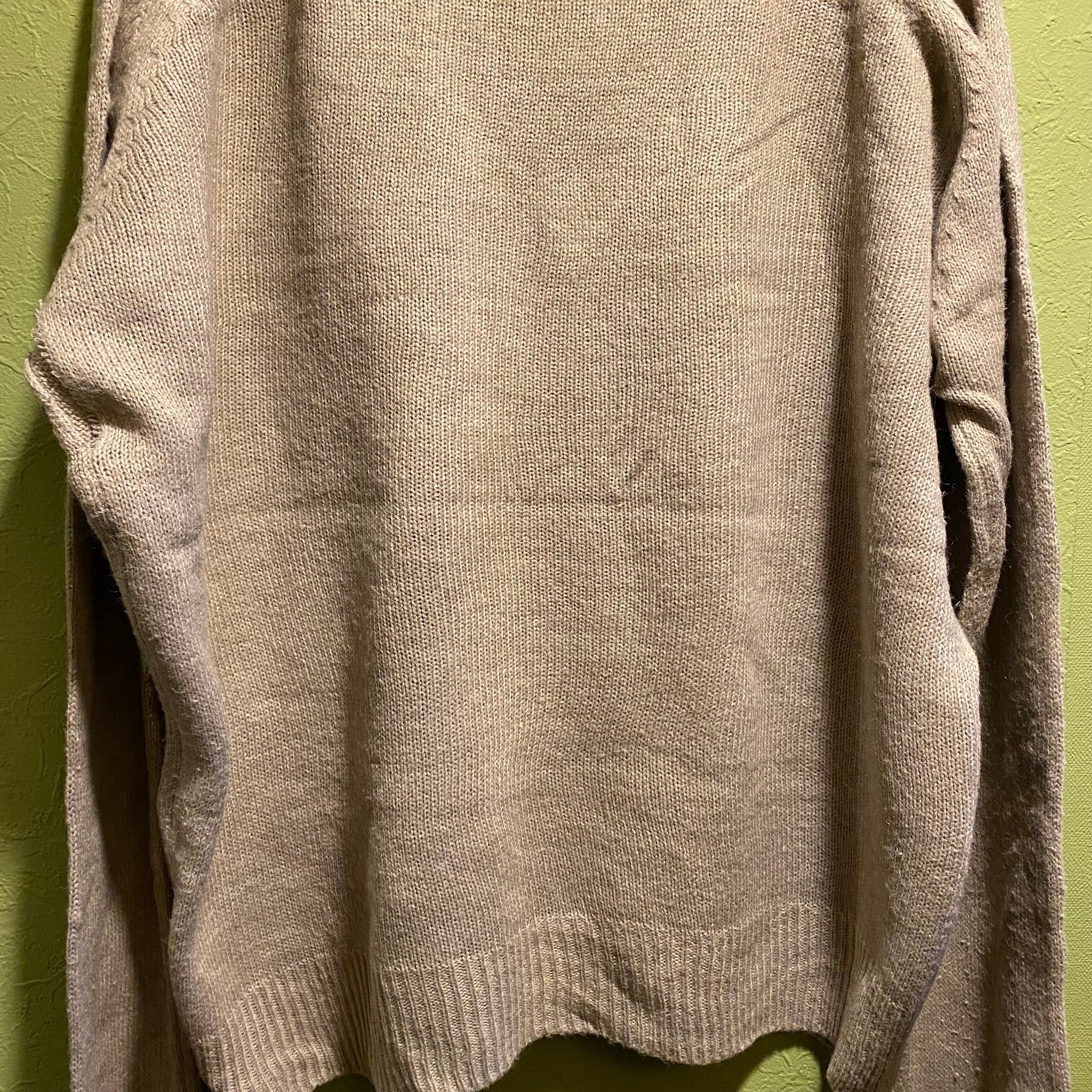 アクリル特有の軽さと柔らかい質感で着心地が良く、ベージュトーンの落ち着いたカラーリングが特徴です。ラグランスリーブでショルダーラインも馴染みやすく、ゆったりと着用できます。