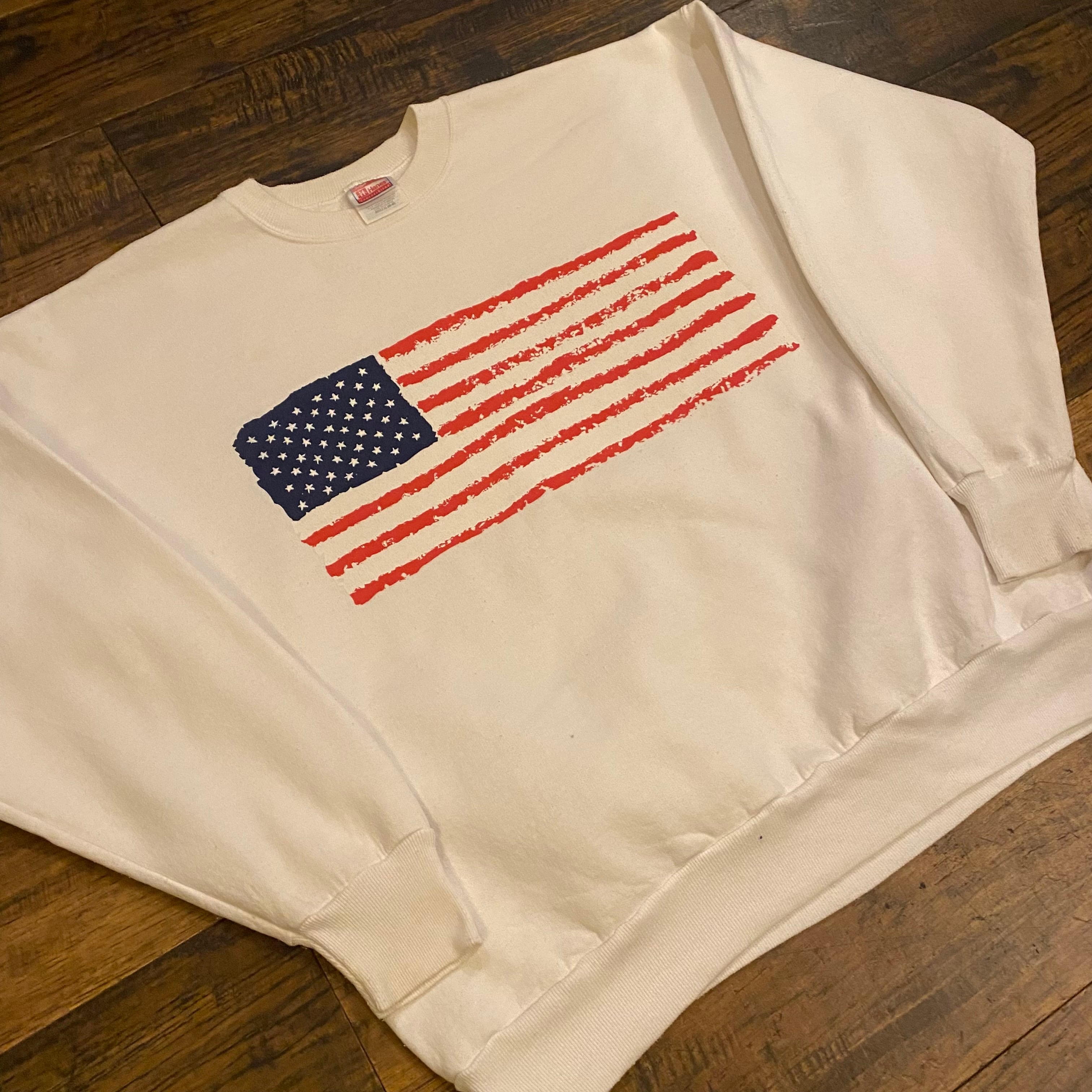 Hanes ComfortBlendボディを使用した、USAフラッグプリントのスウェット。