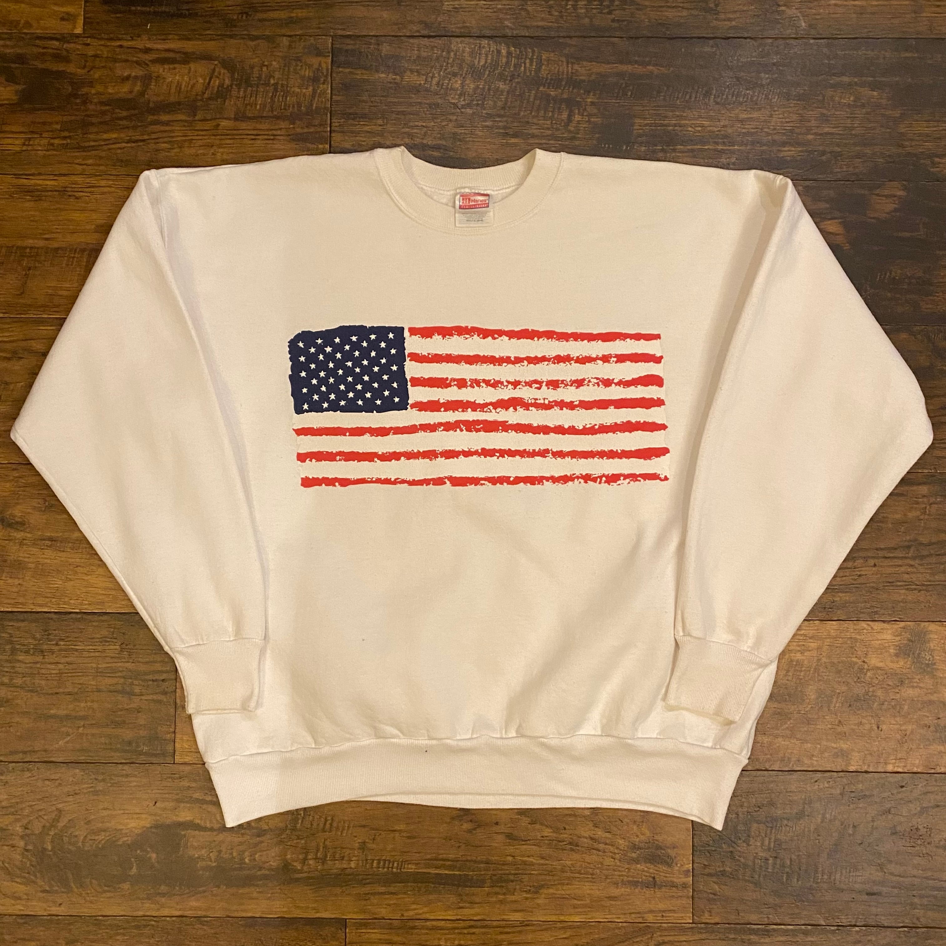 【00s】Hanes ComfortBlend USAフラッグ プリント スウェット ホワイト Size XL