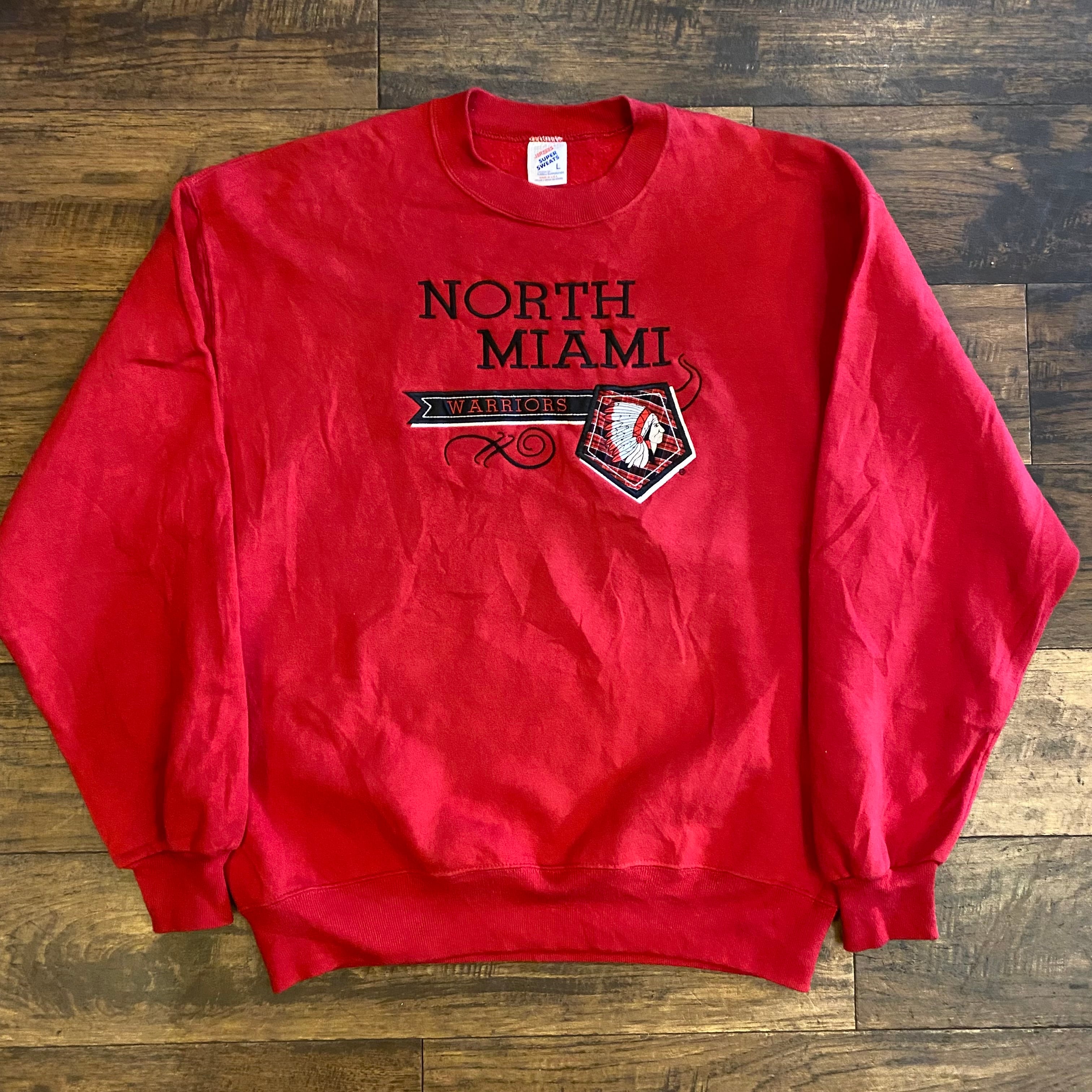 【USA製】80s JERZEES “NORTH MIAMI WARRIORS” プリント スウェット レッド Size L
