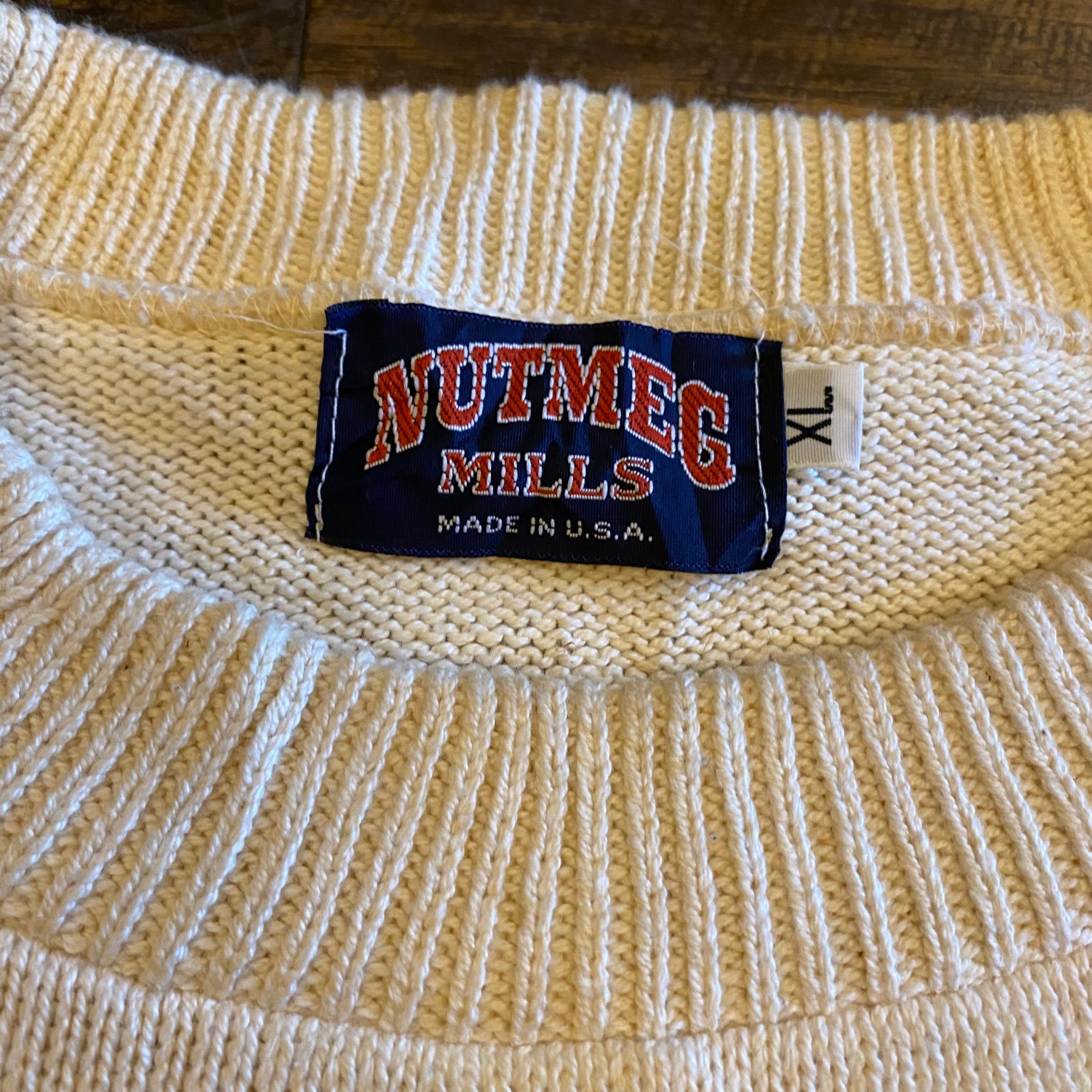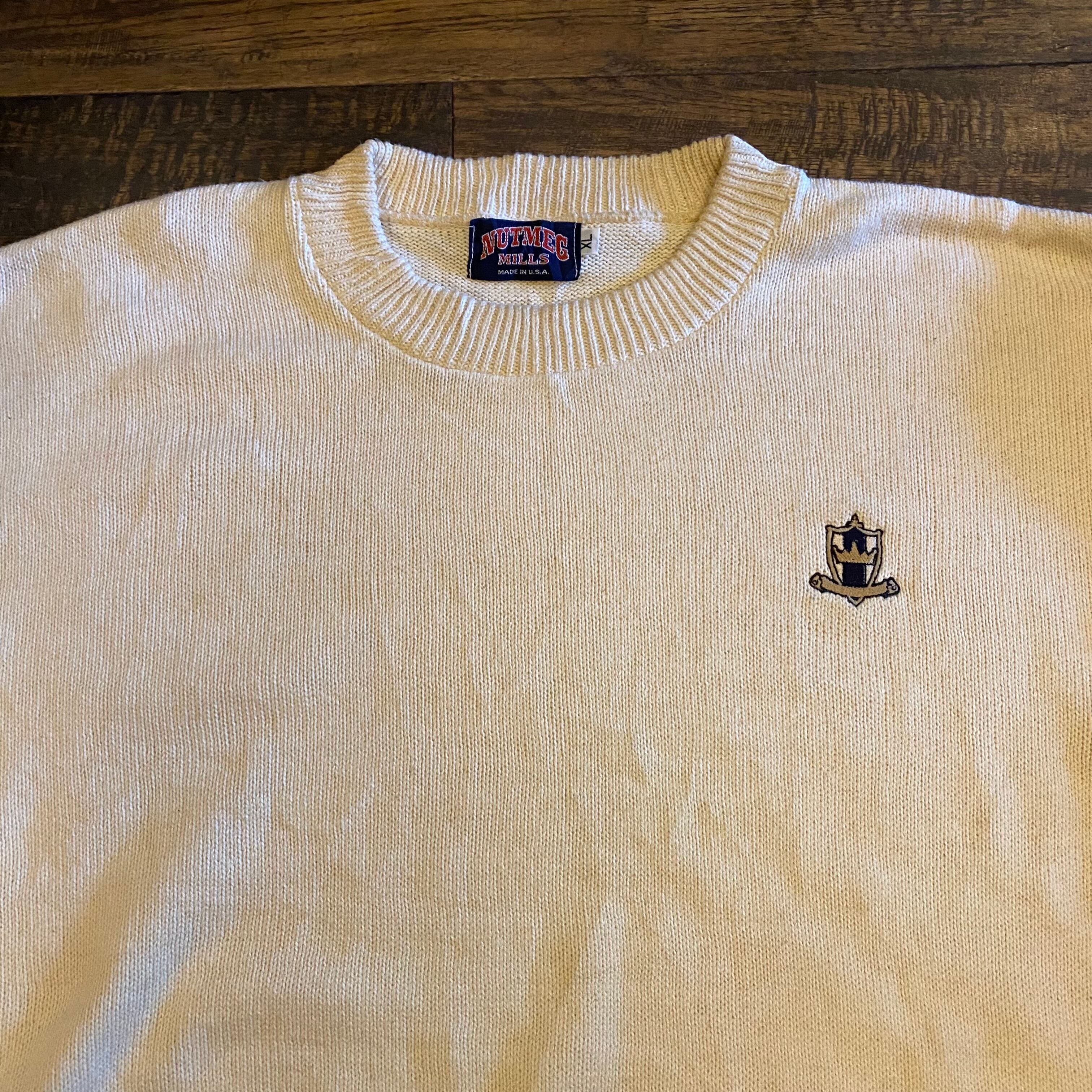 【USA製】90s Nutmeg Mills Cotton Knit Sweater White Size XL