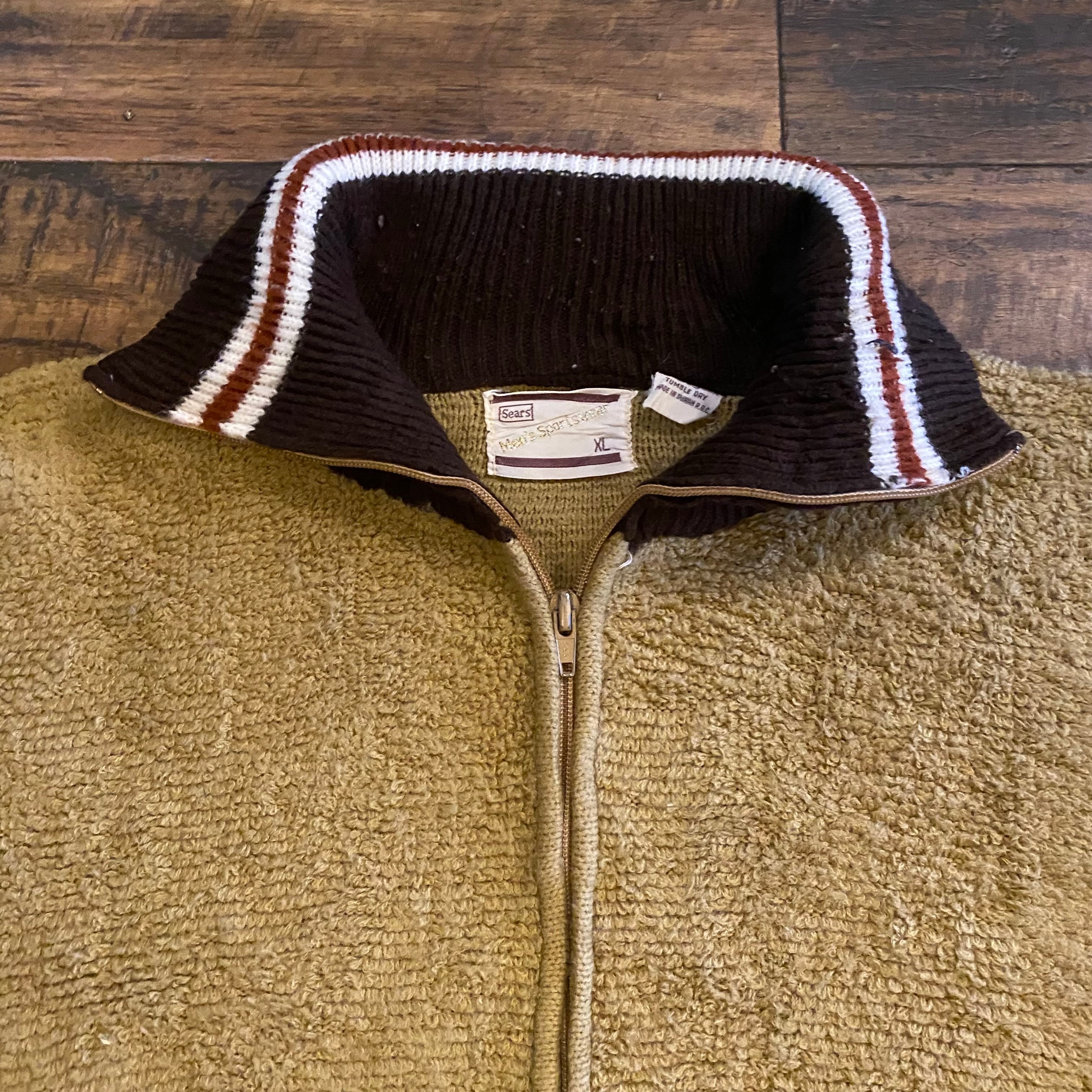 【70s〜80s】Sears Men's Sportswear アクリルボア ジップジャケット カーキ Size XL
