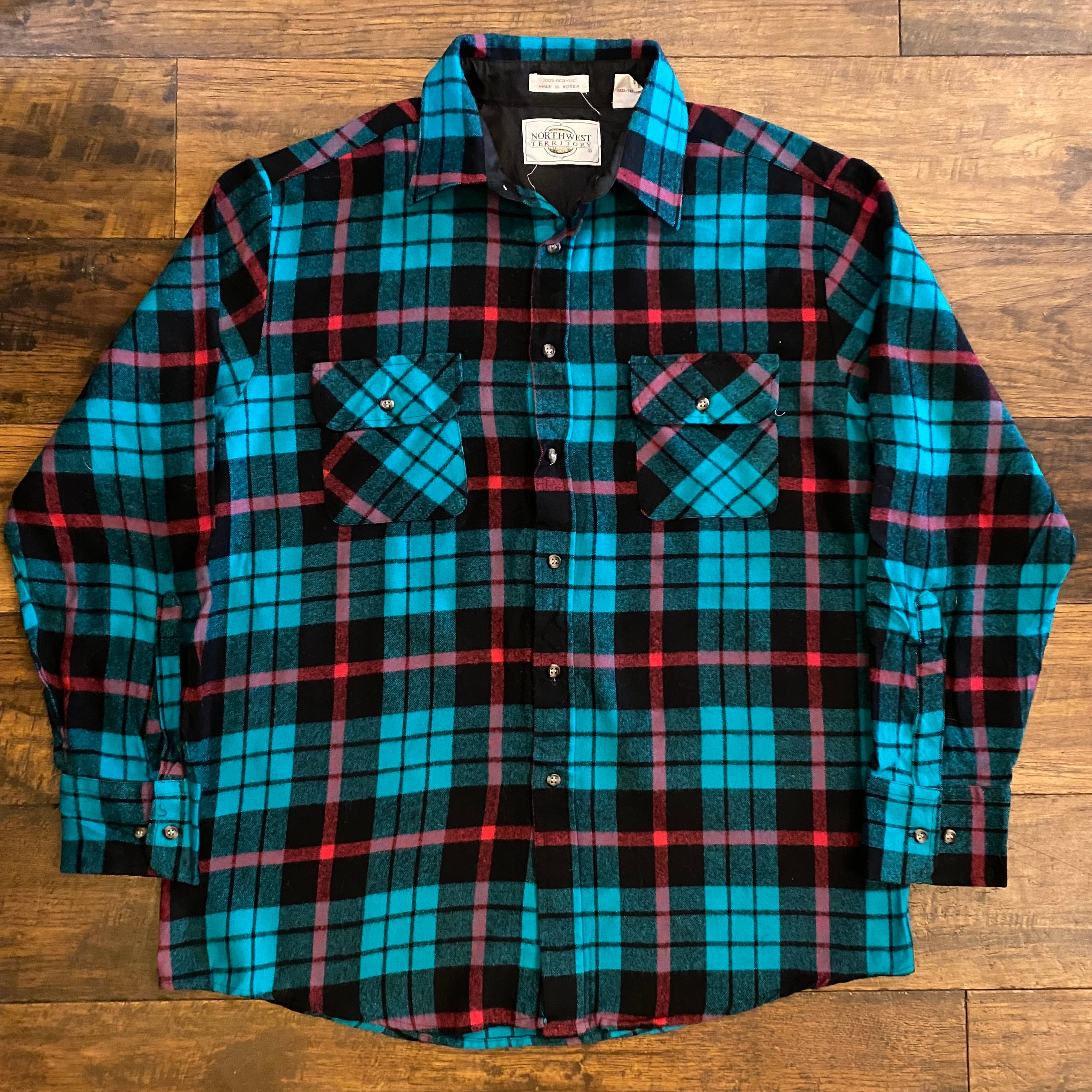 【90s】NORTHWEST TERRITORY チェック フランネル シャツジャケット ターコイズ Size L