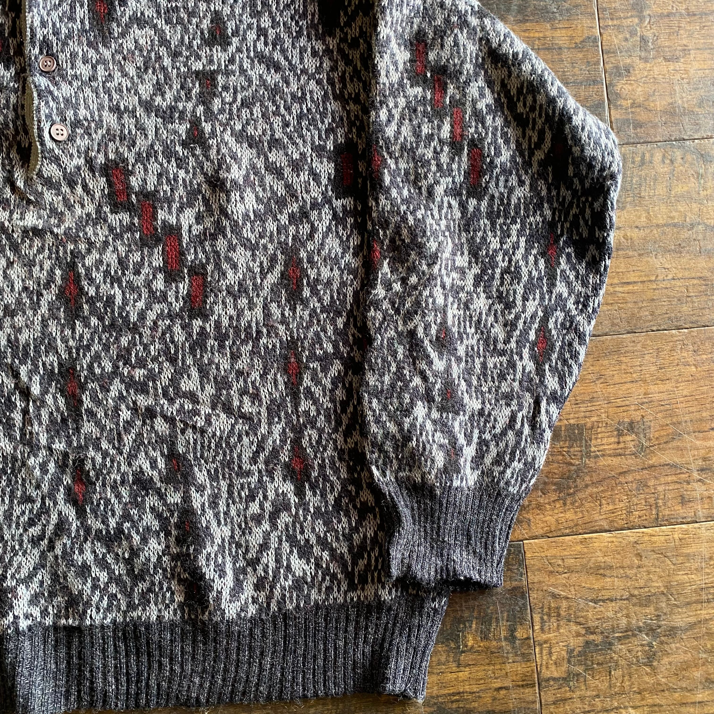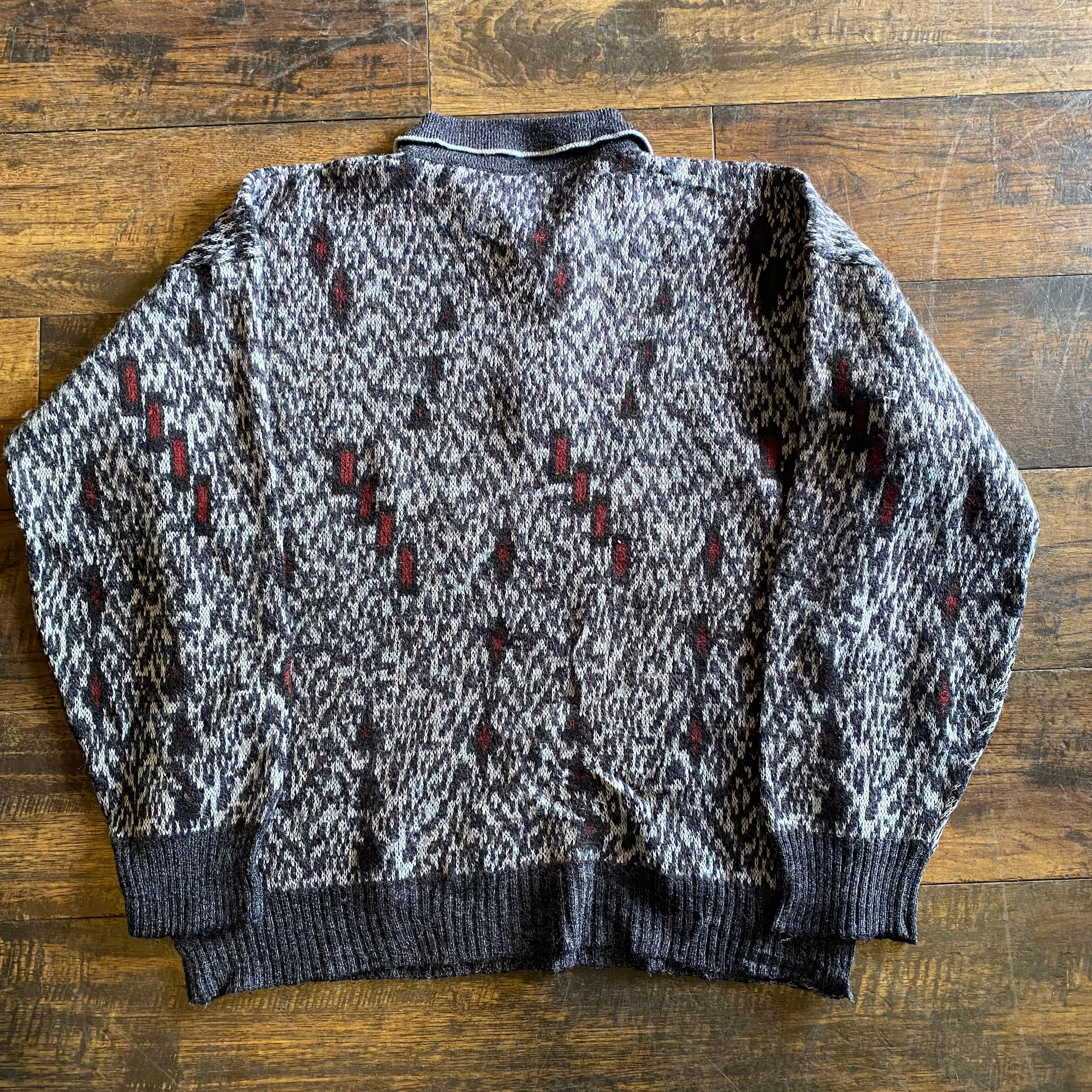 【ITALY製】90s MAZZI 総柄 ニットポロセーター Size L相当