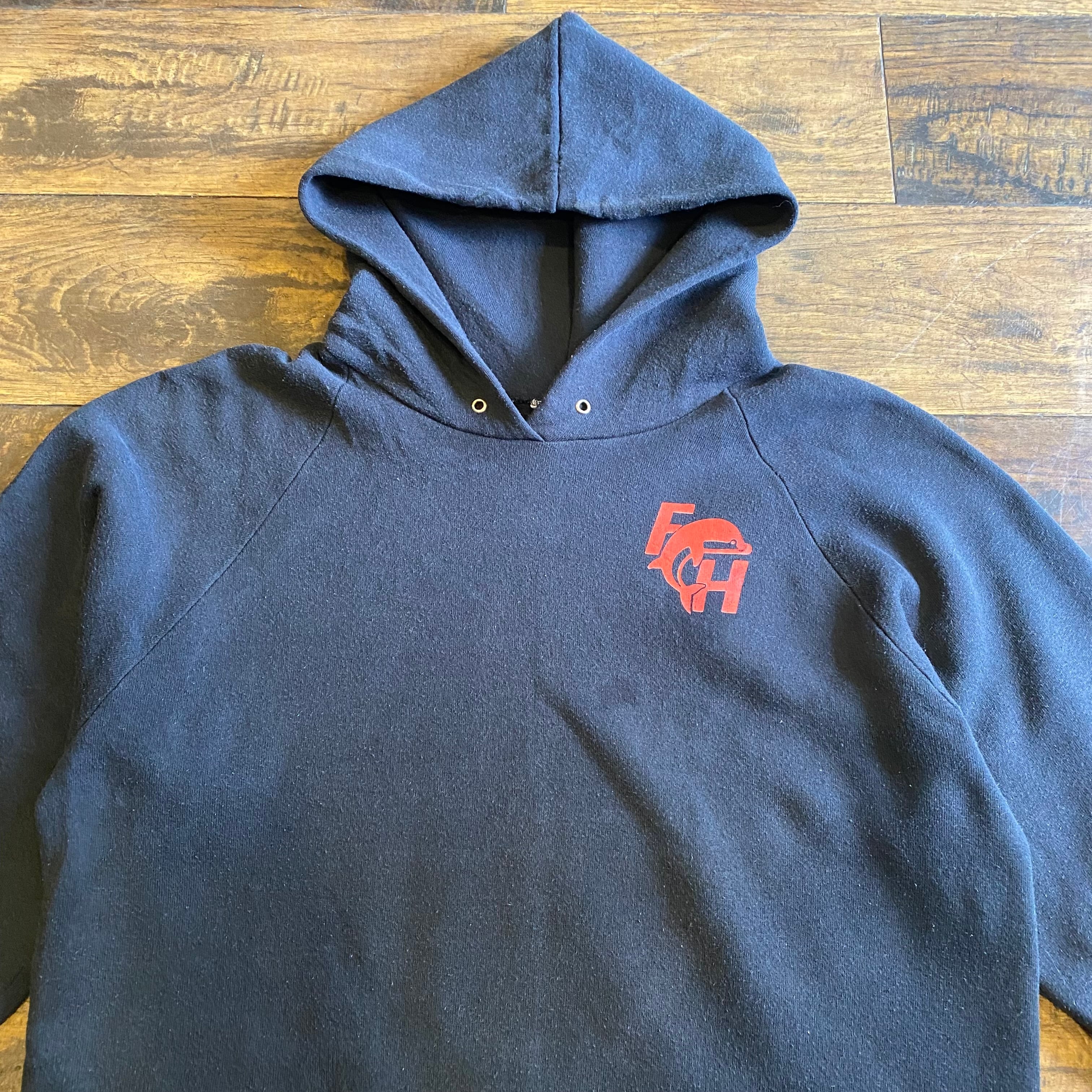 90年代らしいアメリカンスポーツチーム系デザインのスウェットパーカー。