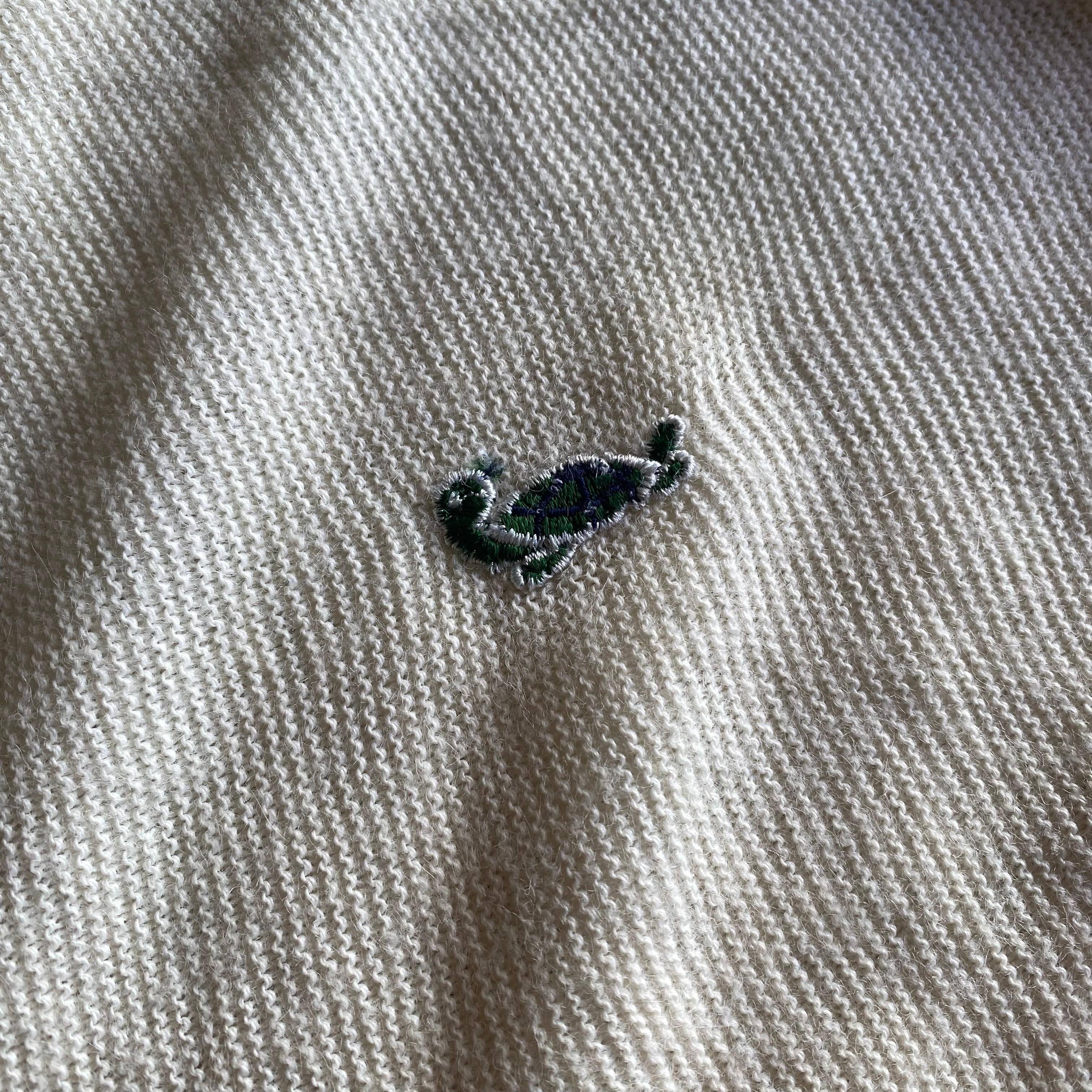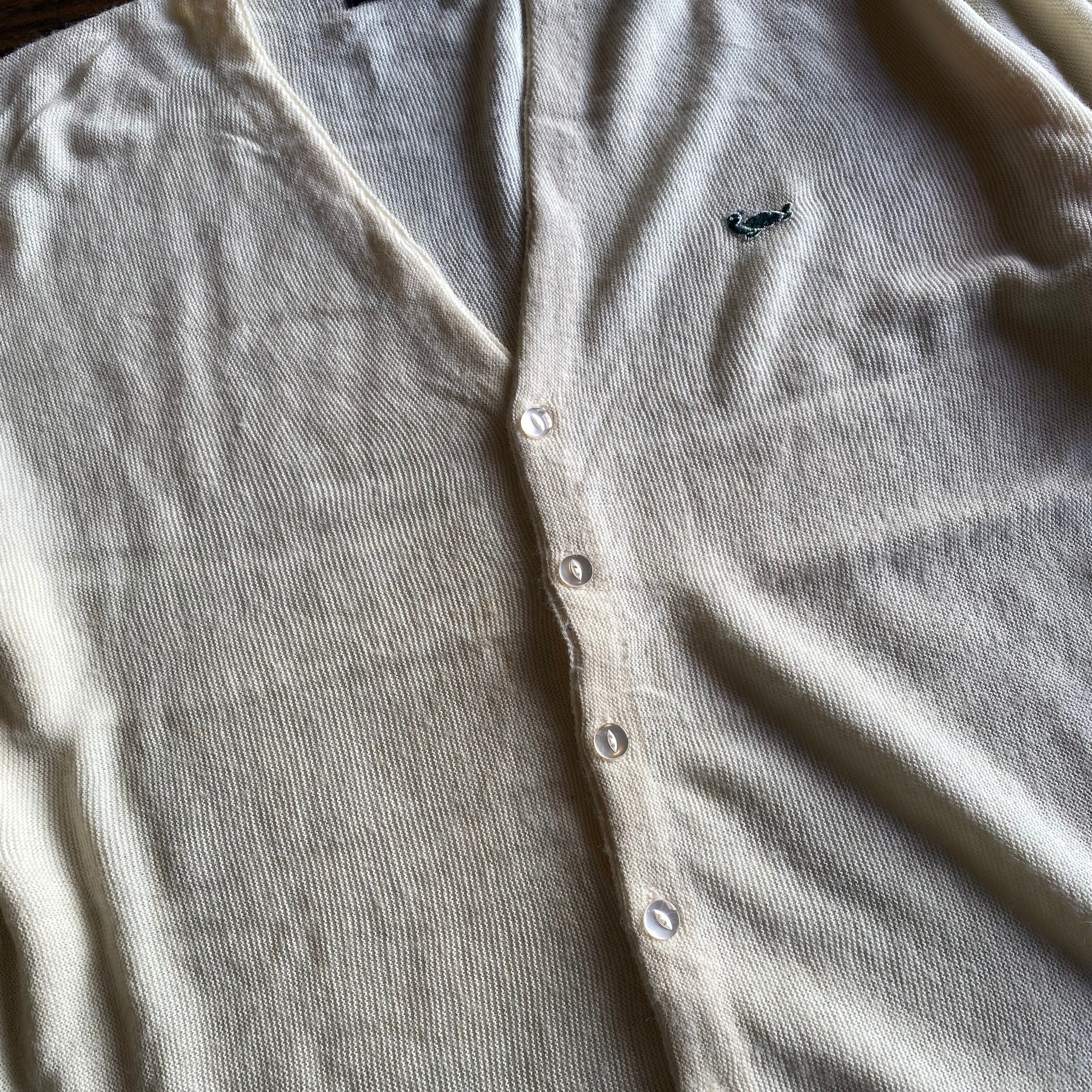 【ITALY製】80s〜90s CHALLENGER ワンポイント刺繍 Vネックカーディガン Size XL