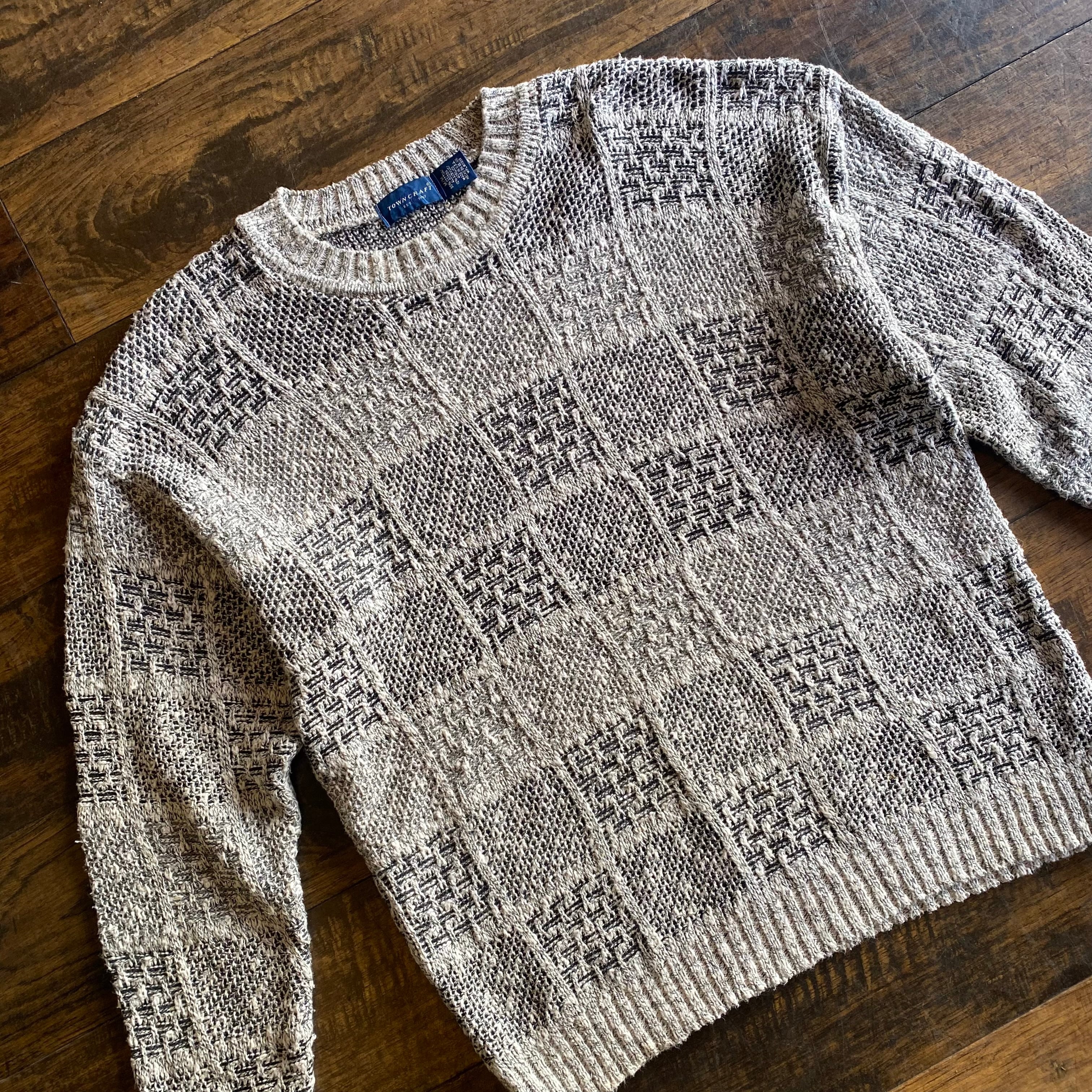 【USA製】90s TOWNCRAFT チェッカー編み コットンニット セーター Size M