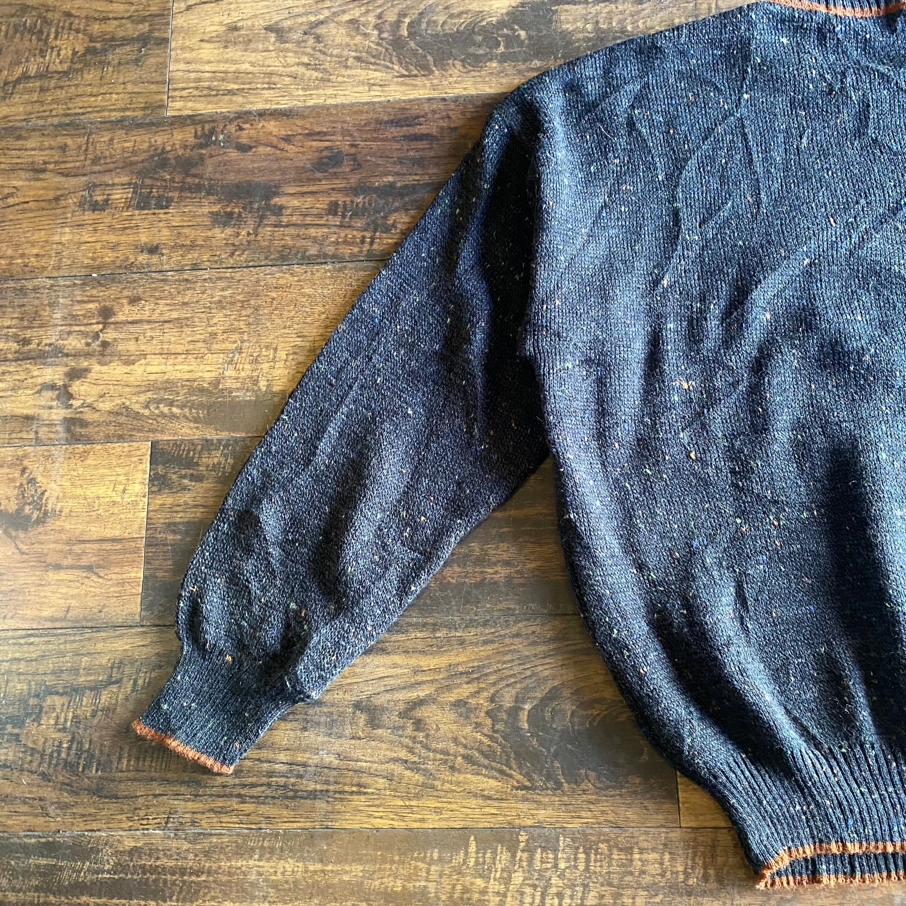 【ITALY製】90s Gris 刺繍デザイン ネップニット セーター Size L