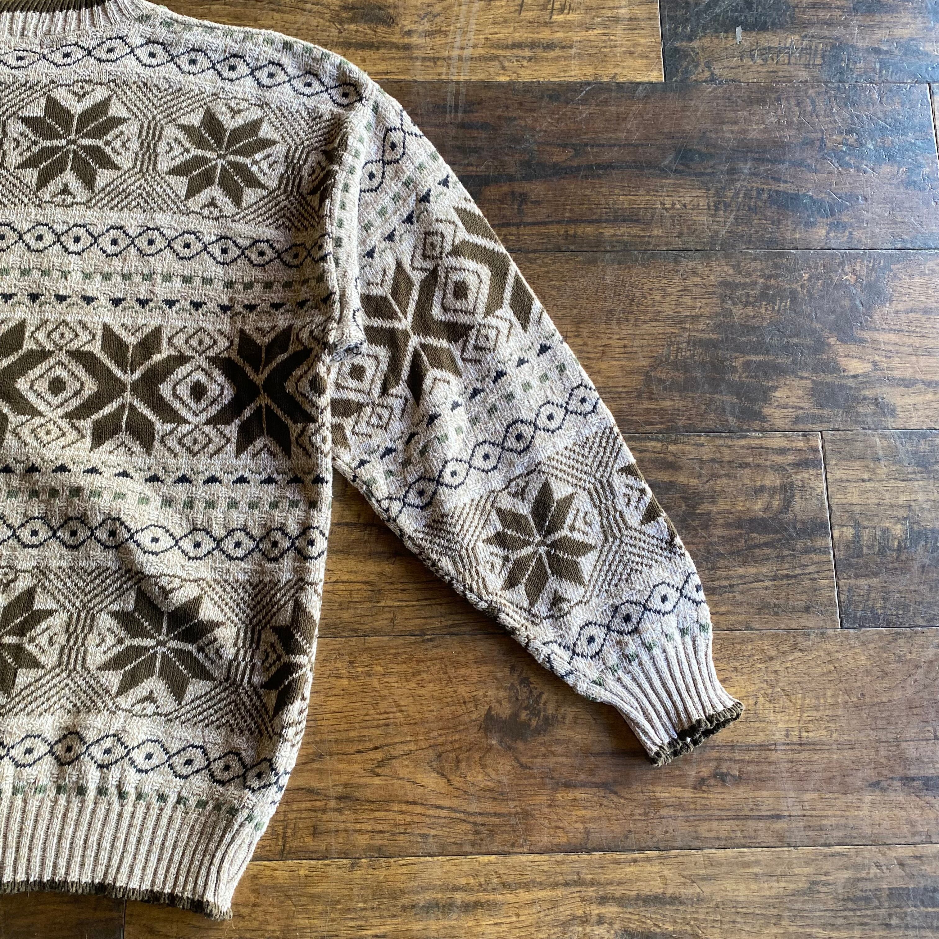 【USA製】90s Bill Blass 総柄 コットンニット セーター Size L