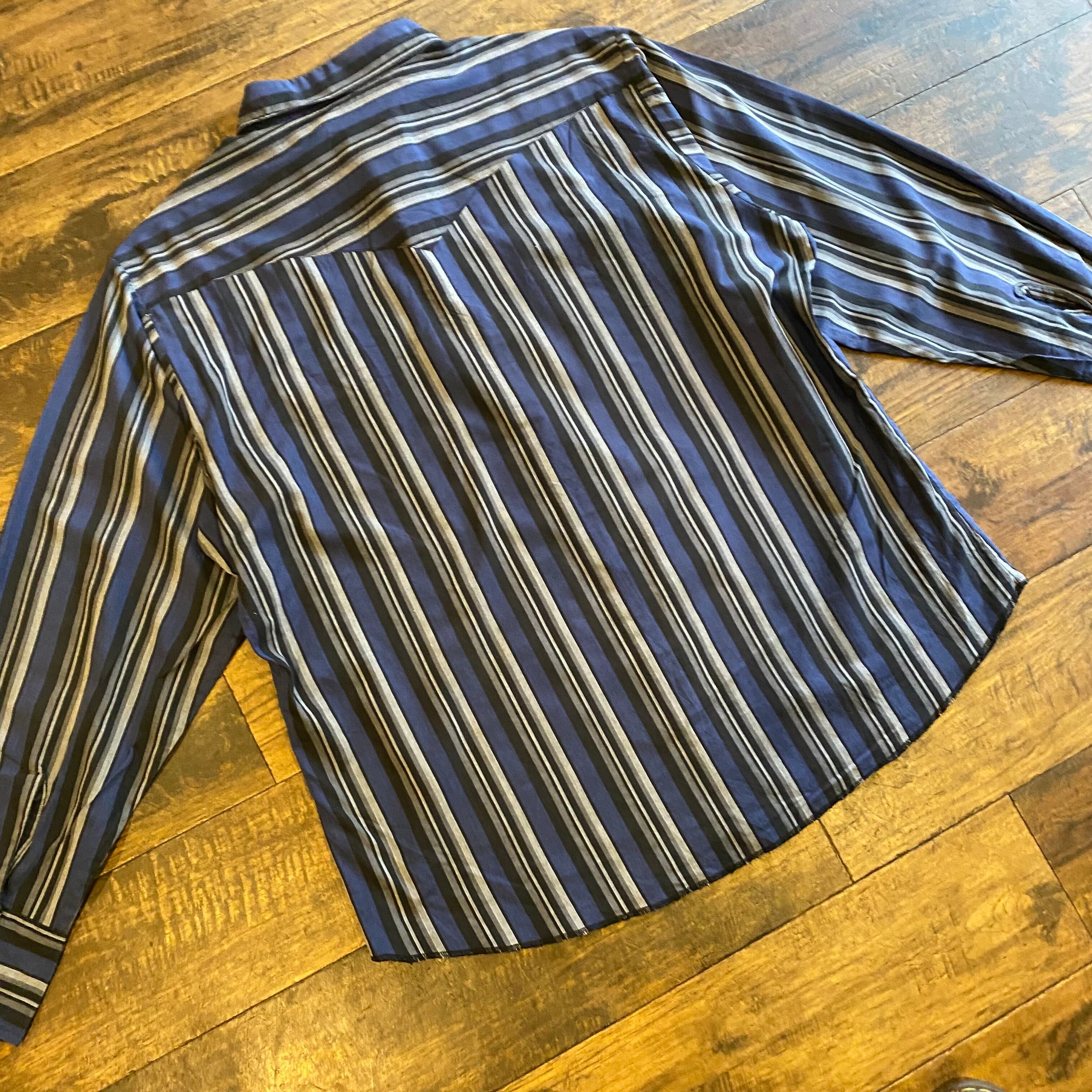 【90s】FRONTIER ストライプ ウエスタンシャツ ネイビー系 Size L相当