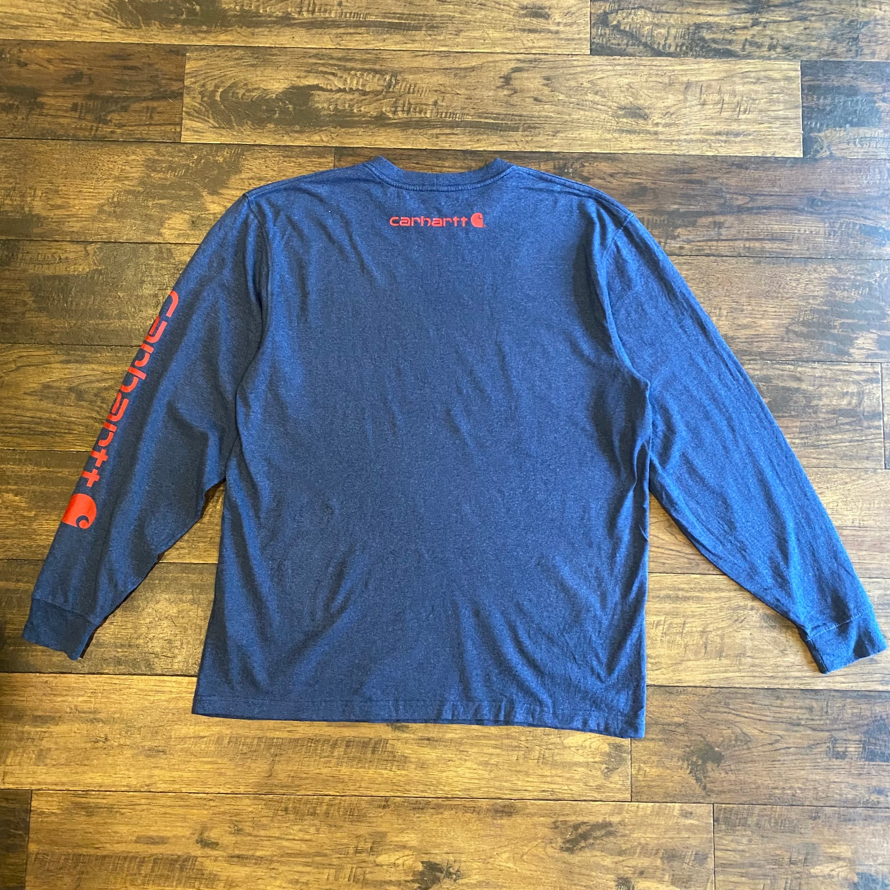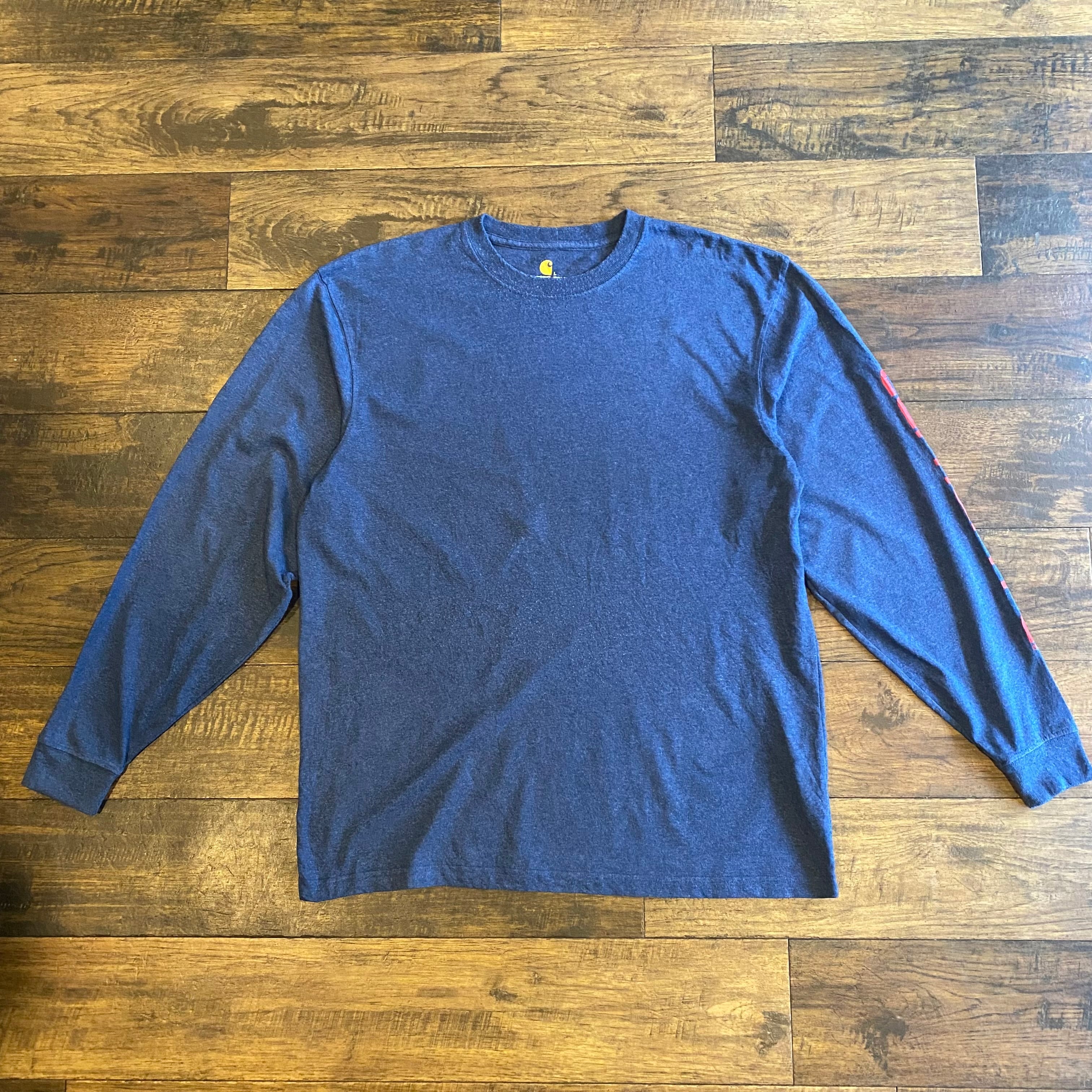 Carhartt ORIGINAL FIT ロゴプリント ロングスリーブTシャツ ネイビー Size L