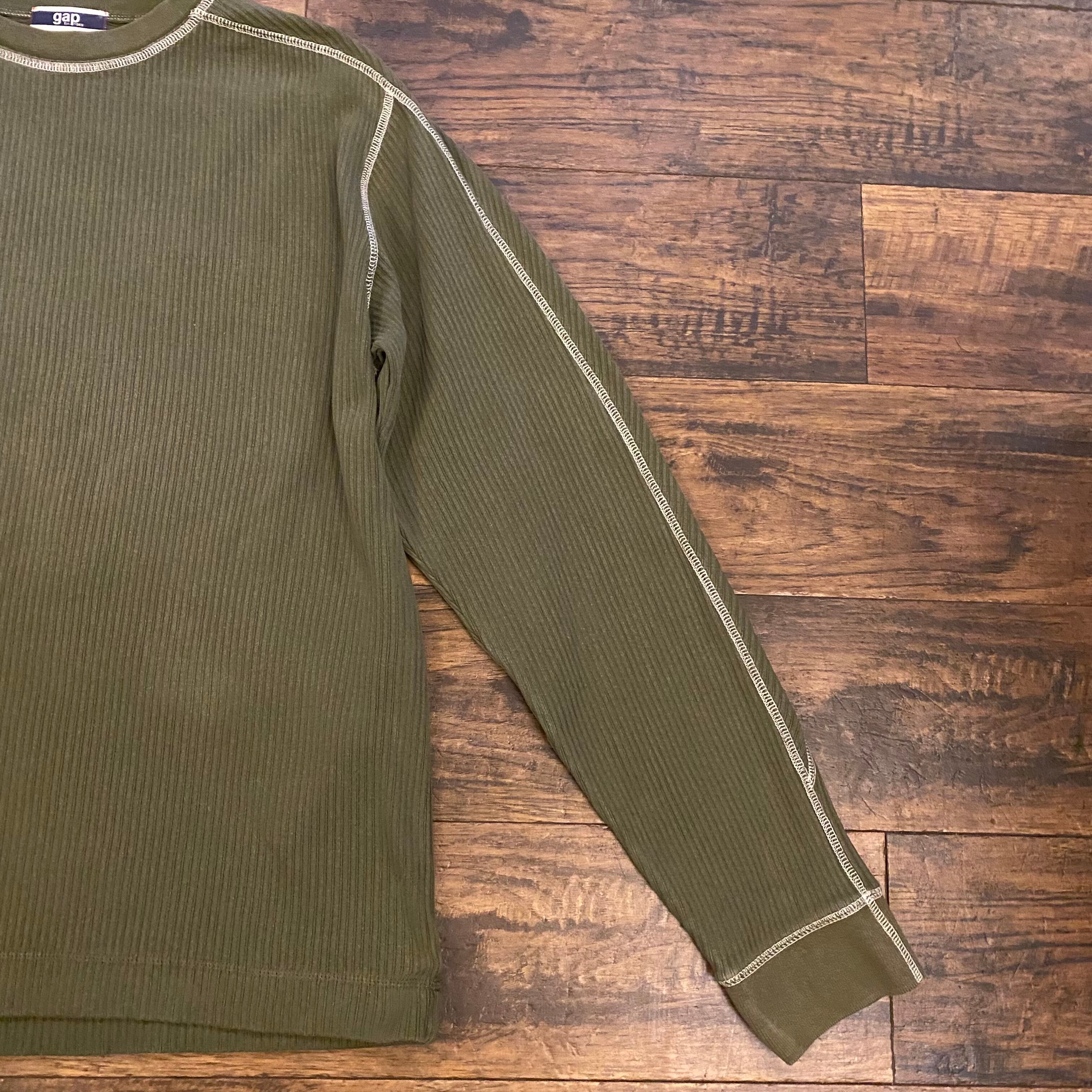 【00s】GAP リブコットン サーマルカットソー オリーブ Size XL