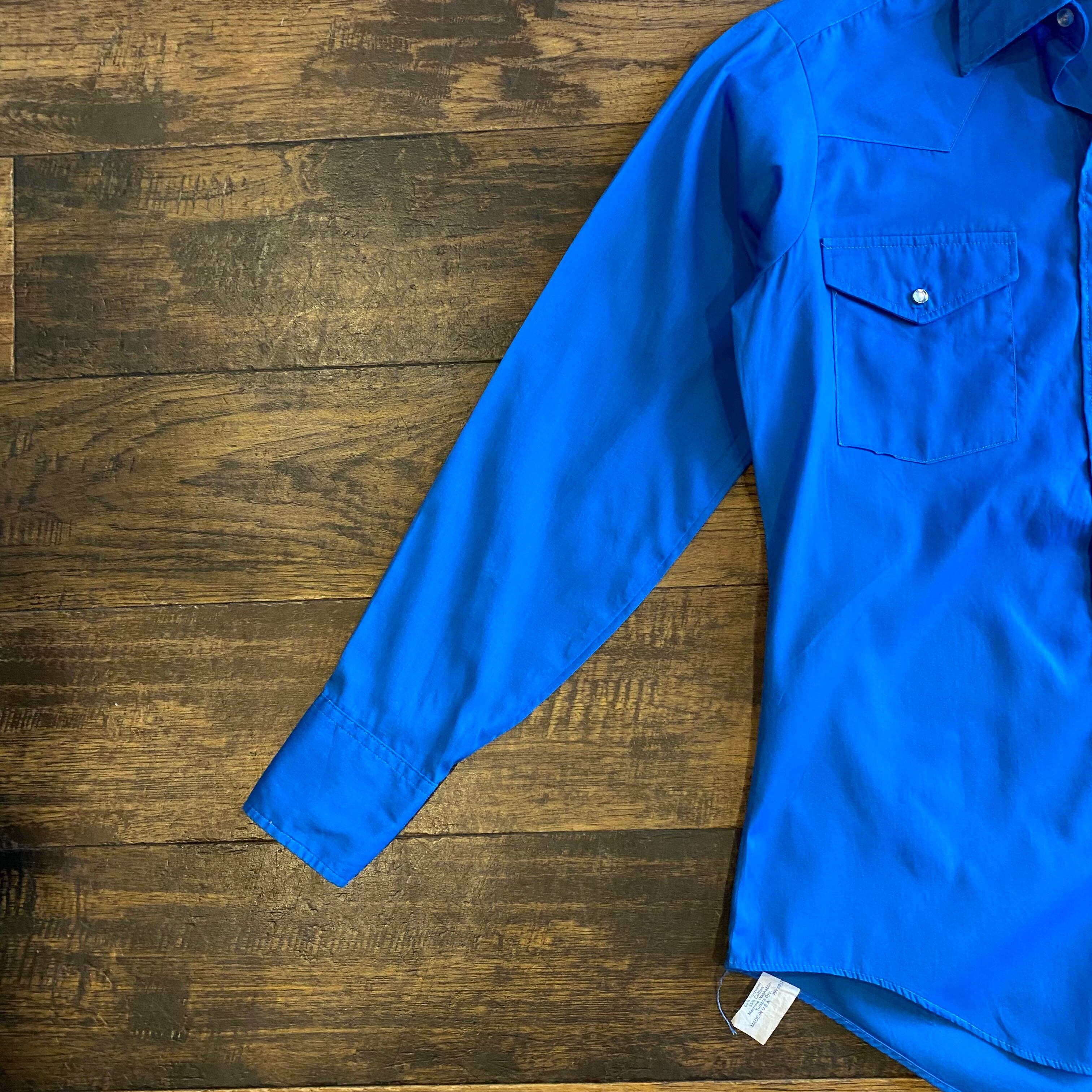 【USA製】70s〜80s FANTASIA ウエスタンシャツ ロイヤルブルー Size S