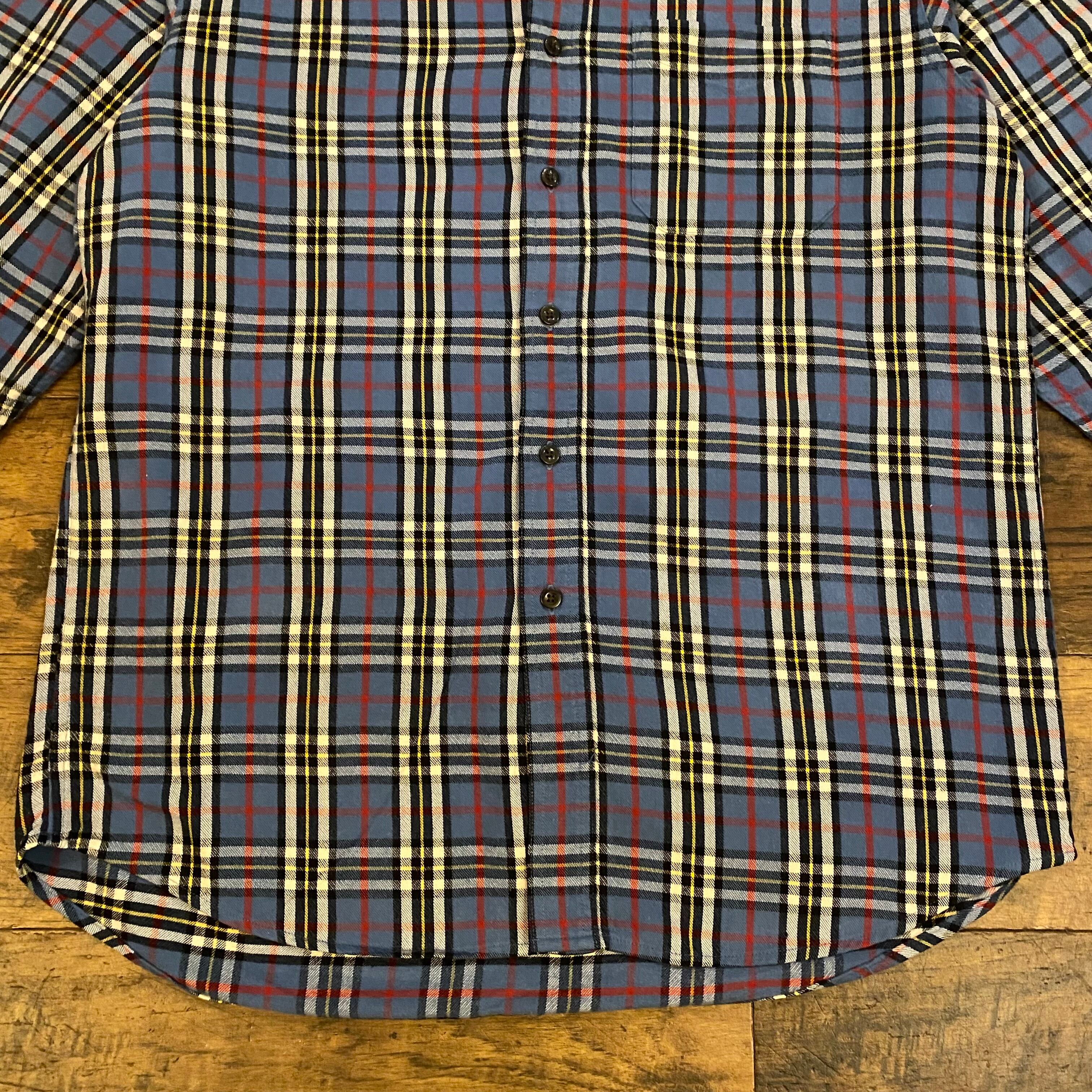 アウトドアブランドらしい落ち着いた配色のチェック柄が特徴で、ブルーをベースにブラック・イエロー・レッドのラインが入るクラシックなデザイン。アメリカのアウトドアカルチャーでは、こうしたチェックシャツはキャンプ・ハンティング・ワークシーンなど実用着として長く愛されてきました。