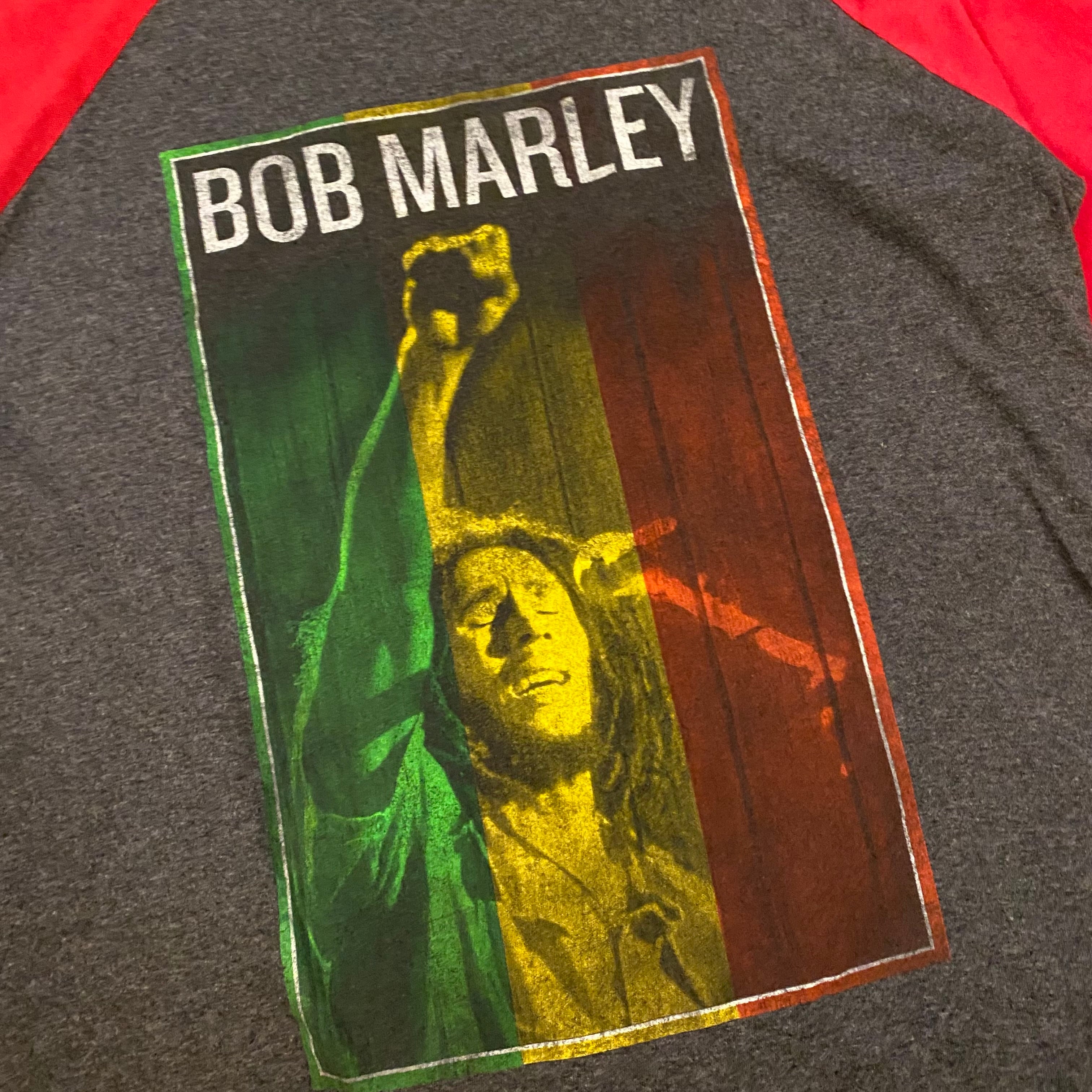 Bob MarleyのグラフィックラグランTシャツ。