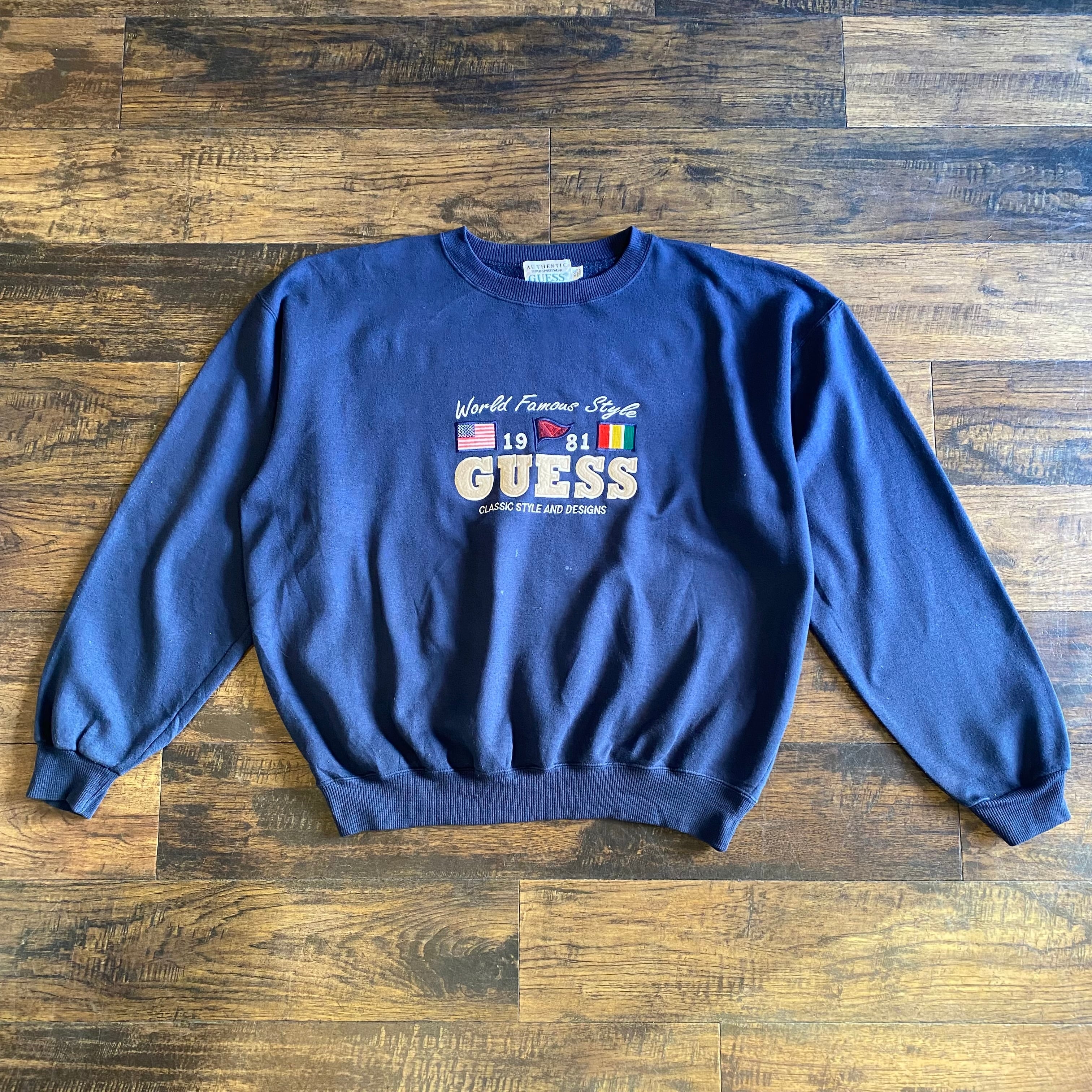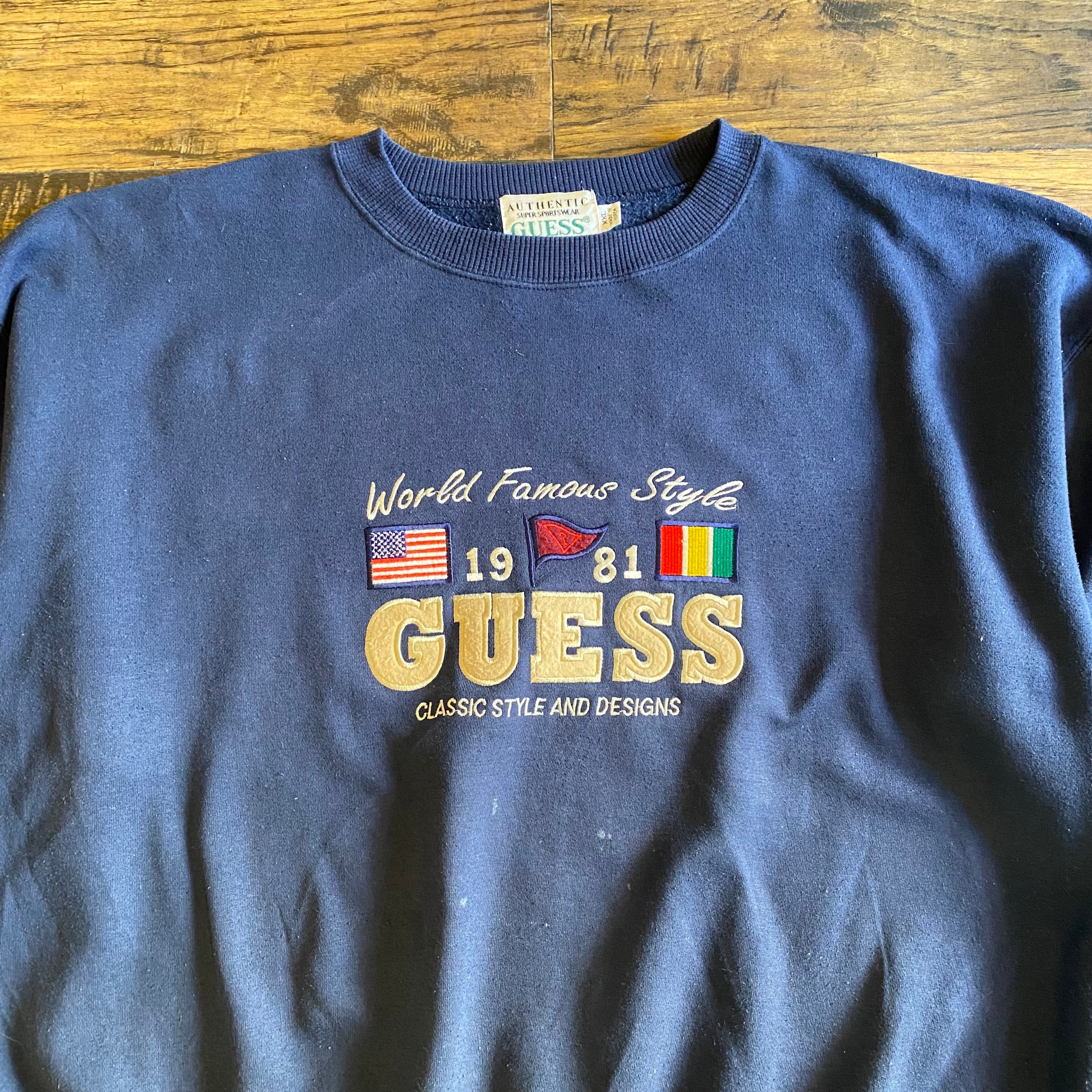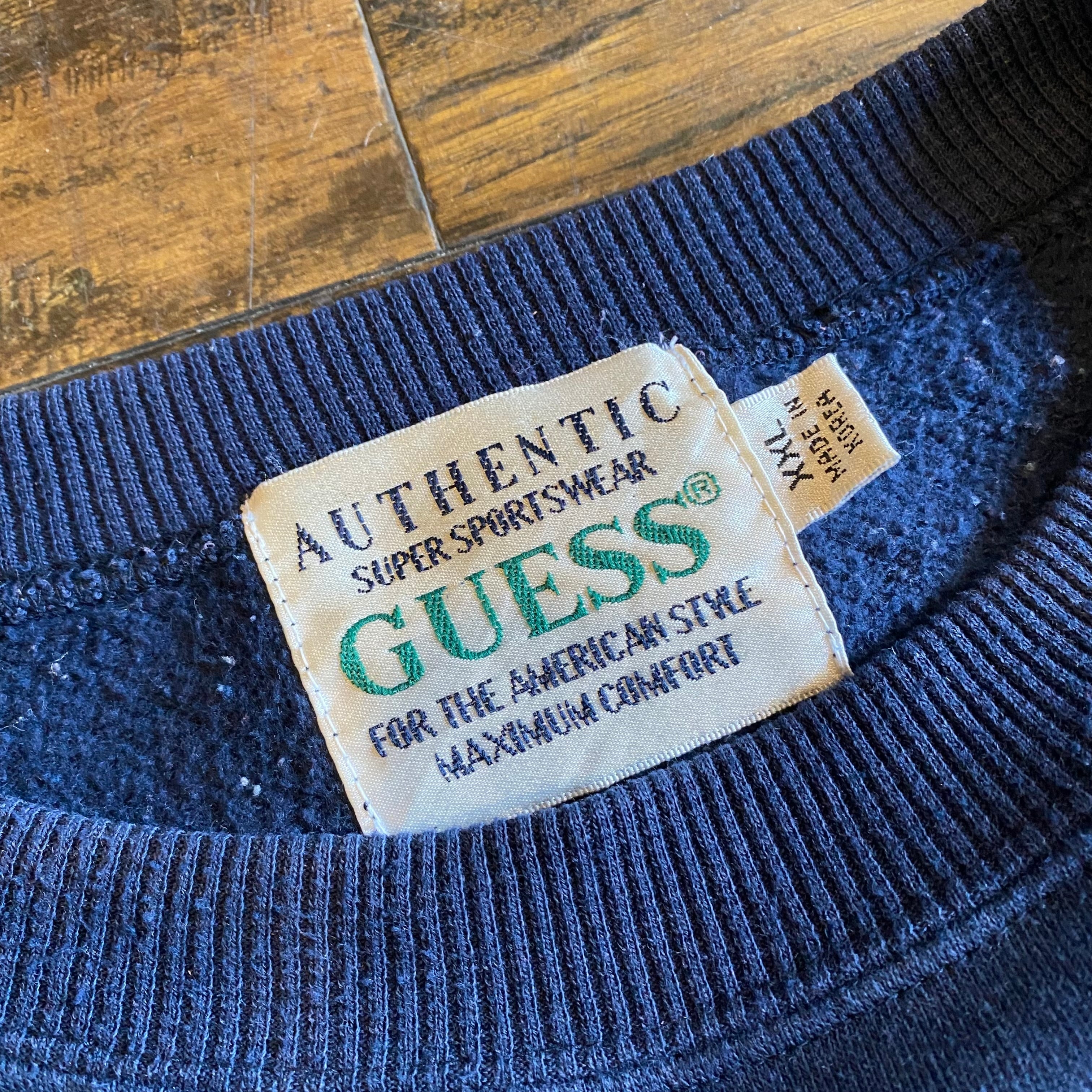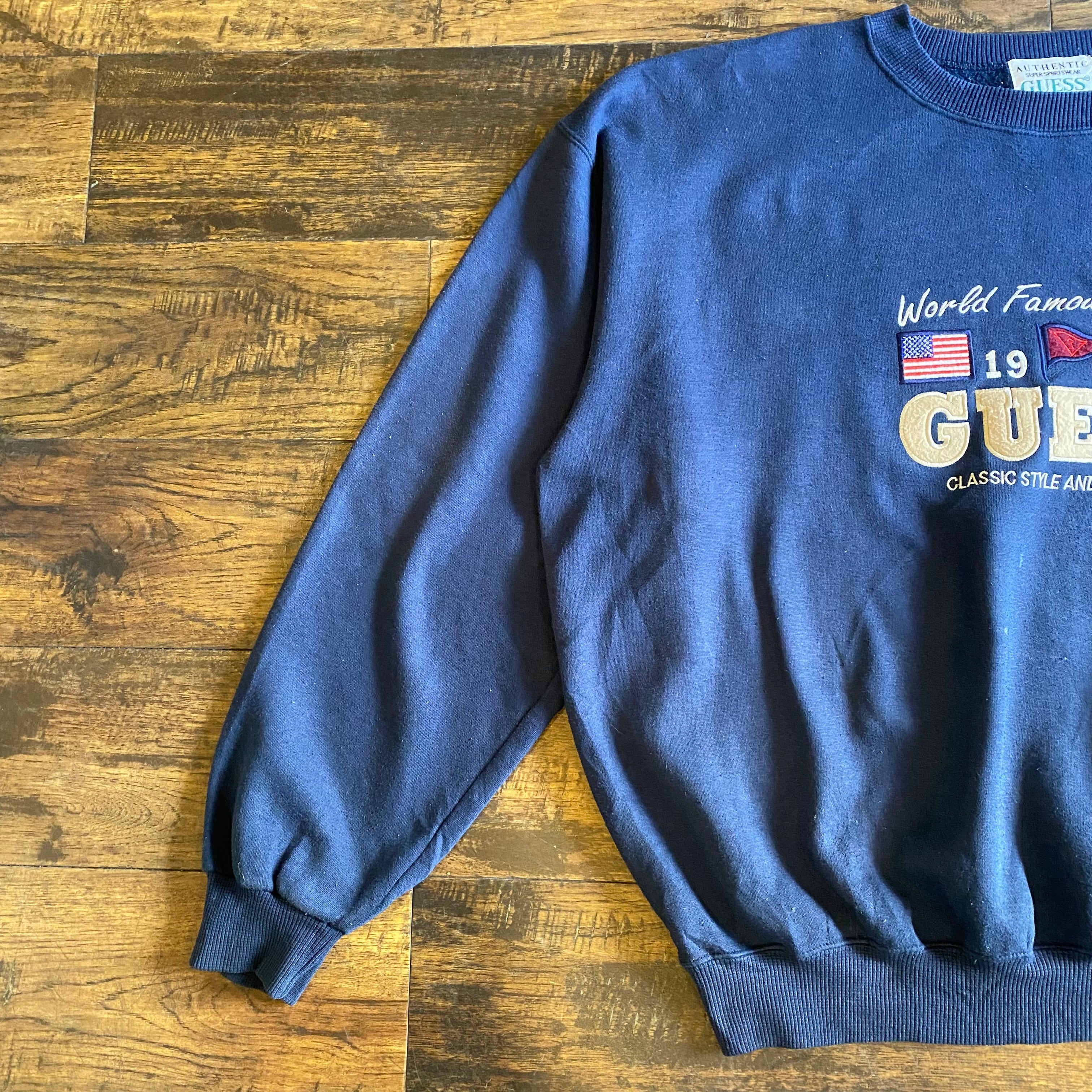 【90s】GUESS ロゴ刺繍 スウェット ネイビー Size XXL