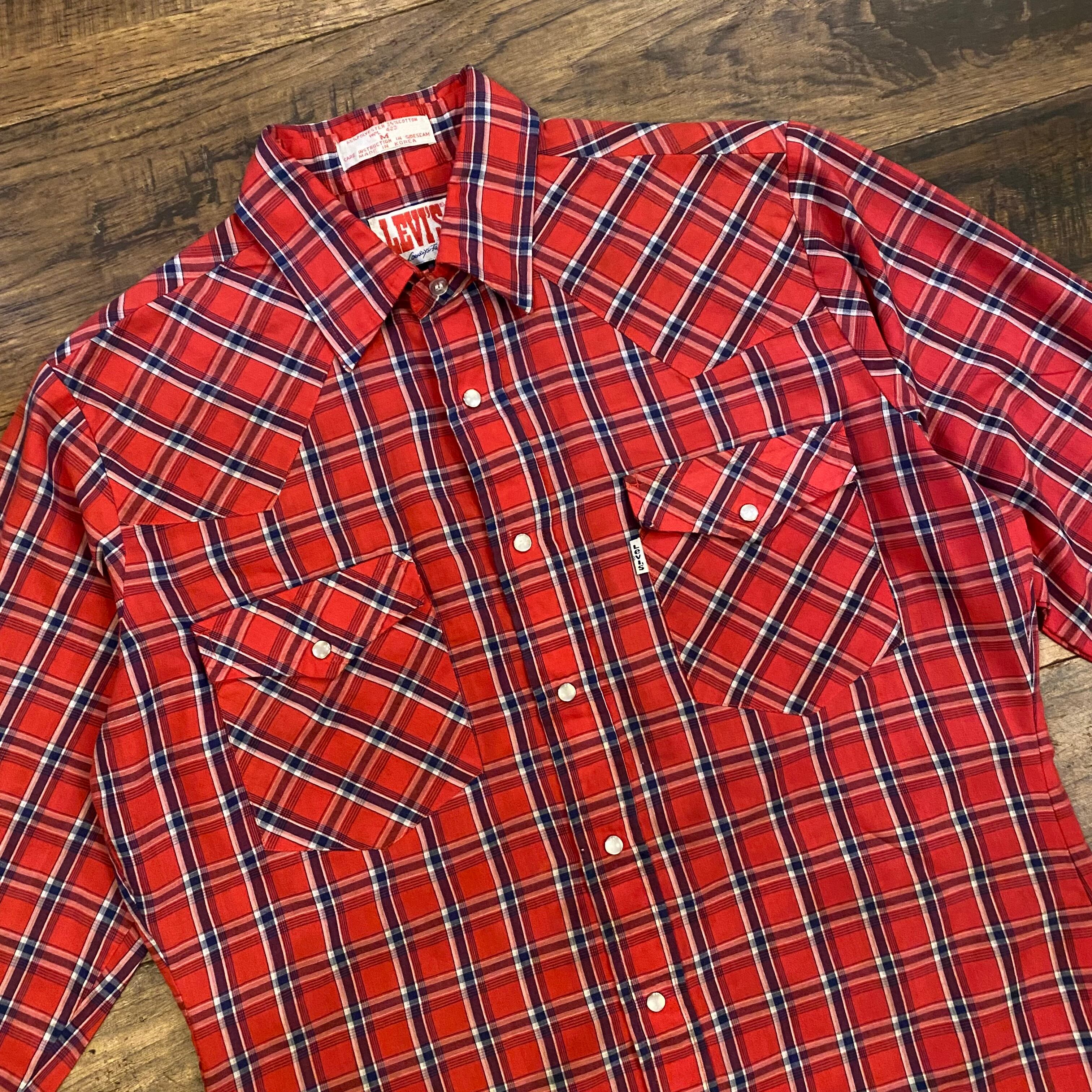 【80s〜90s】Levi’s チェック ウエスタンシャツ レッド Size M