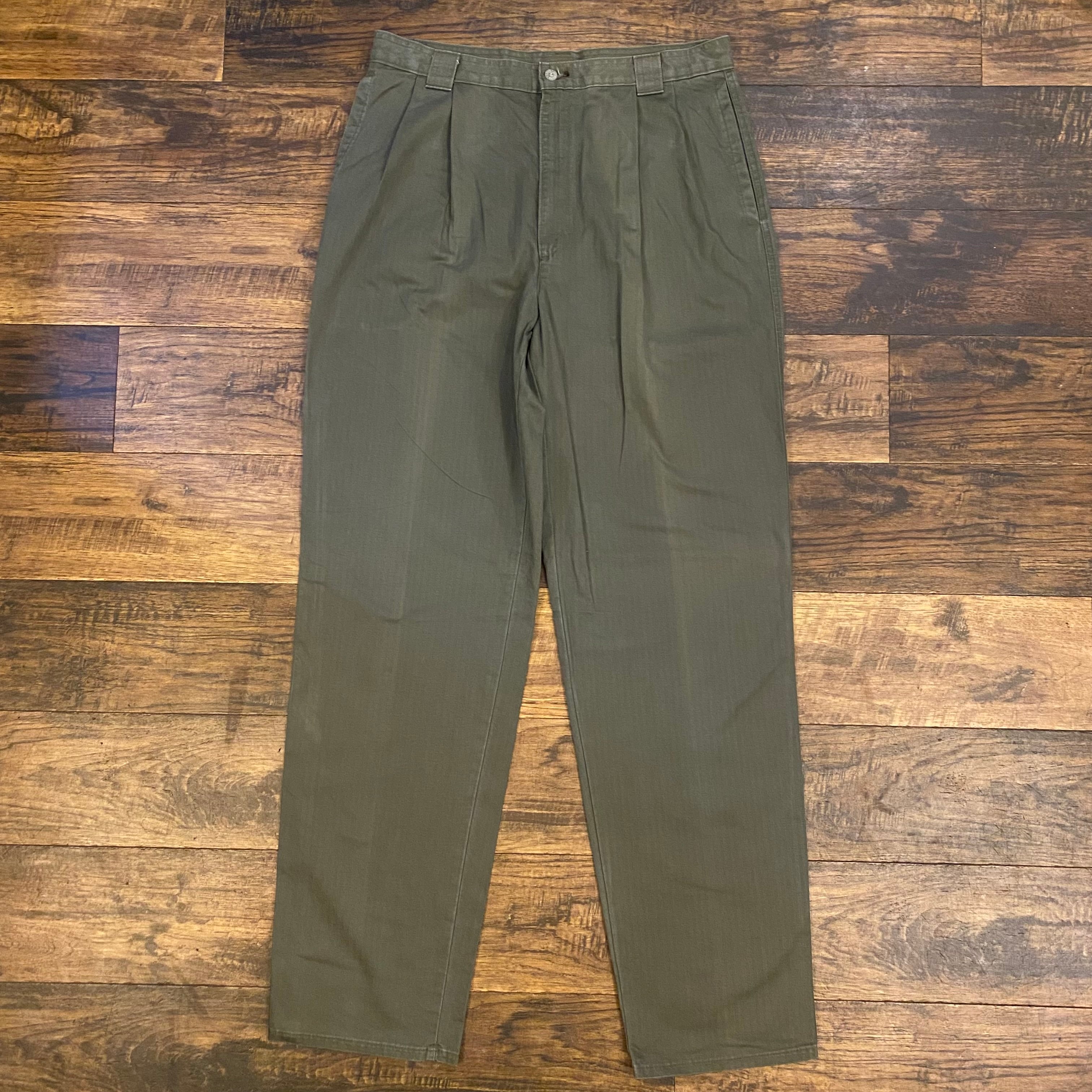 【USA製】90s DOCKERS ツータック チノスラックス Olive Size W34