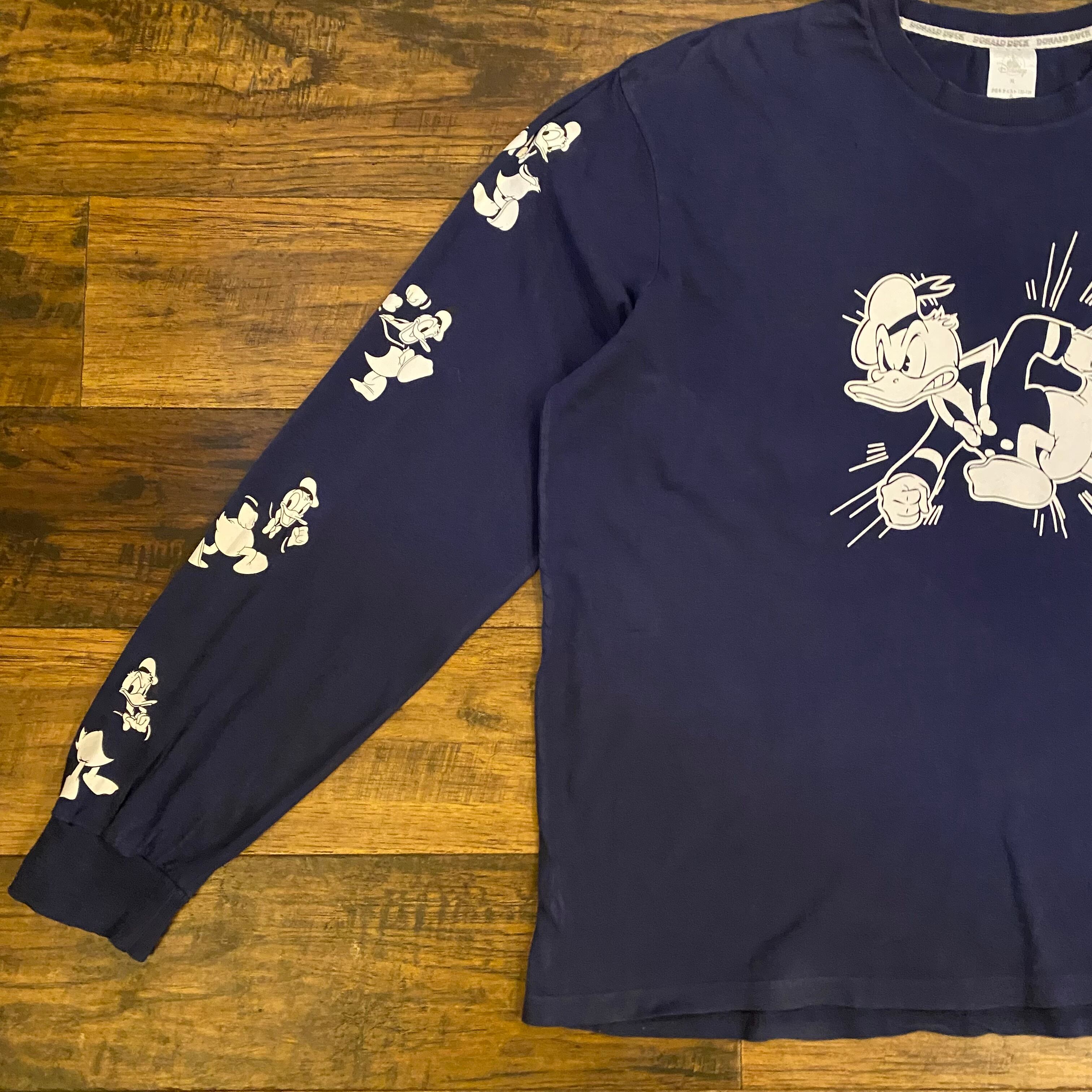 Disney DONALD DUCK 袖プリント ロングスリーブTシャツ ネイビー Size XL