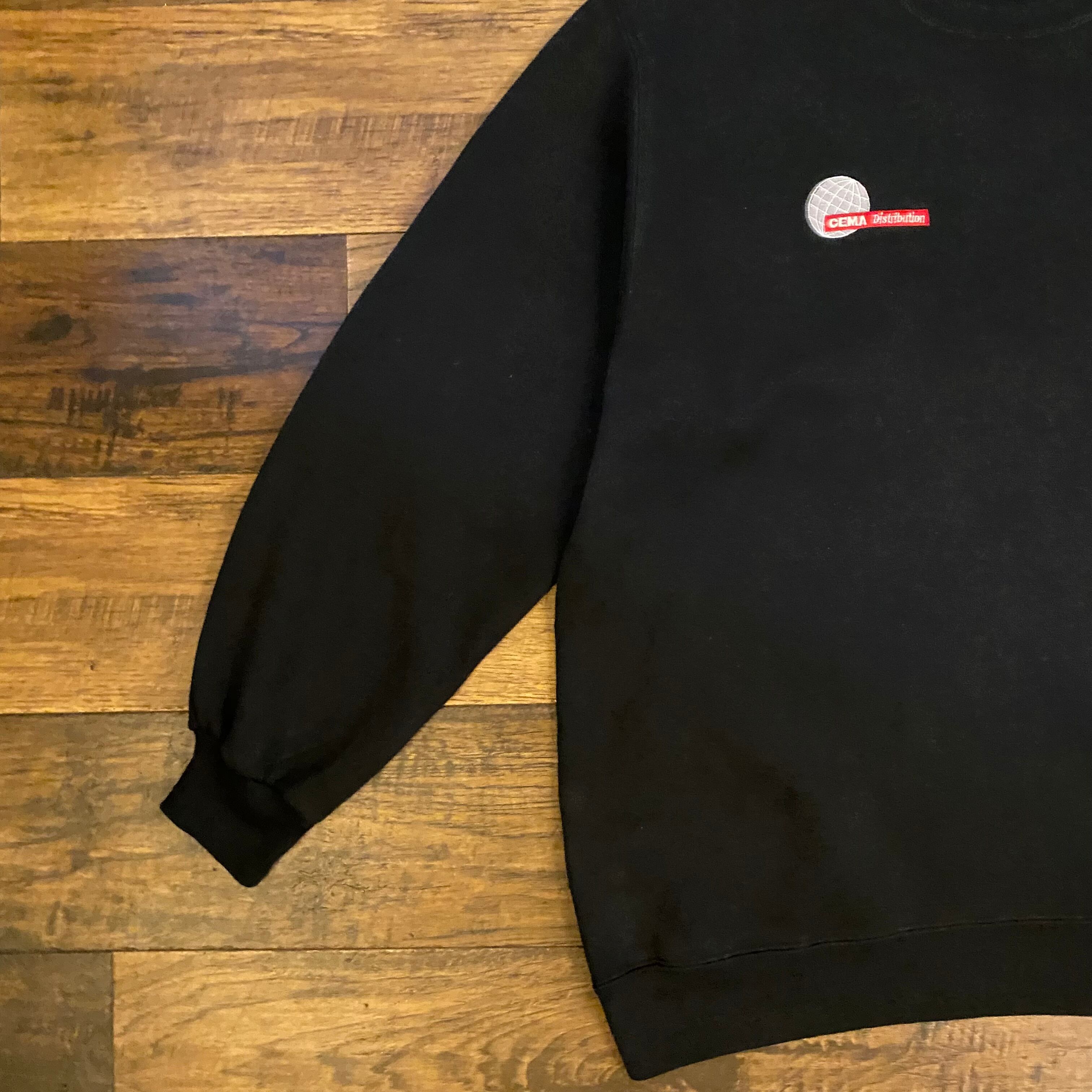 【USA製】90s JERZEES CEMA Distribution 物流企業ロゴ 刺繍 スウェット ブラック Size XL