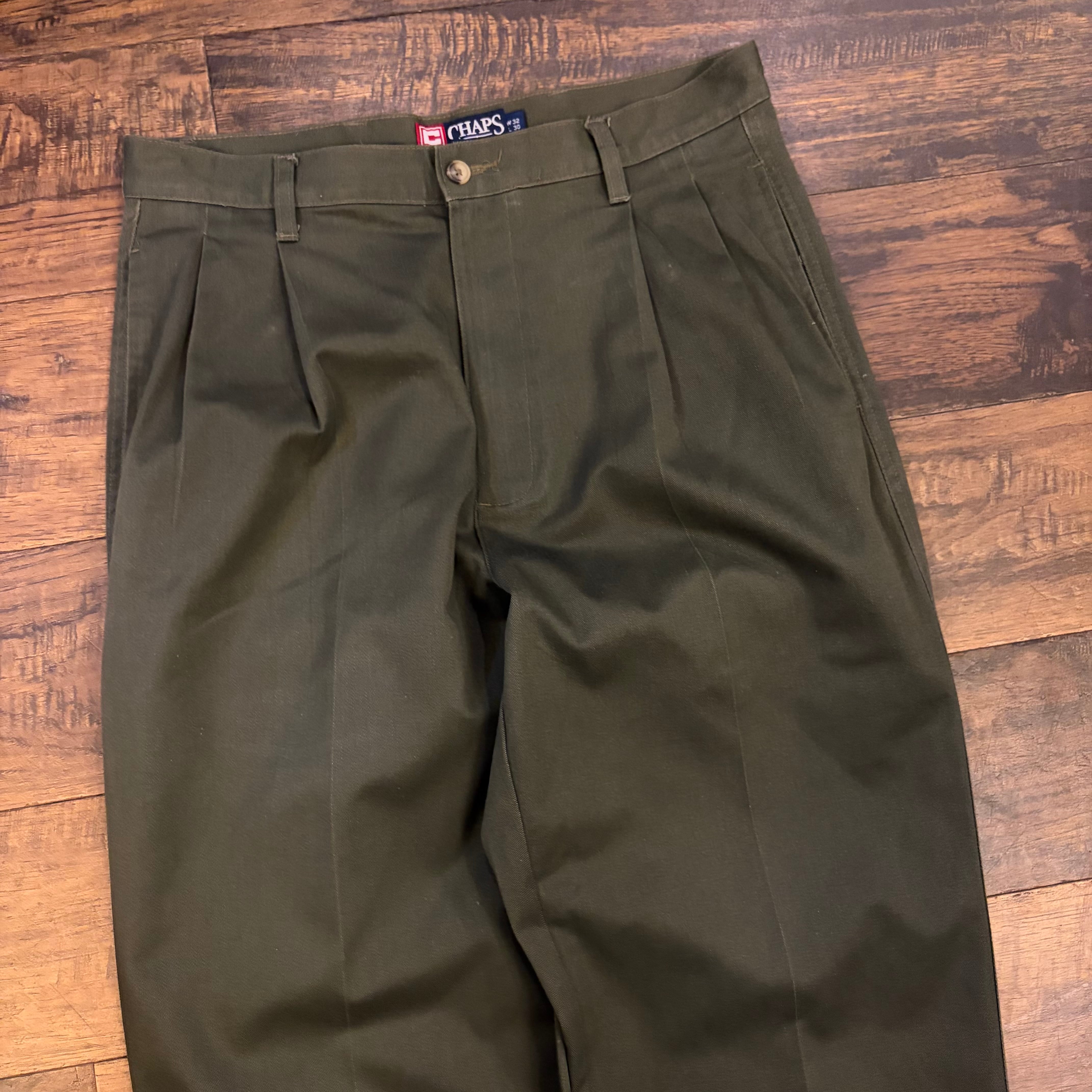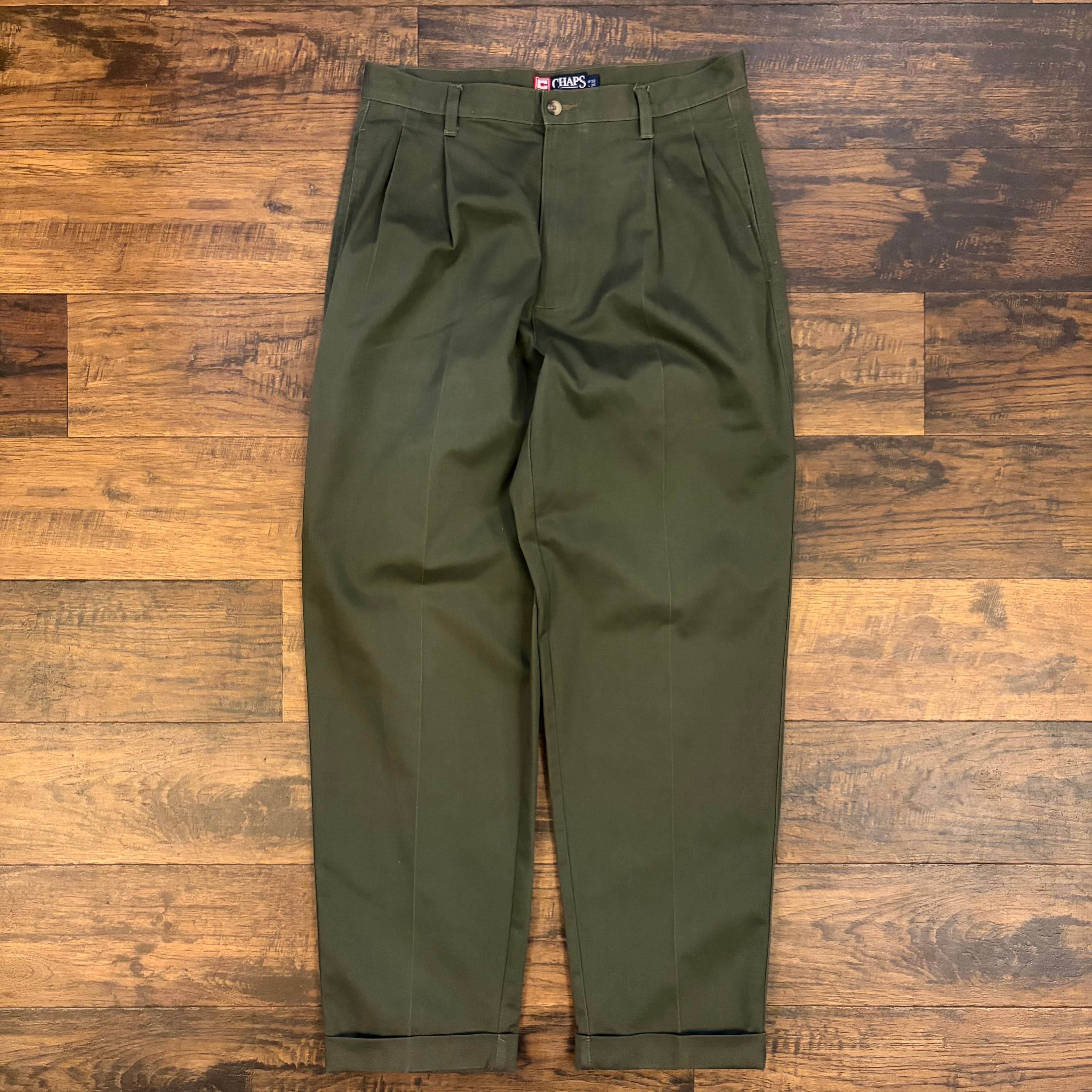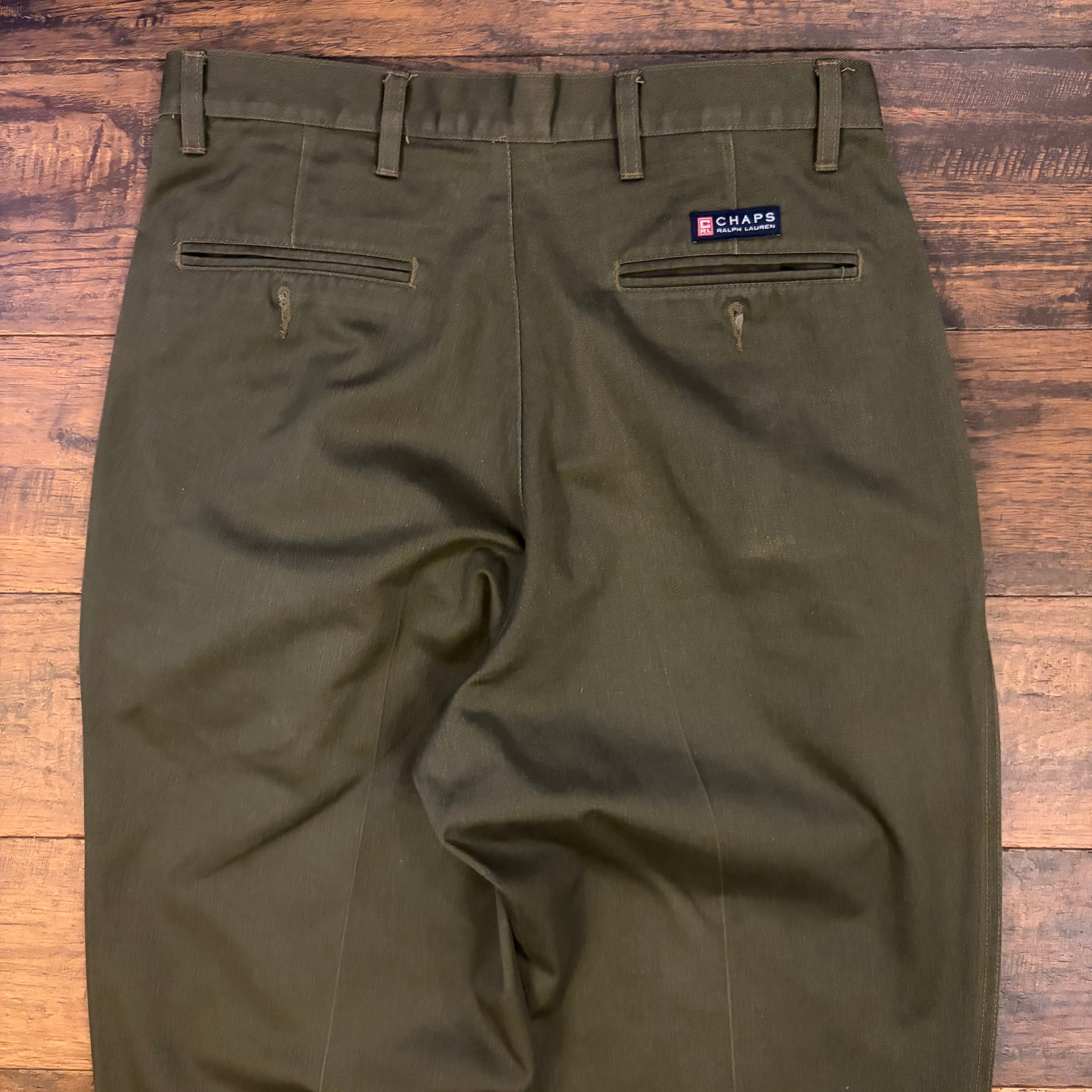 CHAPS Ralph Lauren 2タック チノスラックス オリーブ W32