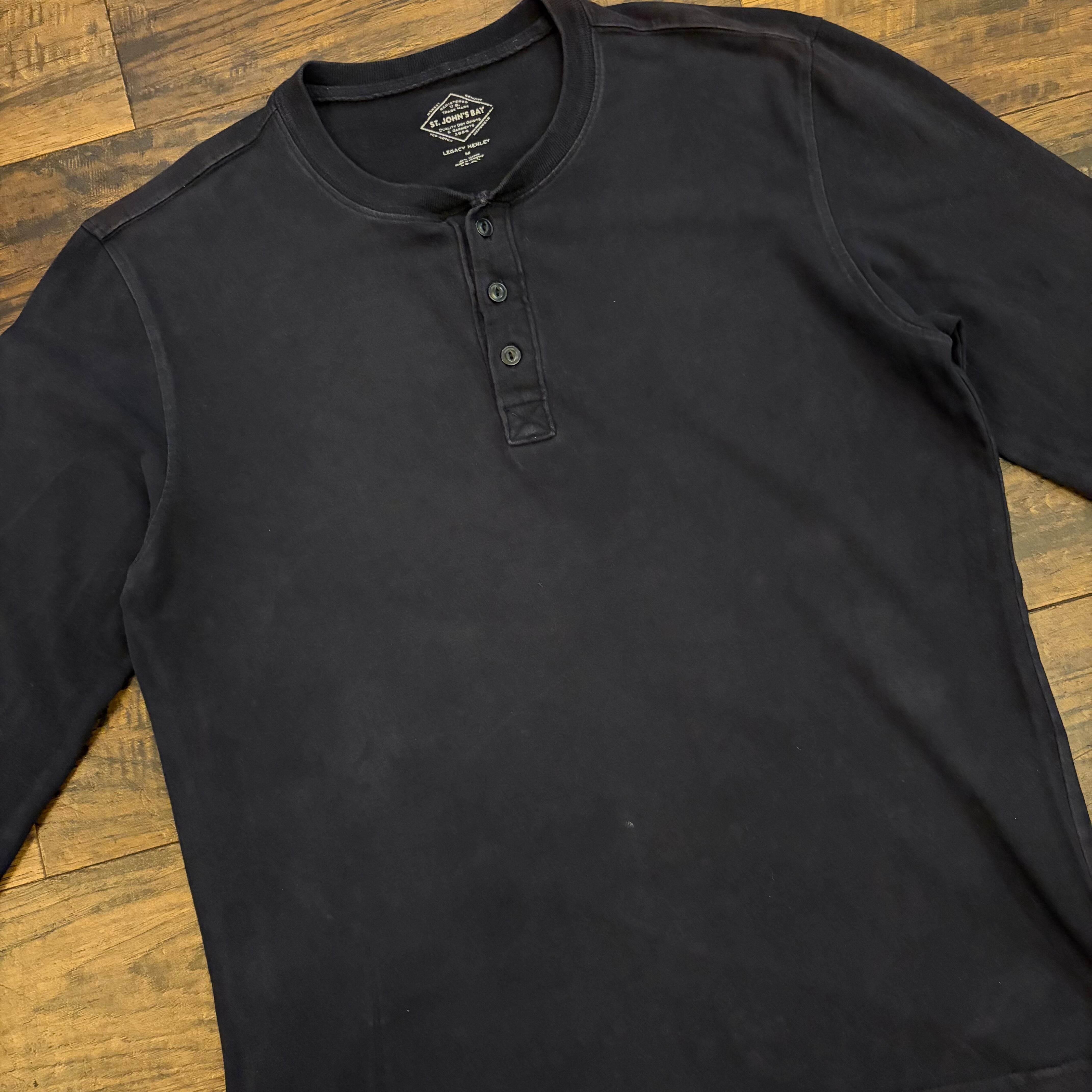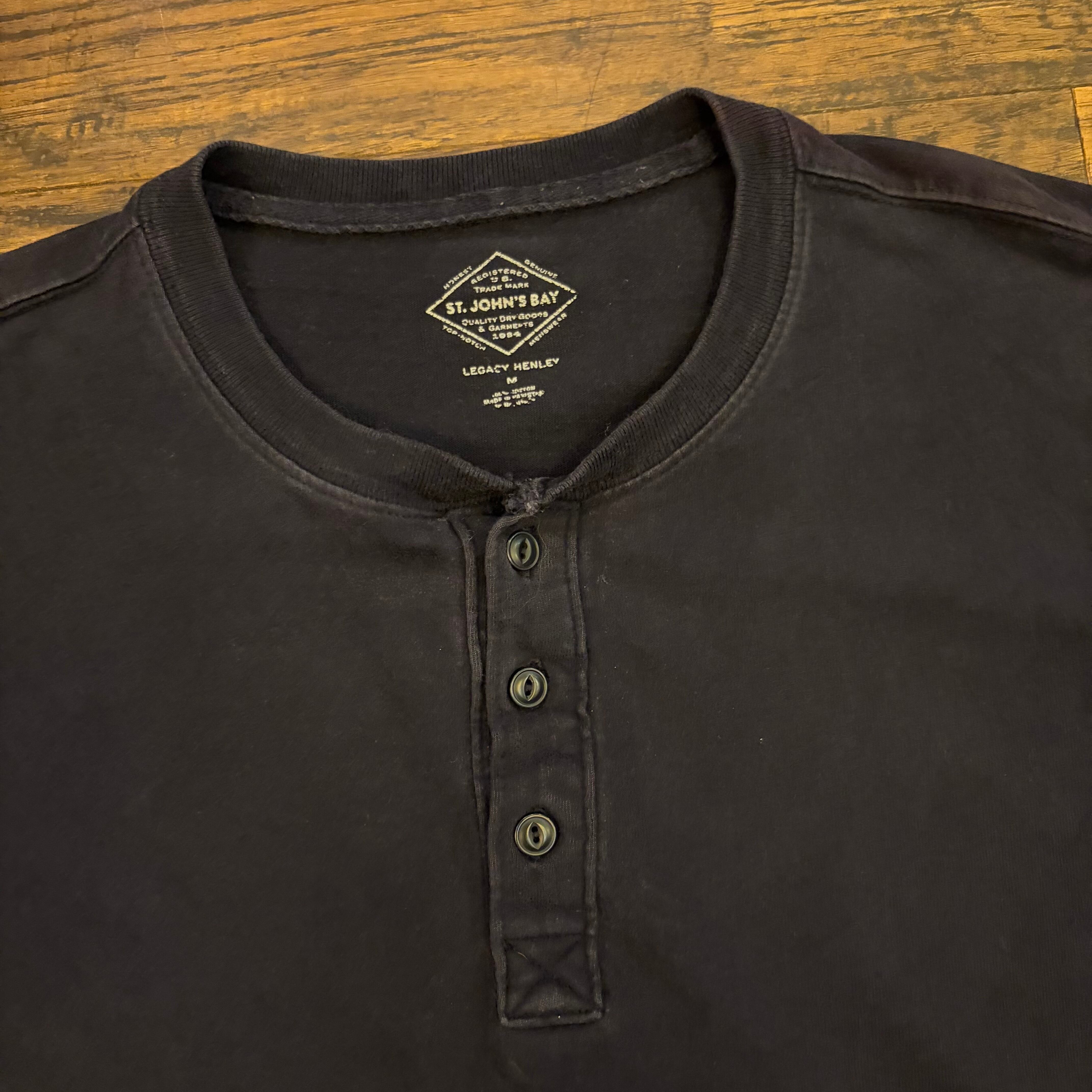 ST.JOHN'S BAY Legacy Henley L/S T-Shirt Black Size M