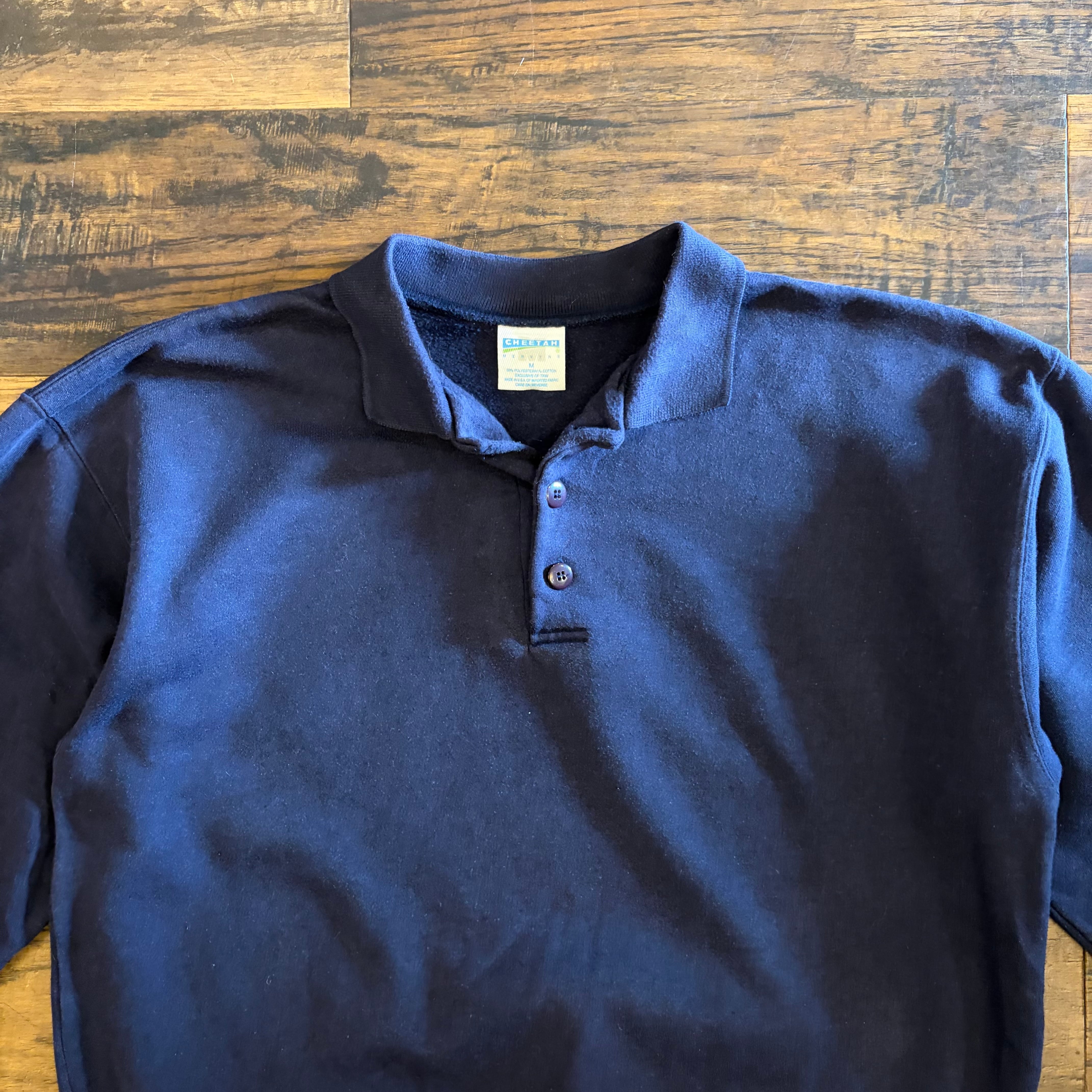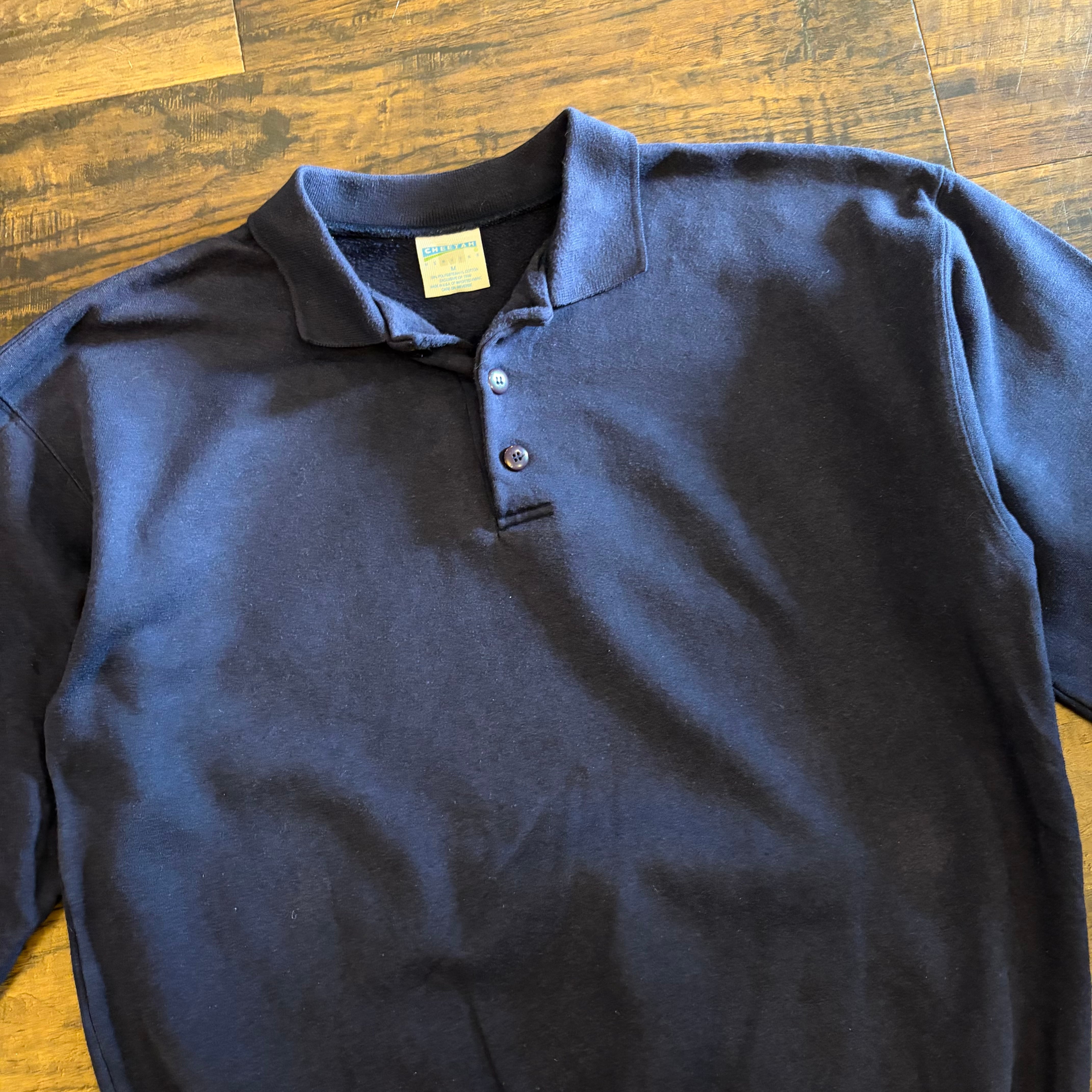 【USA製】90s-00s Cheetah スウェット ポロシャツ 長袖 ネイビー Size M