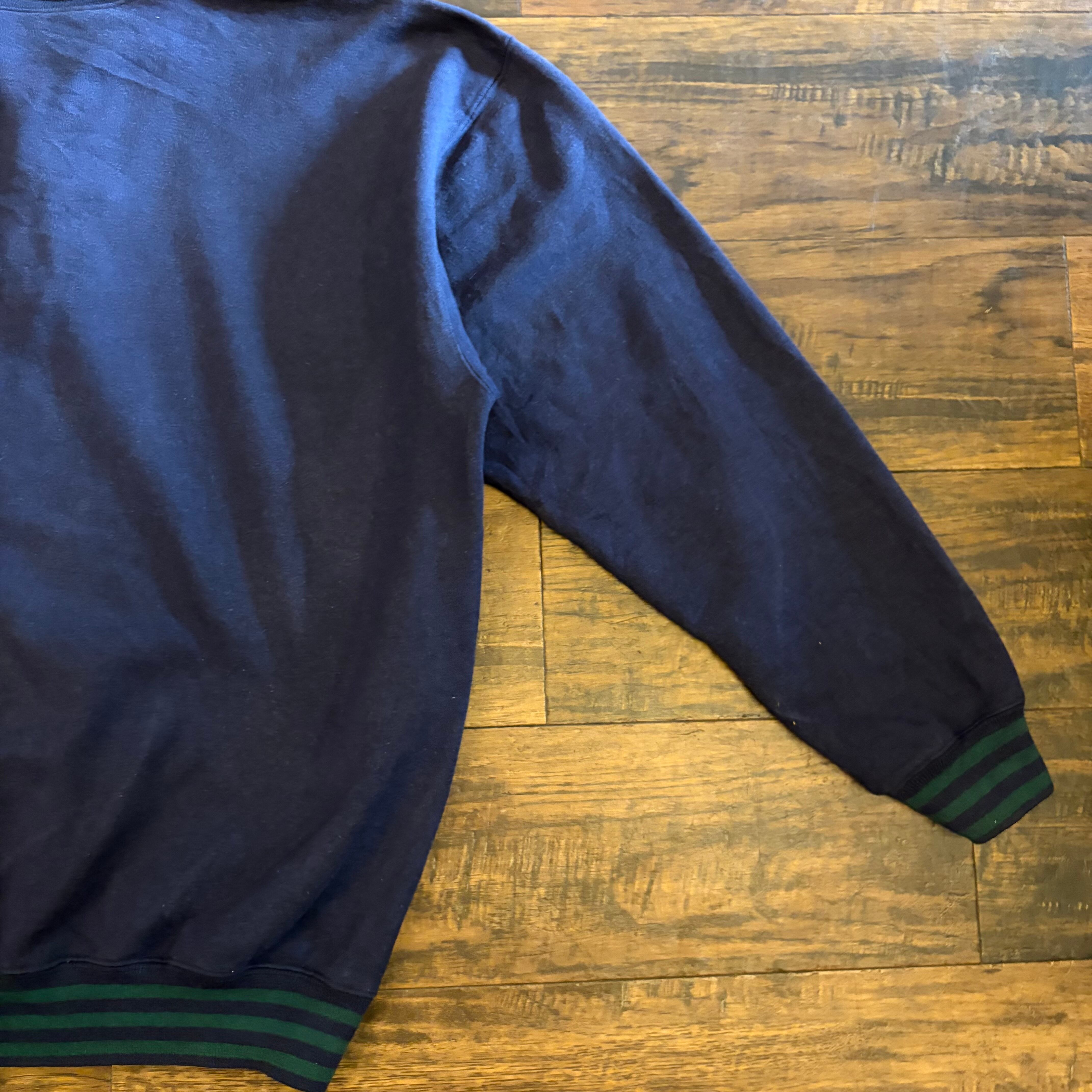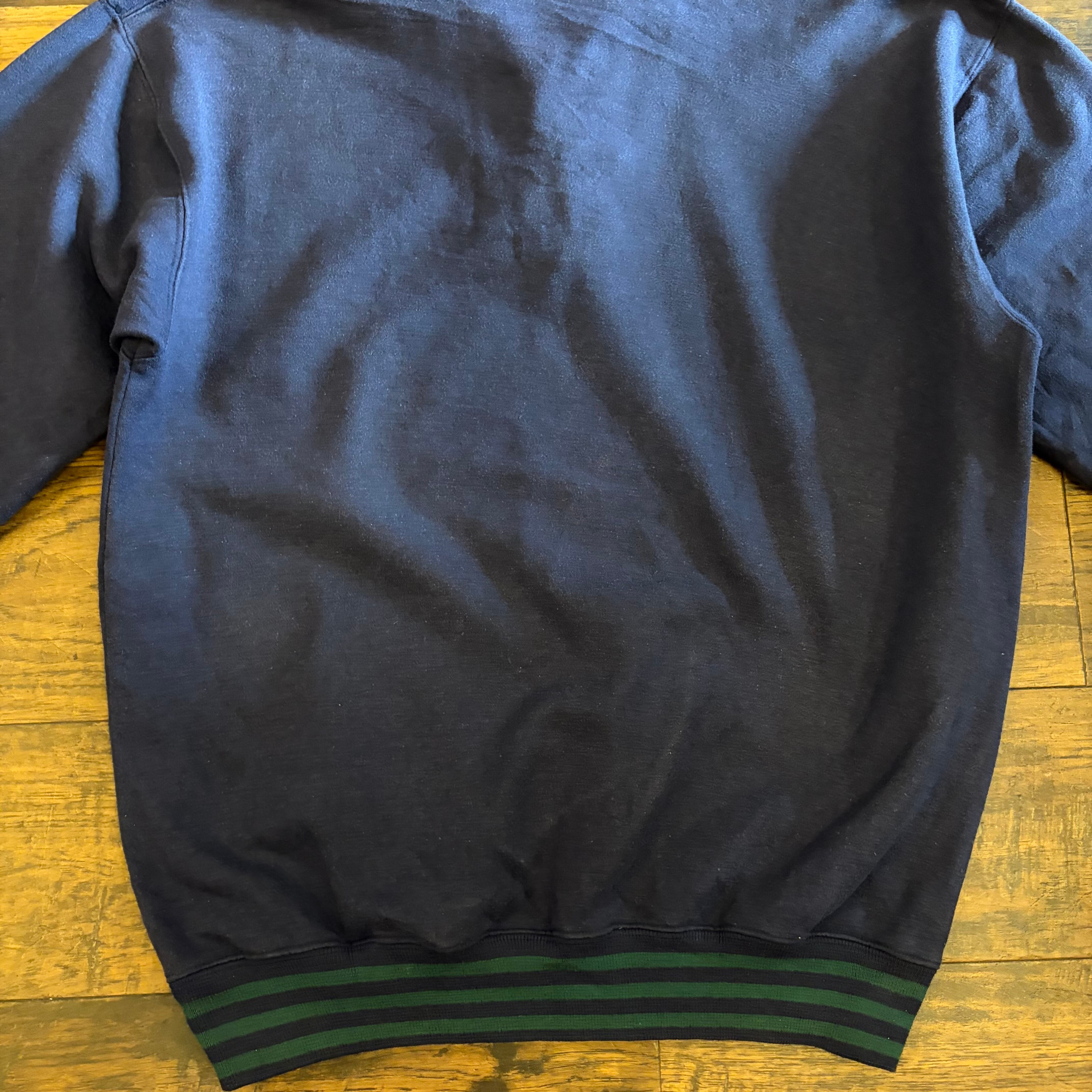 深みのあるネイビーカラーに、リブ部分のグリーンラインがアクセントになった一着。シンプルながらも配色でしっかり個性が出ており、90s〜00sらしいカジュアルな雰囲気を感じるデザインです。