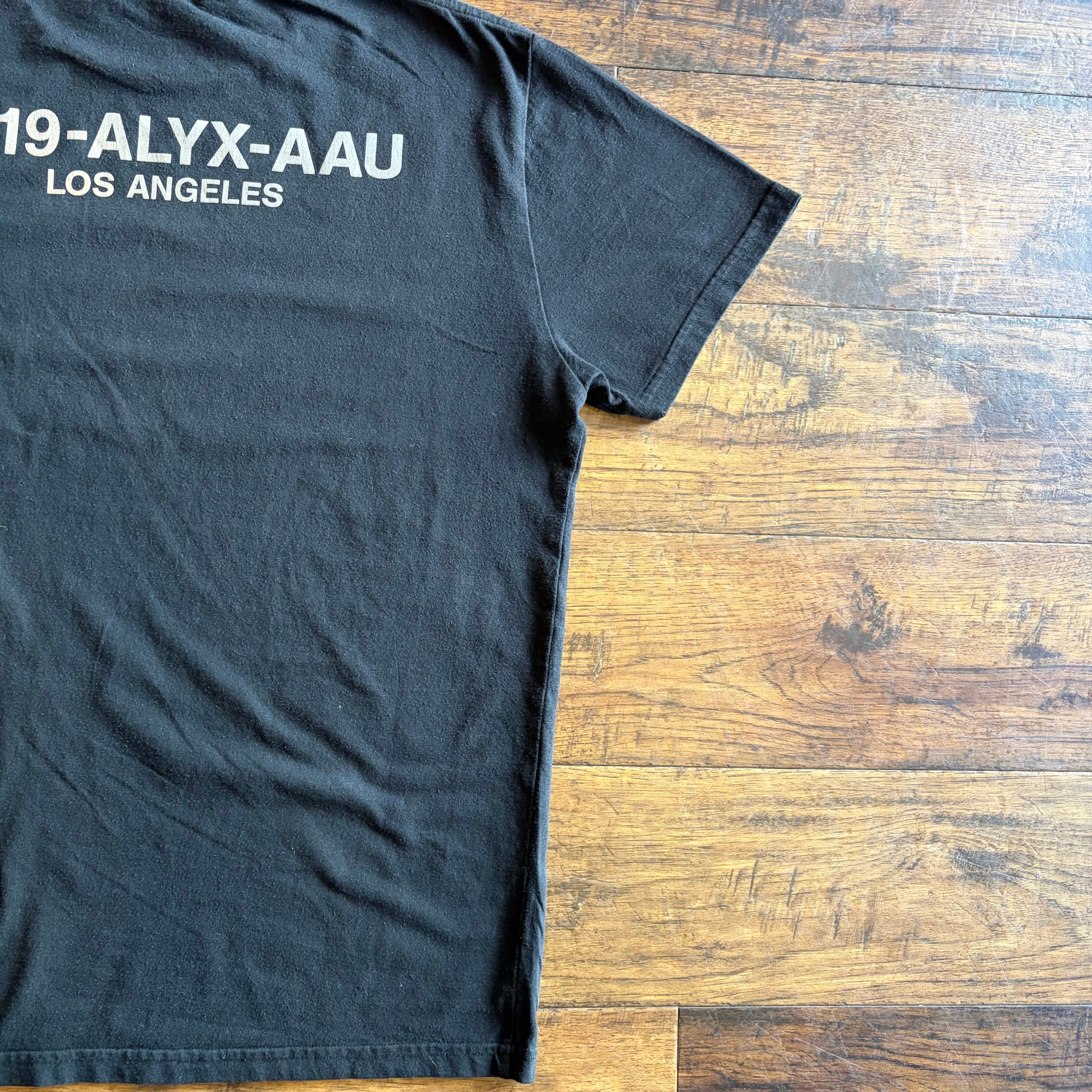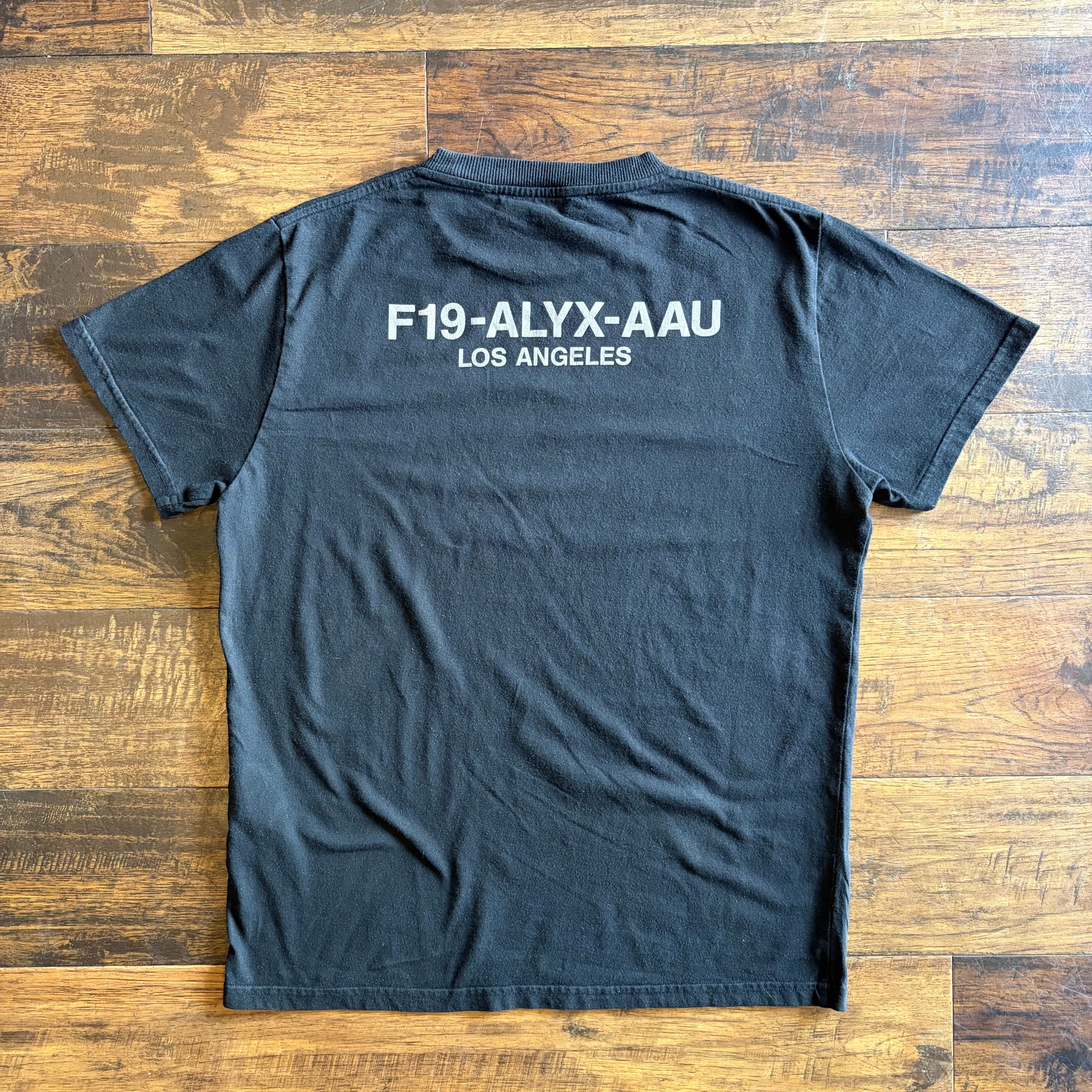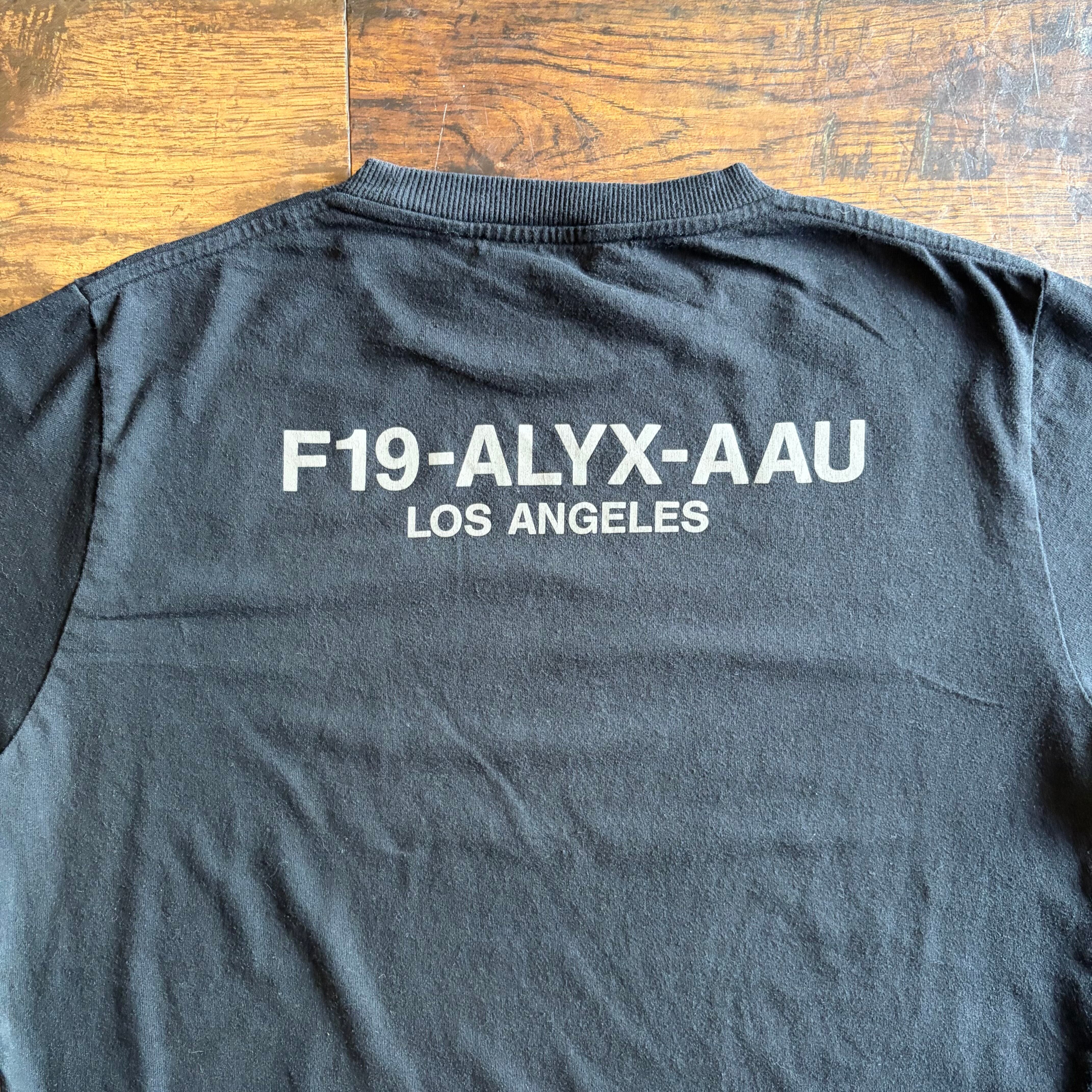 フロントは胸元に小さく「1017 ALYX 9SM」、バックには「F19-ALYX-AAU LOS ANGELES」と入るミニマルな一着。余白を活かした配置と無機質なタイポグラフィが、このブランドらしいインダストリアルな空気感をしっかり感じさせます。