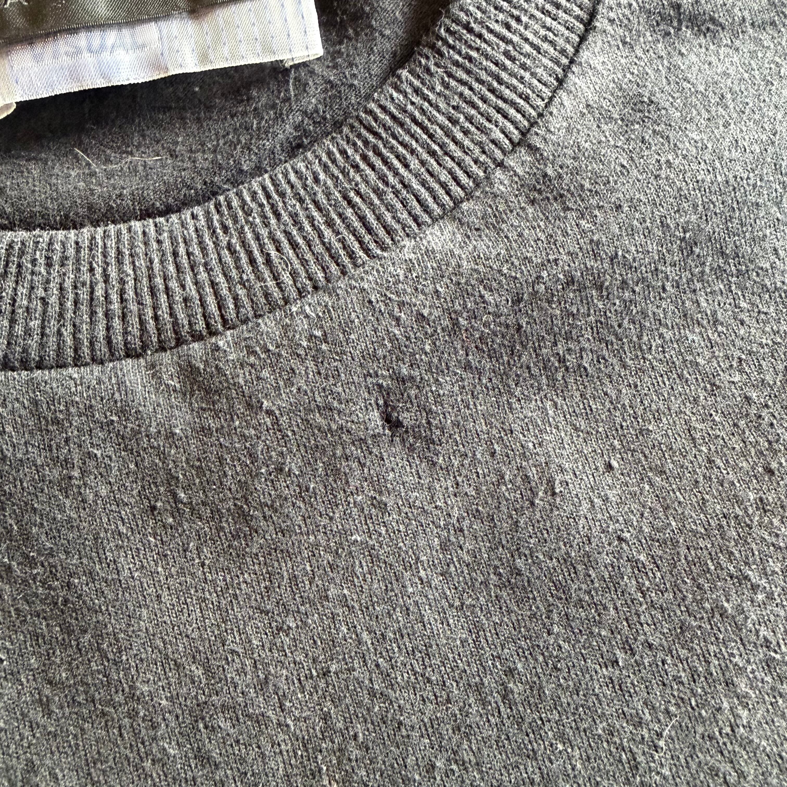 ・Condition: 【C】フロント首元付近に小さな穴、首元まわりに薄いシミ、全体に若干の毛羽立ちと着用感があります。着用に大きく支障のあるダメージではありませんが、状態を考慮したコンディションです。
