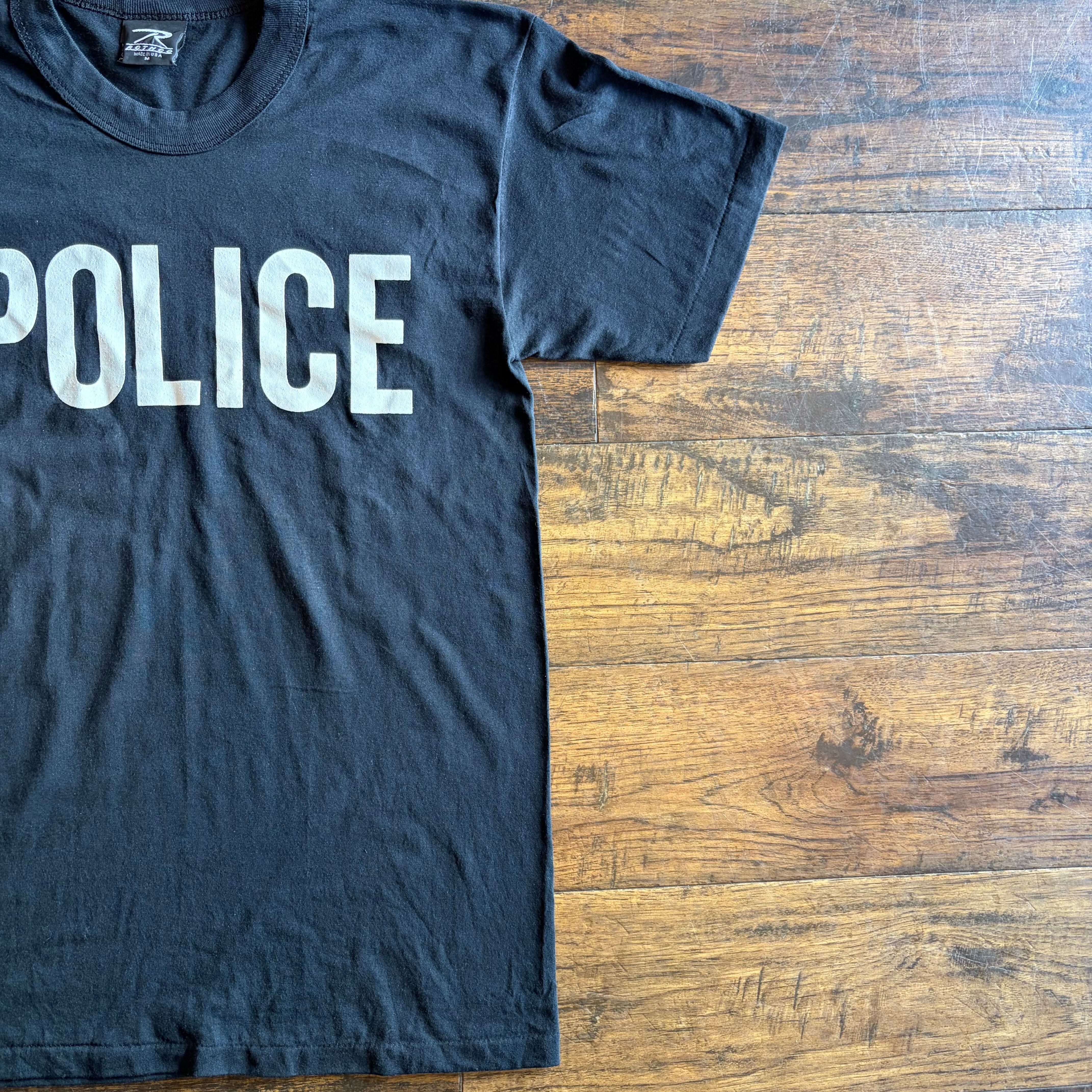 フロント・バックともに大きく「POLICE」と入るシンプルながらインパクトのある一着。無駄を削ぎ落としたストレートなメッセージ性が特徴で、ストリートでも映えるデザインです。