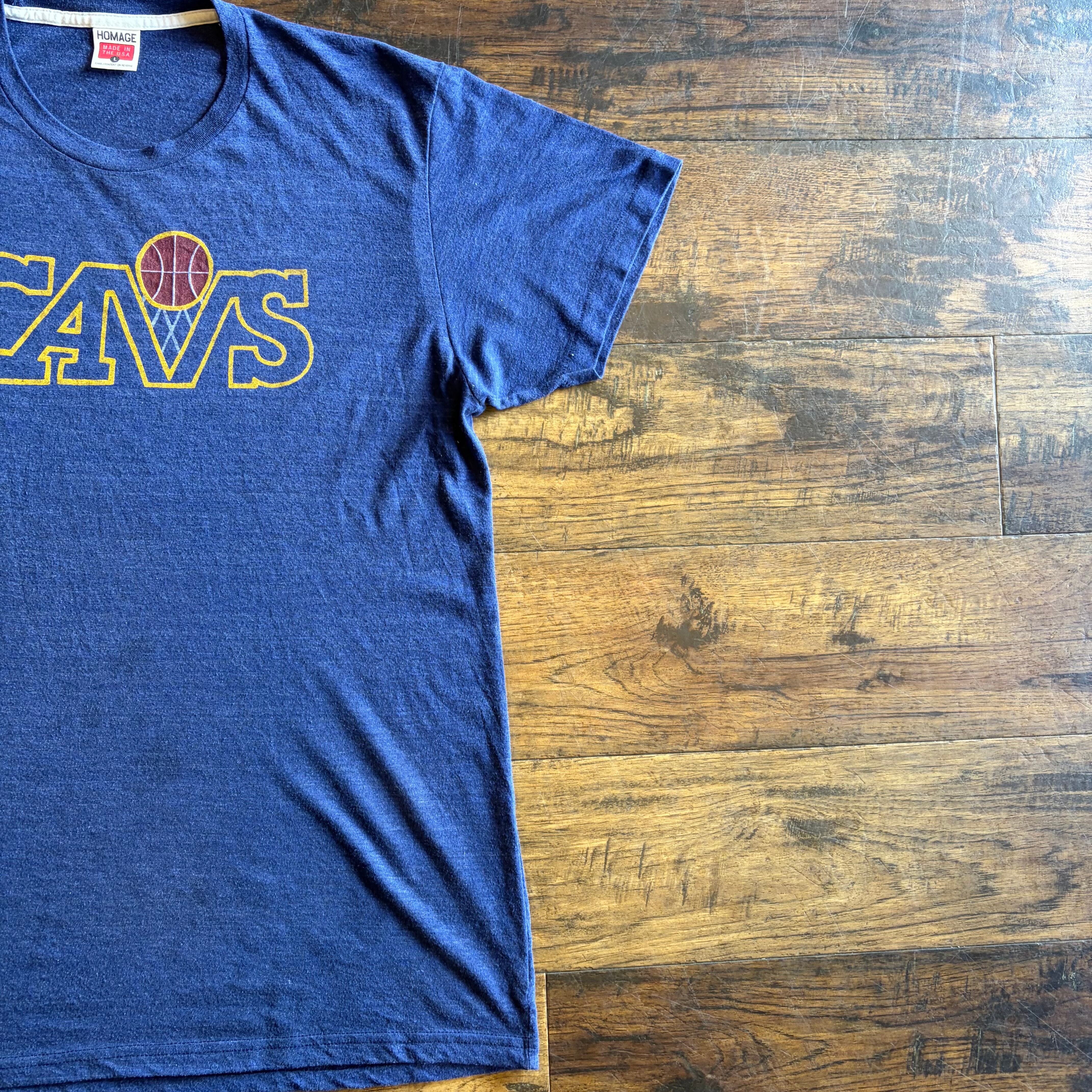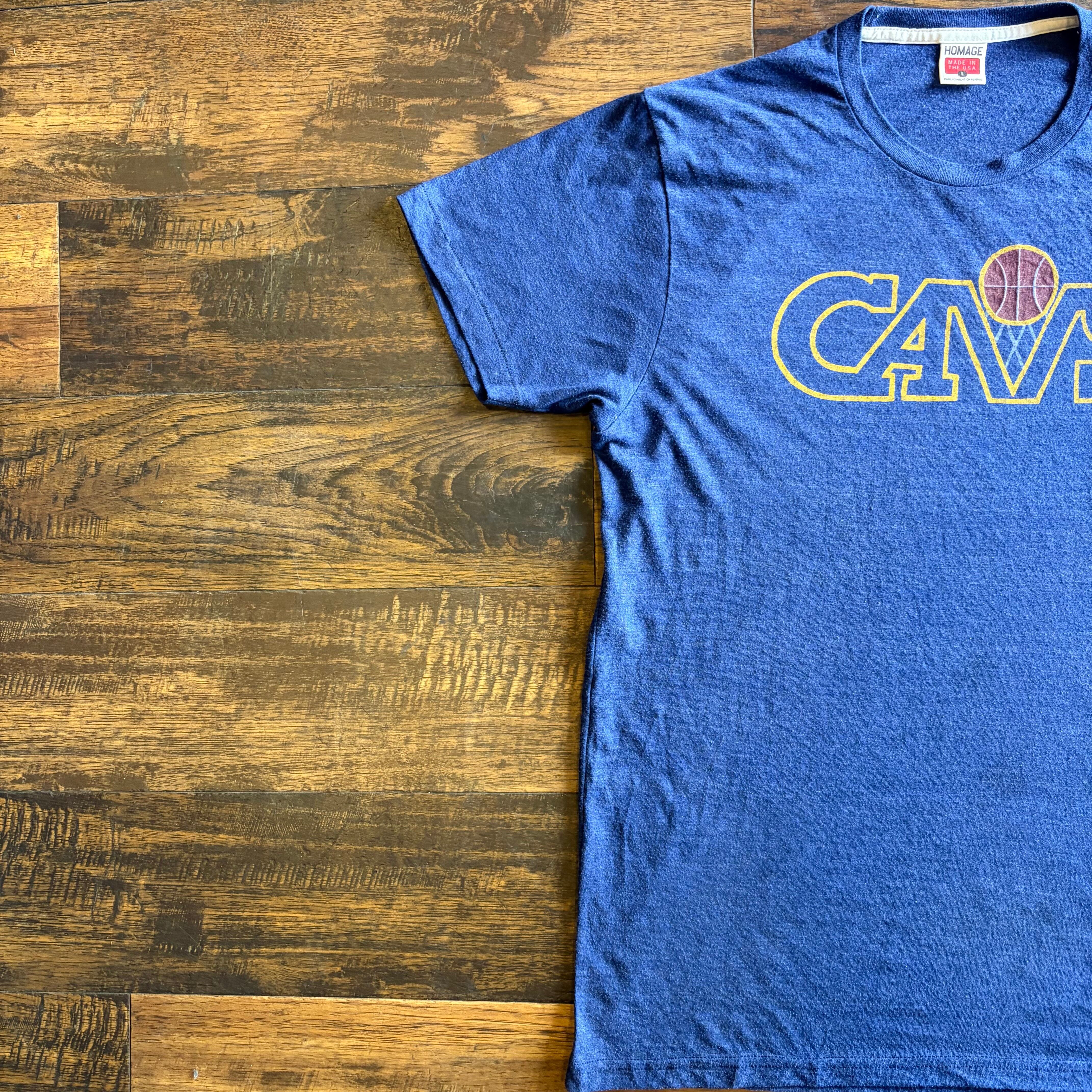 【USA製】HOMAGE CAVS プリントTシャツ ネイビー Size L