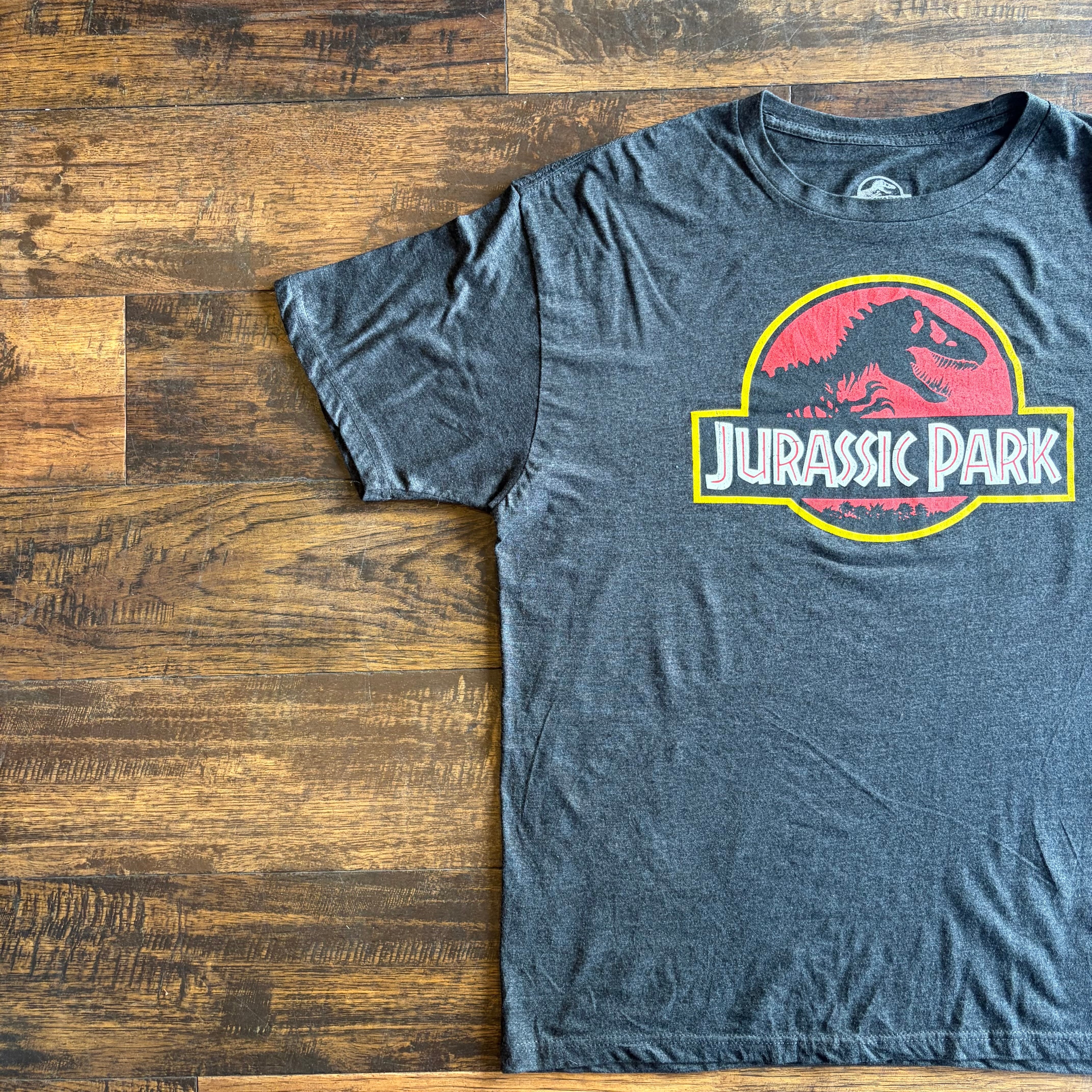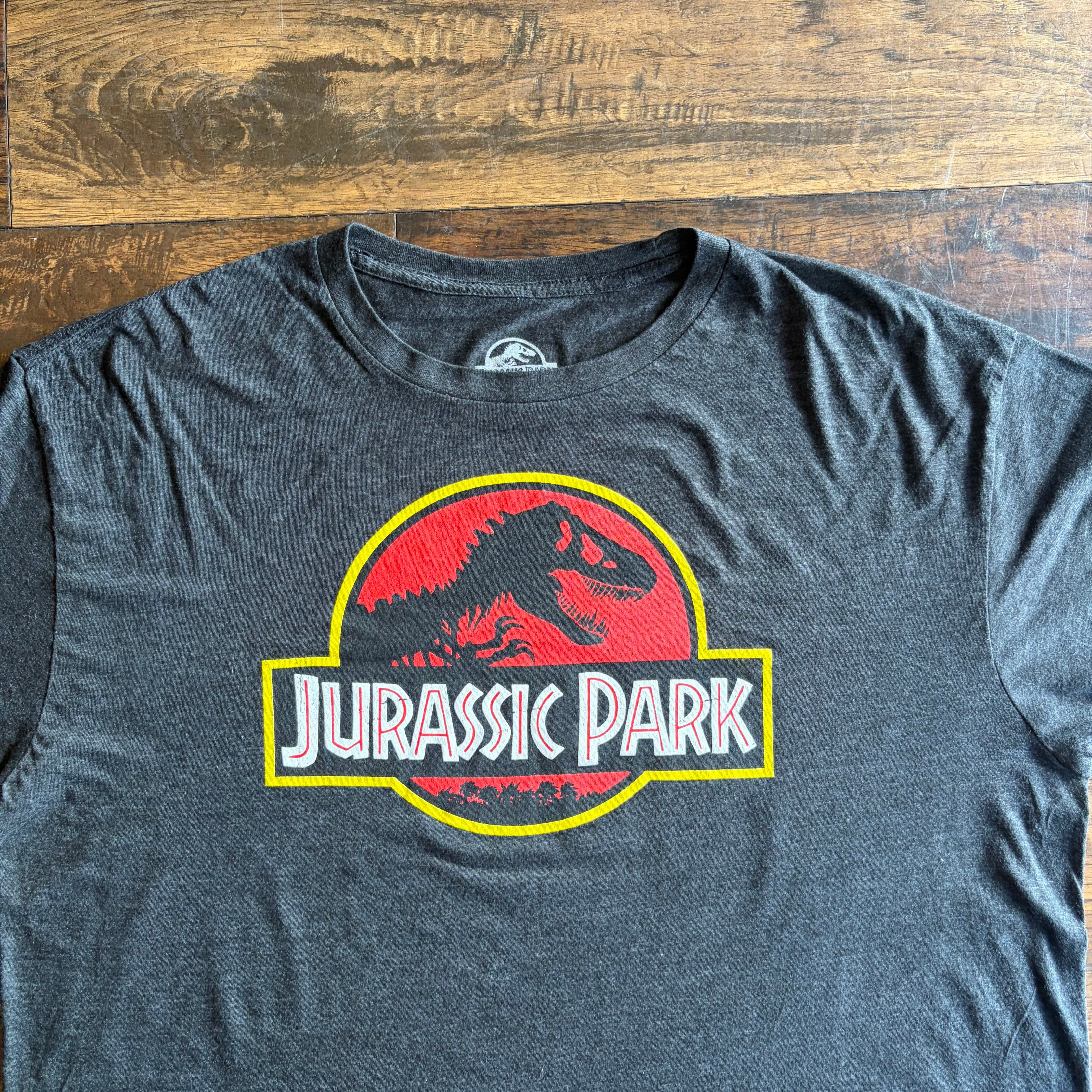 「Jurassic Park」は1993年公開の名作SF映画で、恐竜×科学というテーマで世界的な人気を誇る作品。このロゴは作品の象徴として広く認知されており、映画Tシャツの中でも特に定番かつ人気の高いデザインです。