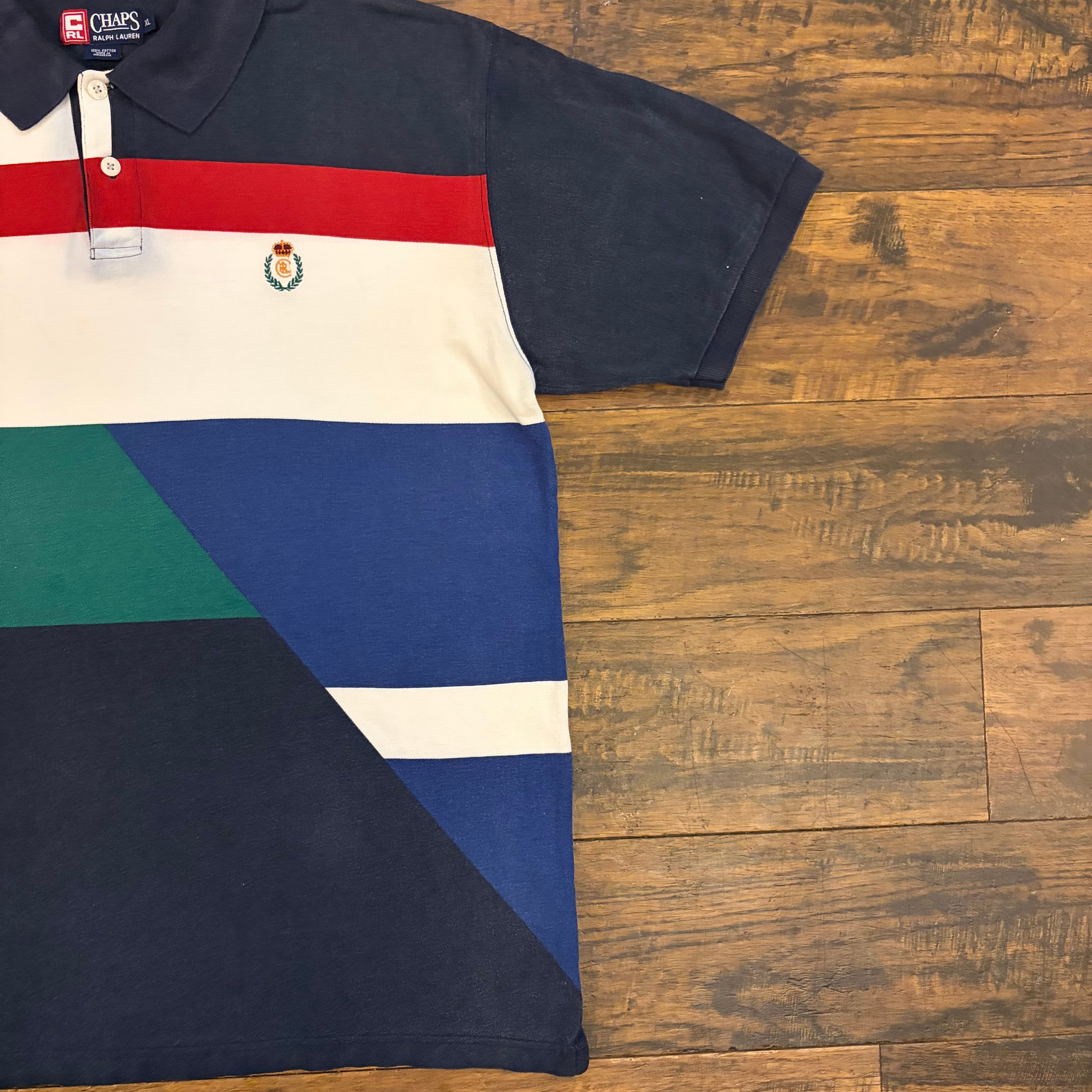 【00s】CHAPS RALPH LAUREN 切替デザイン ポロシャツ マルチカラー Size XL
