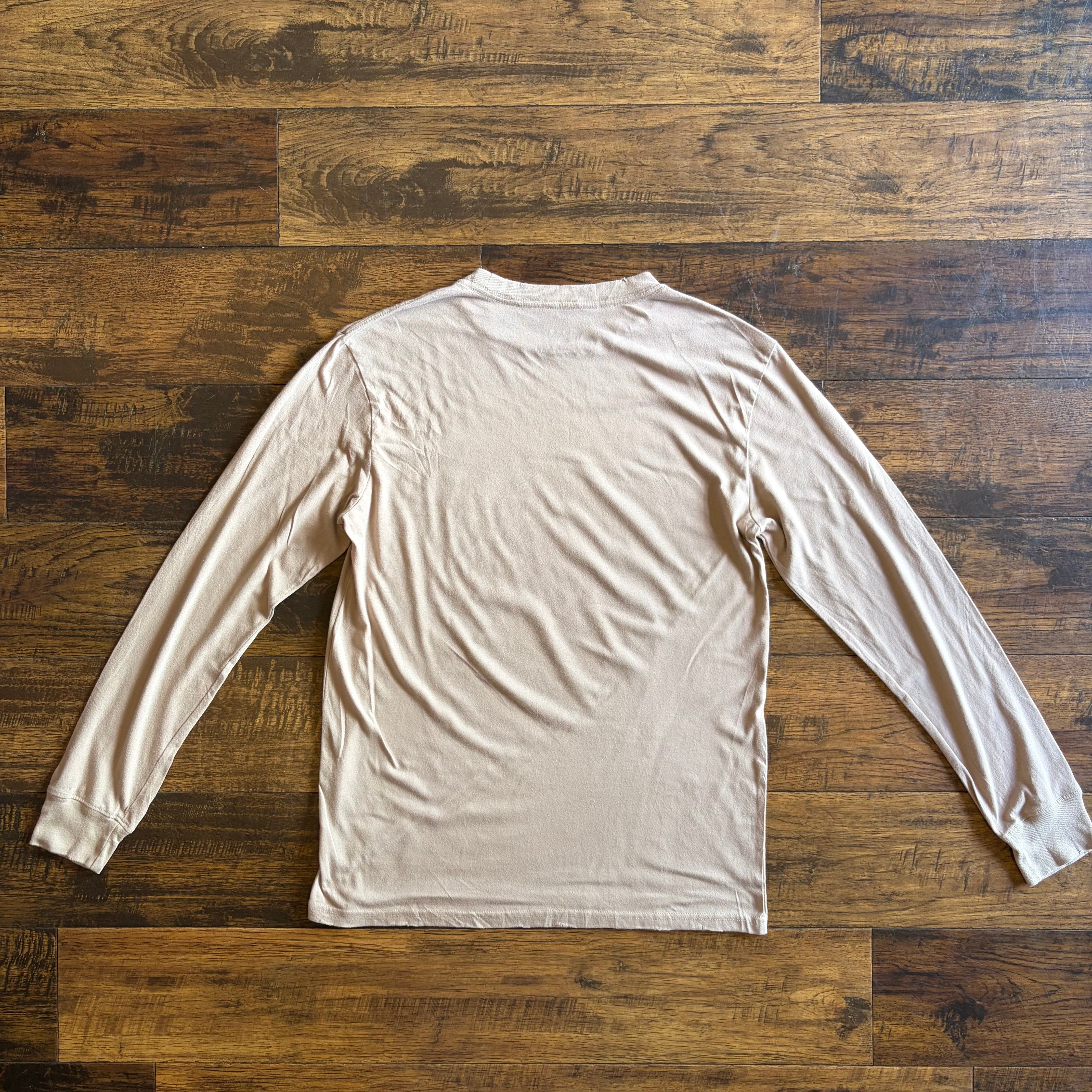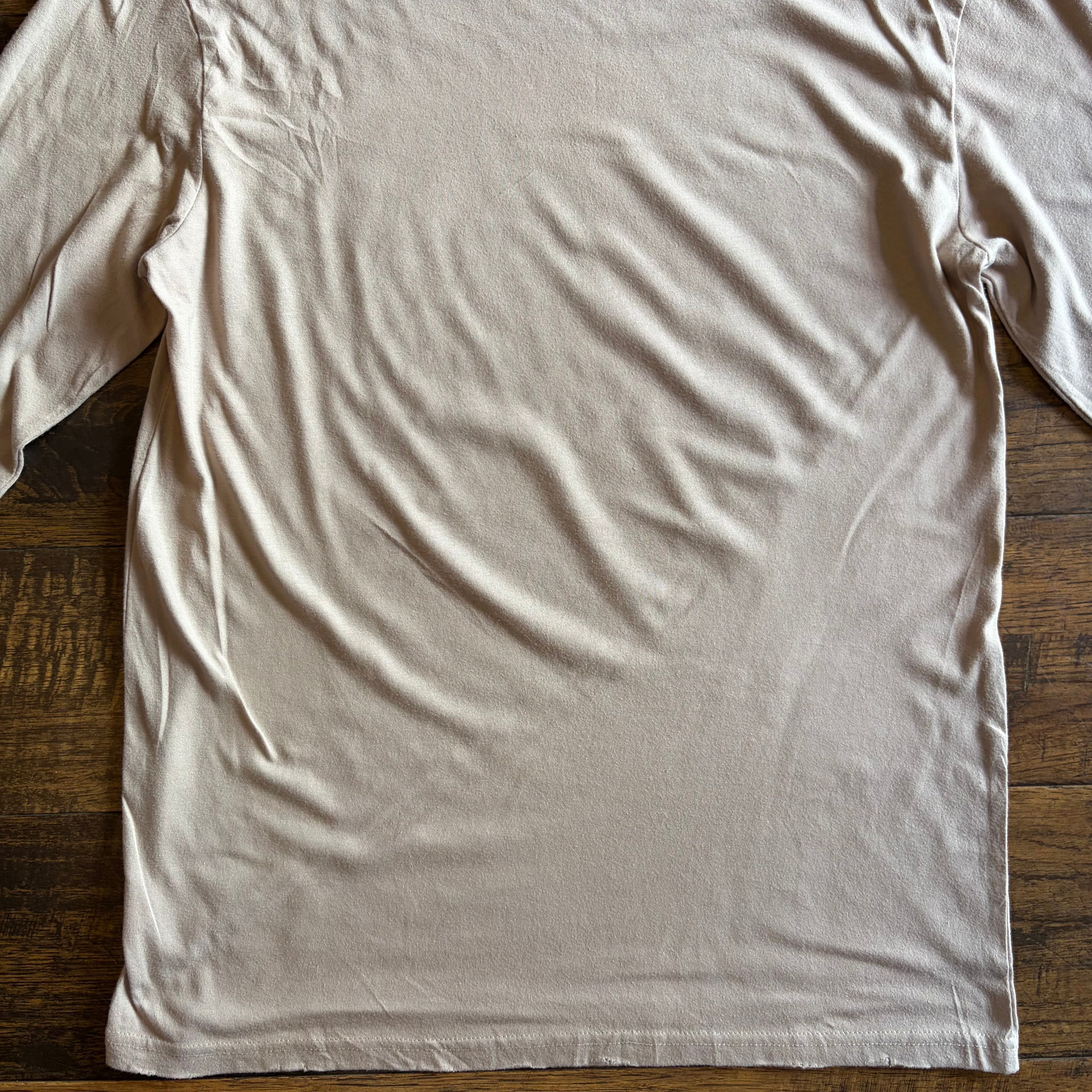 ボディはコットン×ポリエステルの混紡素材で、柔らかく着やすい質感。1枚でもインナーでも使いやすく、通年で活躍するロングスリーブTです。