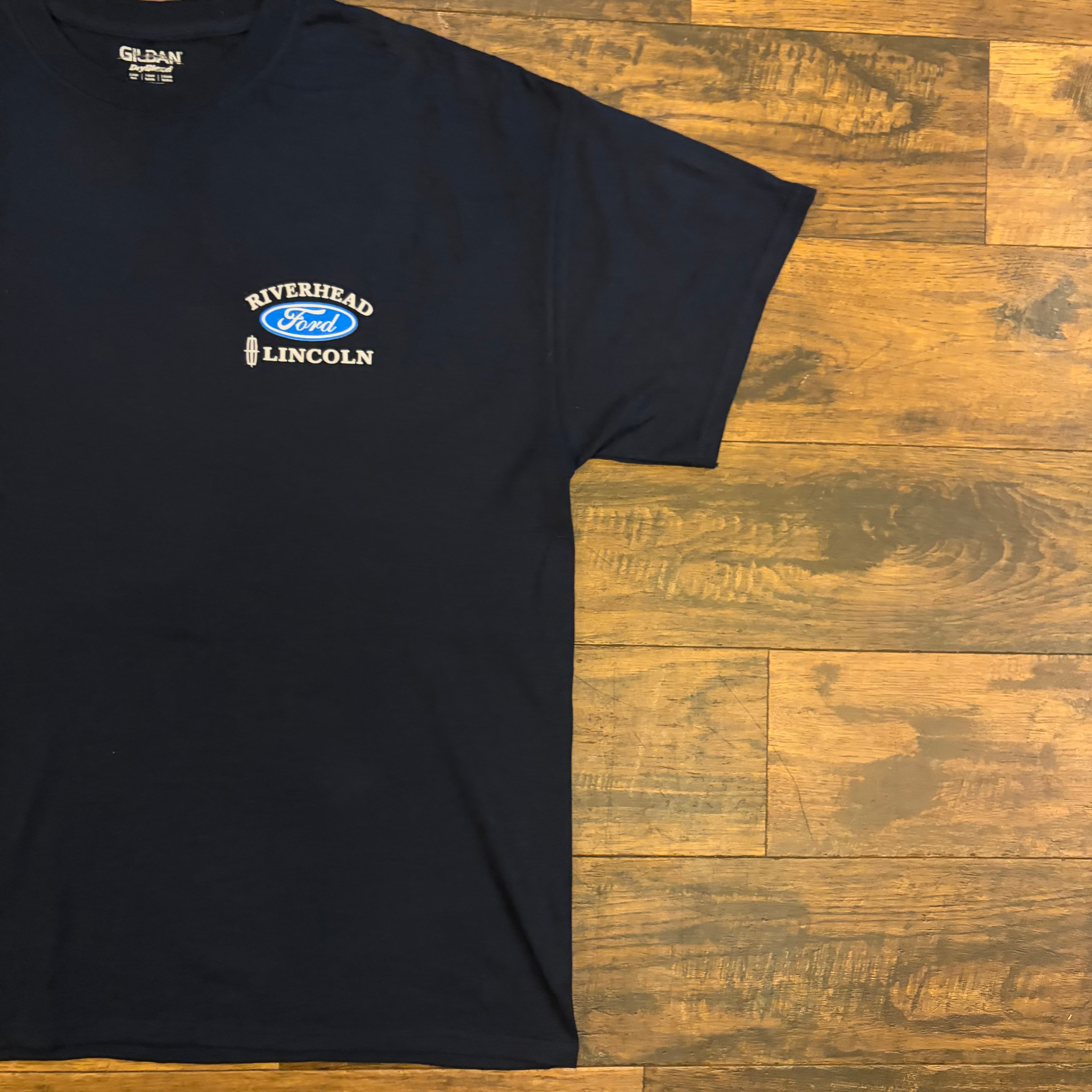 胸元に入る「RIVERHEAD Ford LINCOLN」のロゴは、実際の販売店・ディーラー物で使われるデザイン。いわゆる企業支給・販促系の1枚で、一般流通していないリアルな“現場系アイテム”です。
