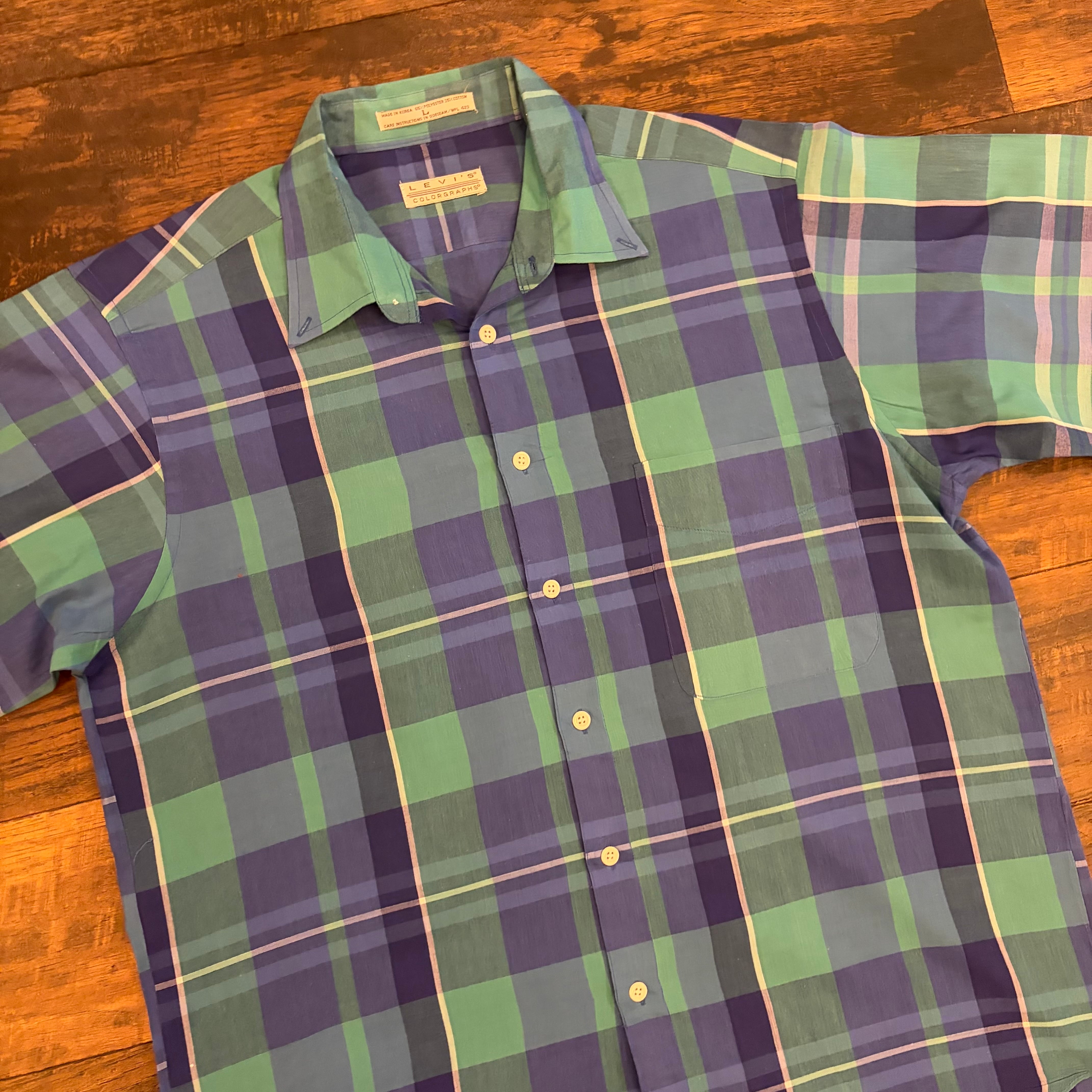 【90s】Levi’s Colorgraphs チェック 半袖シャツ グリーン×ブルー Size L