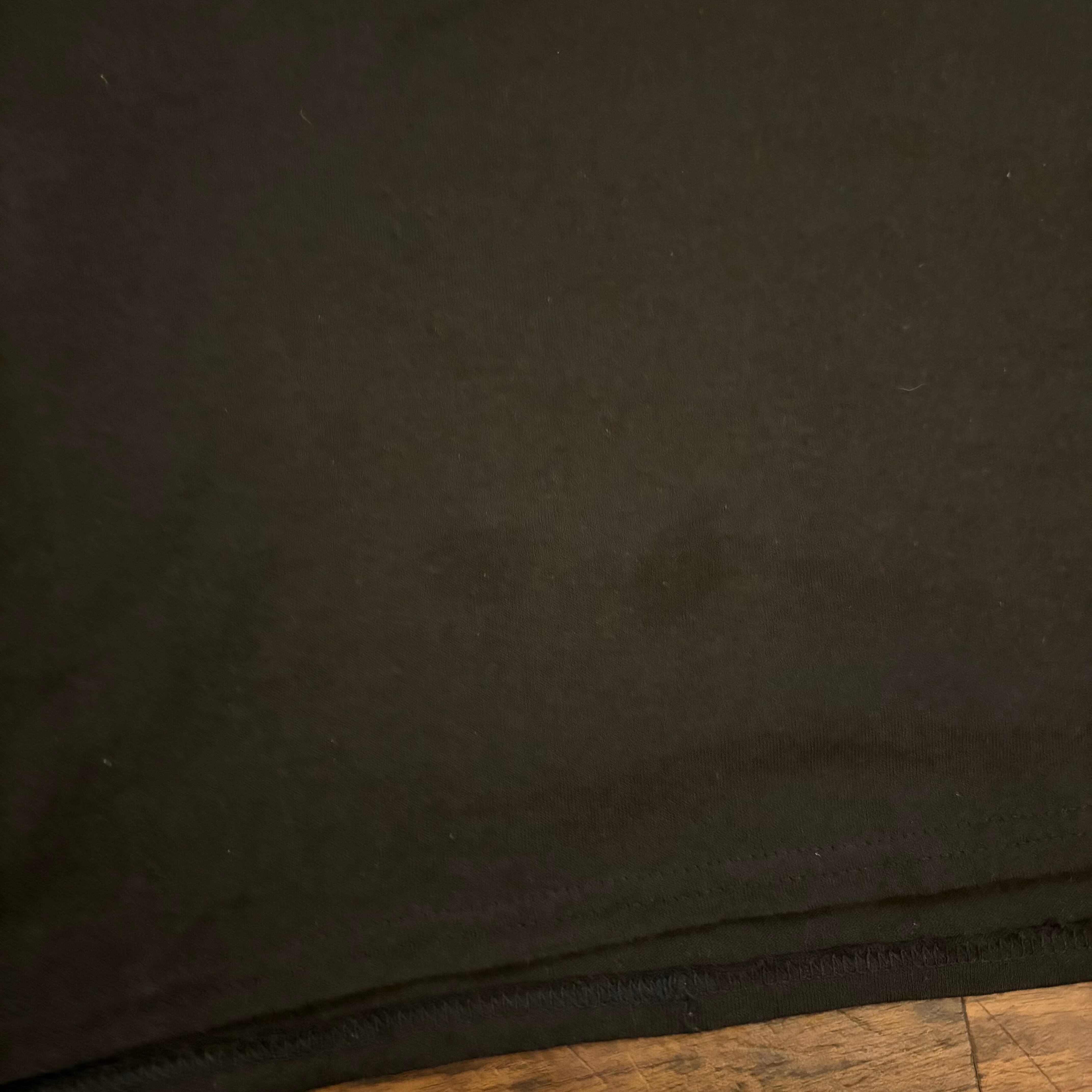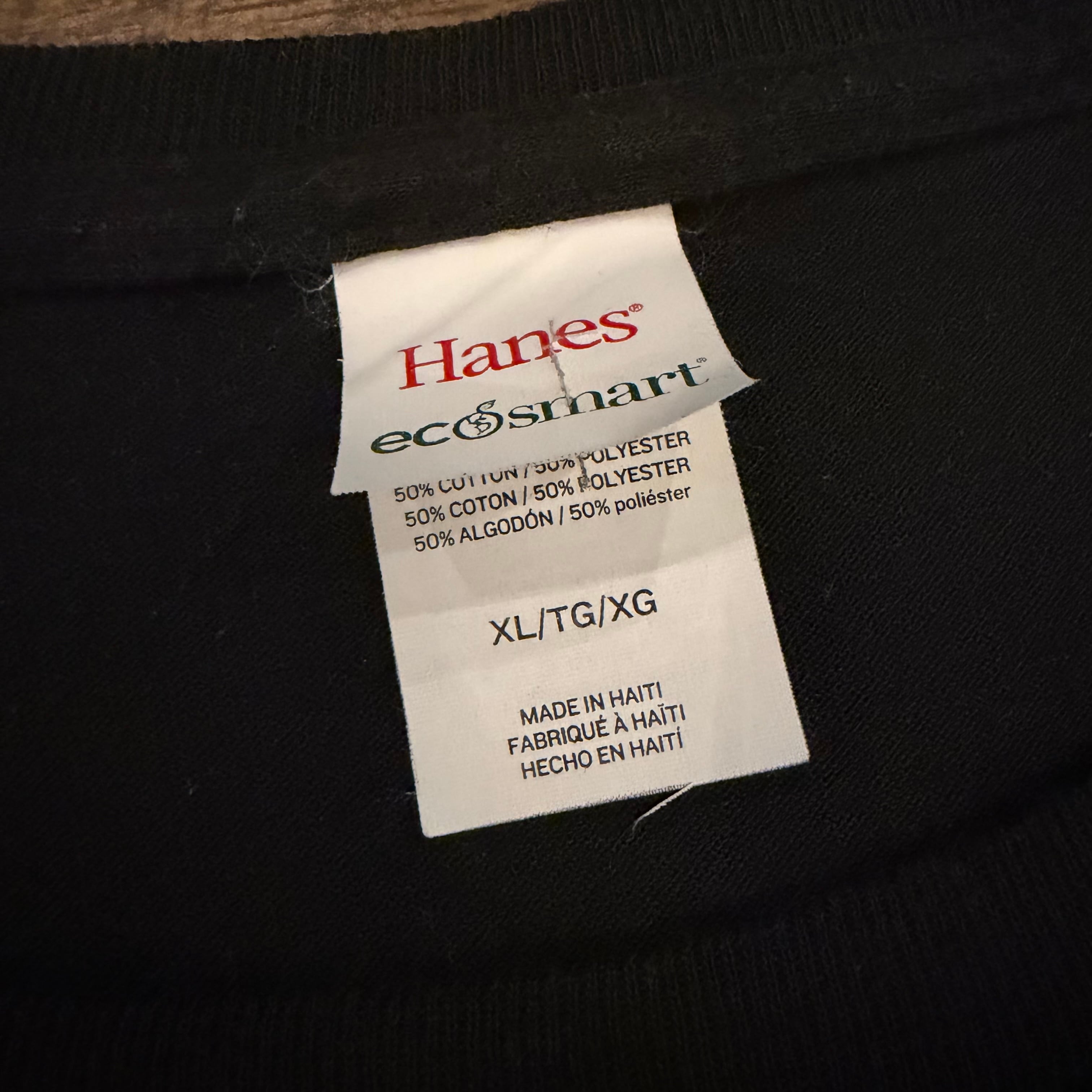 ボディはHanes ecosmart。ややフェード感の出たブラックで、雰囲気のある仕上がり。サイズもXLでゆったり着用可能です。