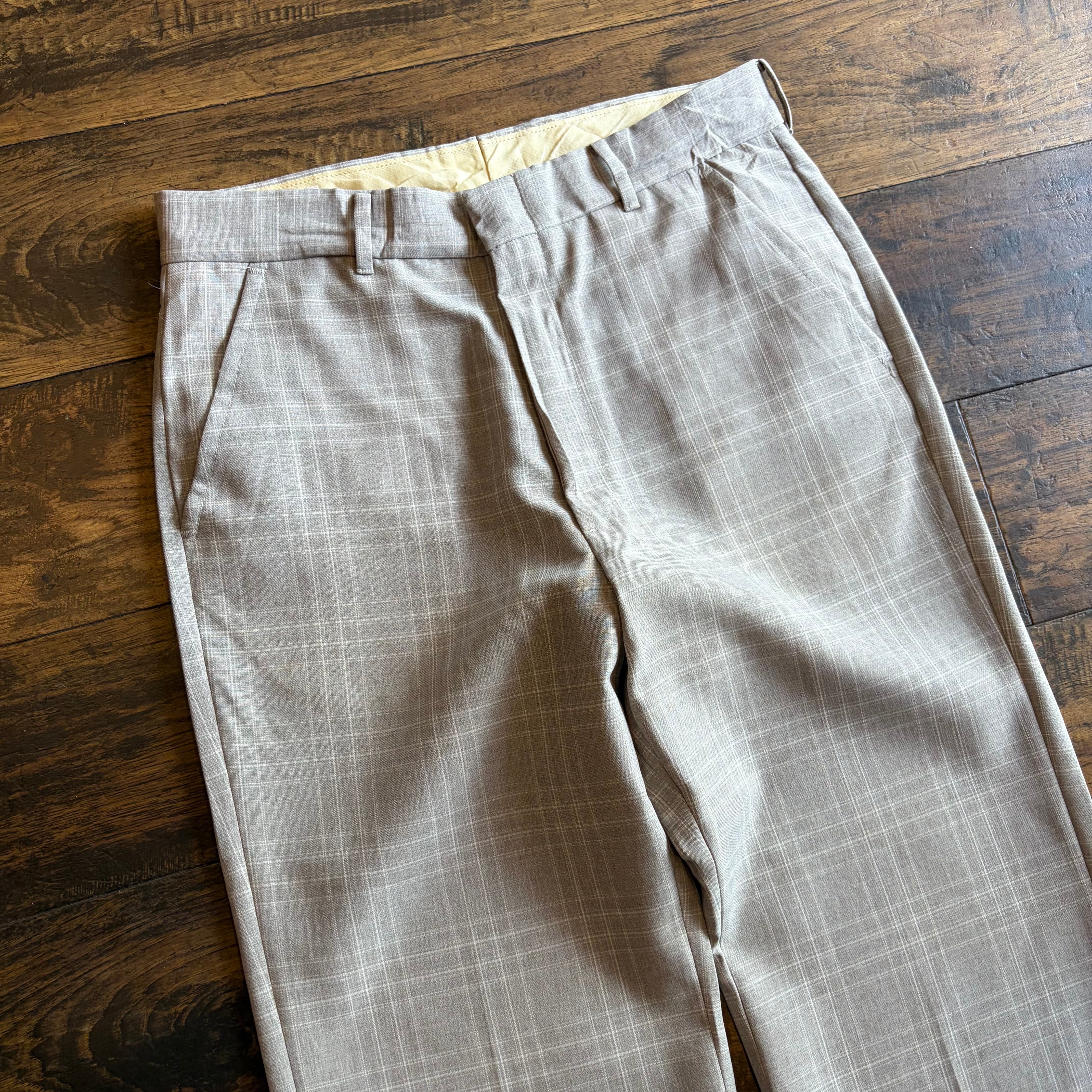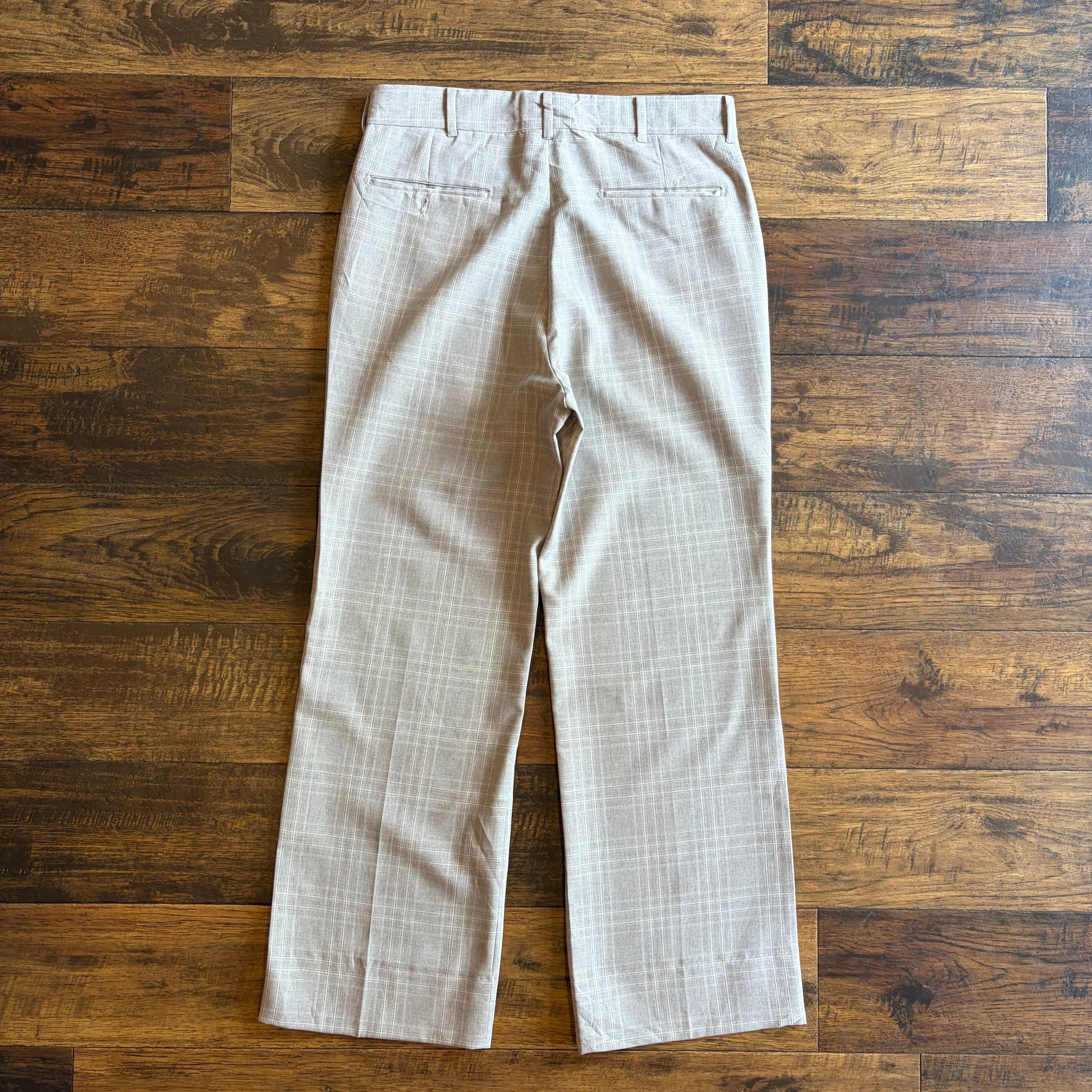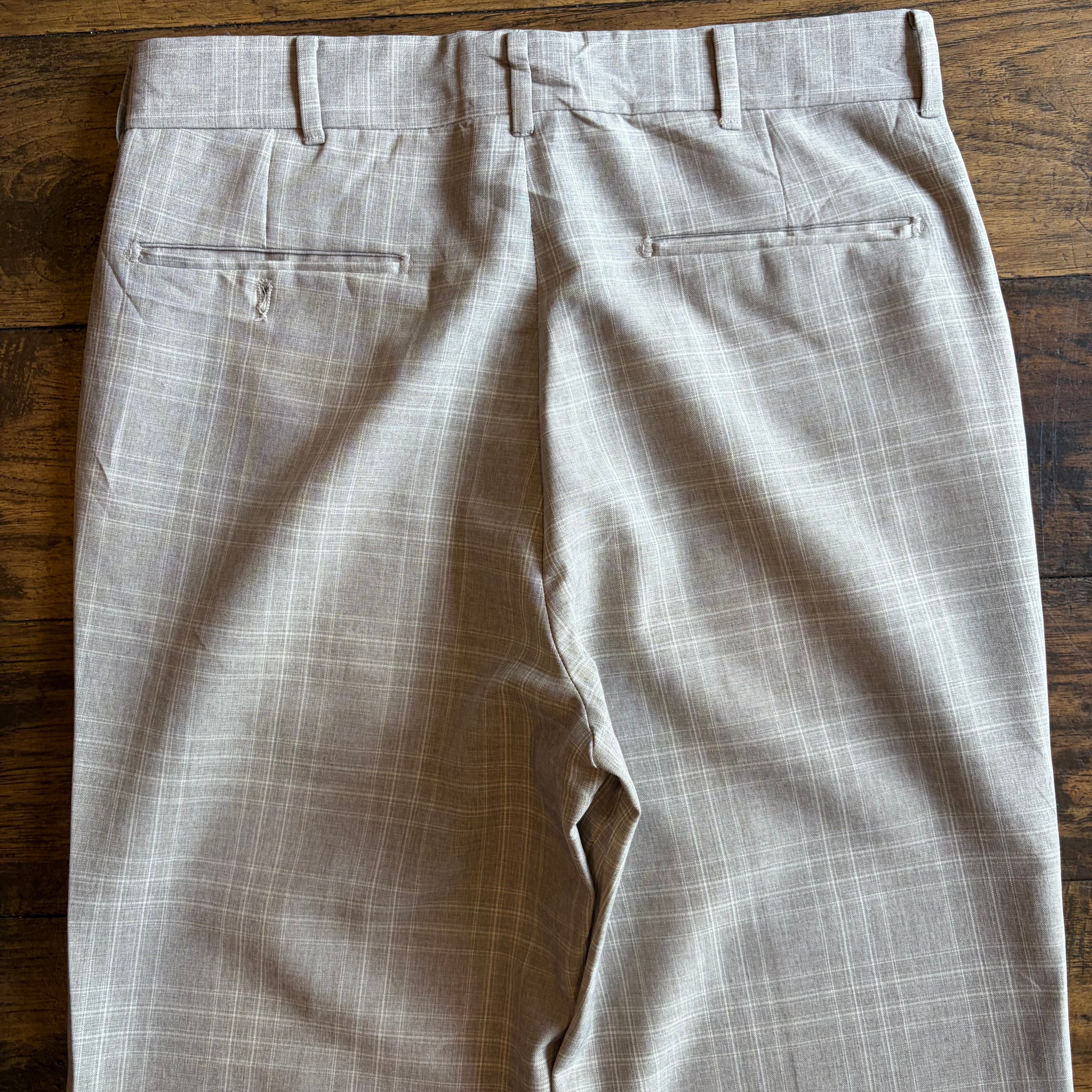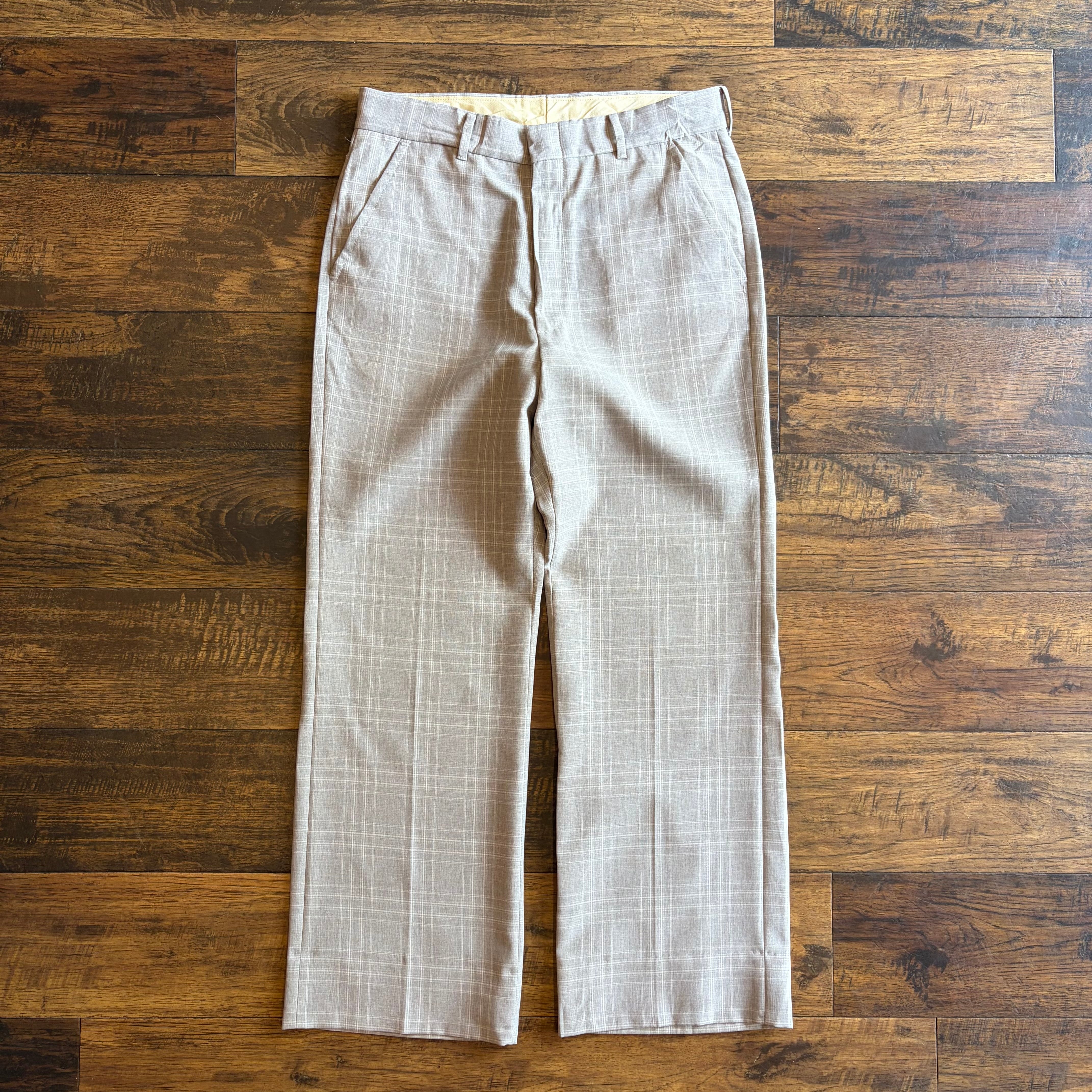 【USA製】80s〜90s FARAH ワイド スラックス チェック ベージュ SCOVILLジップ Size W31