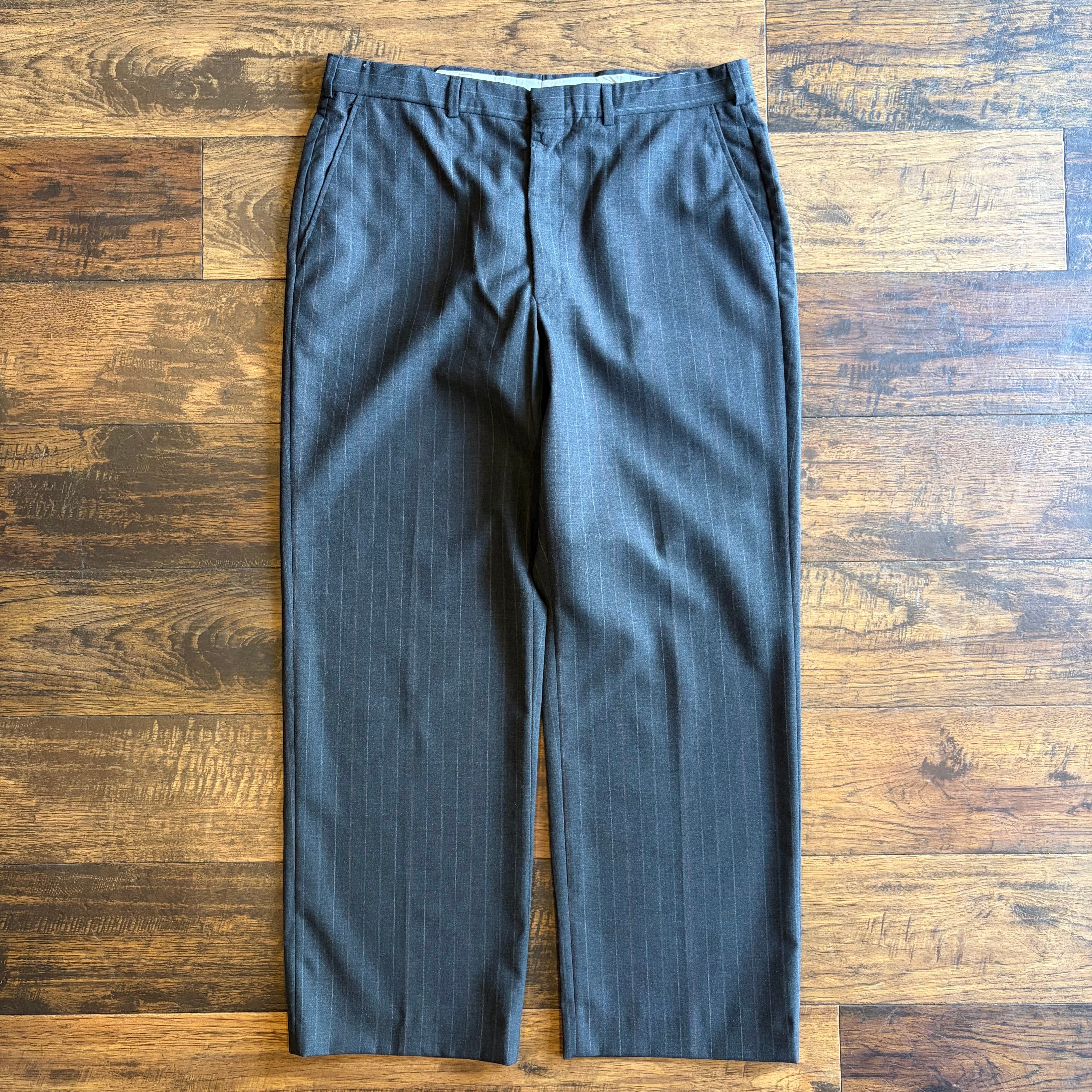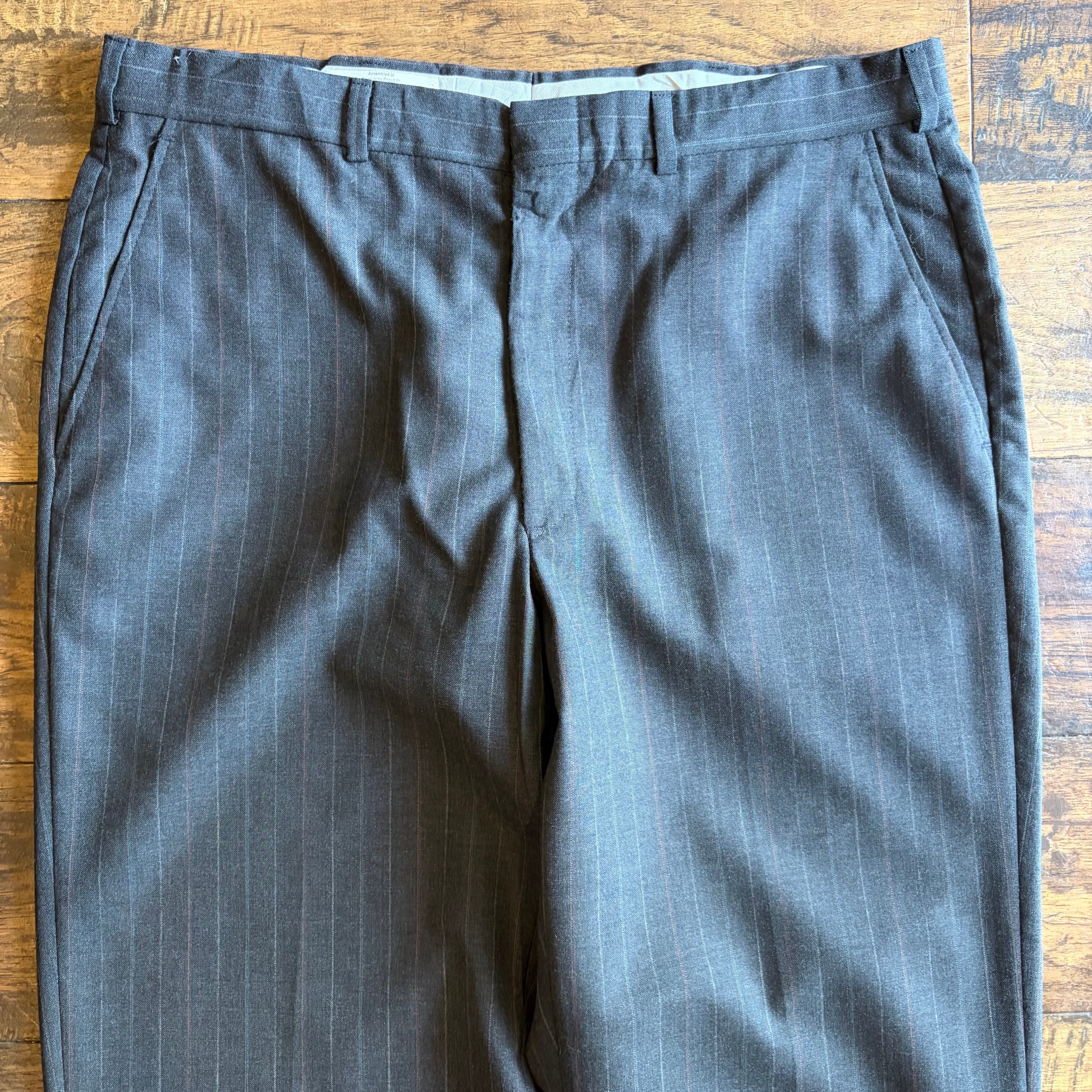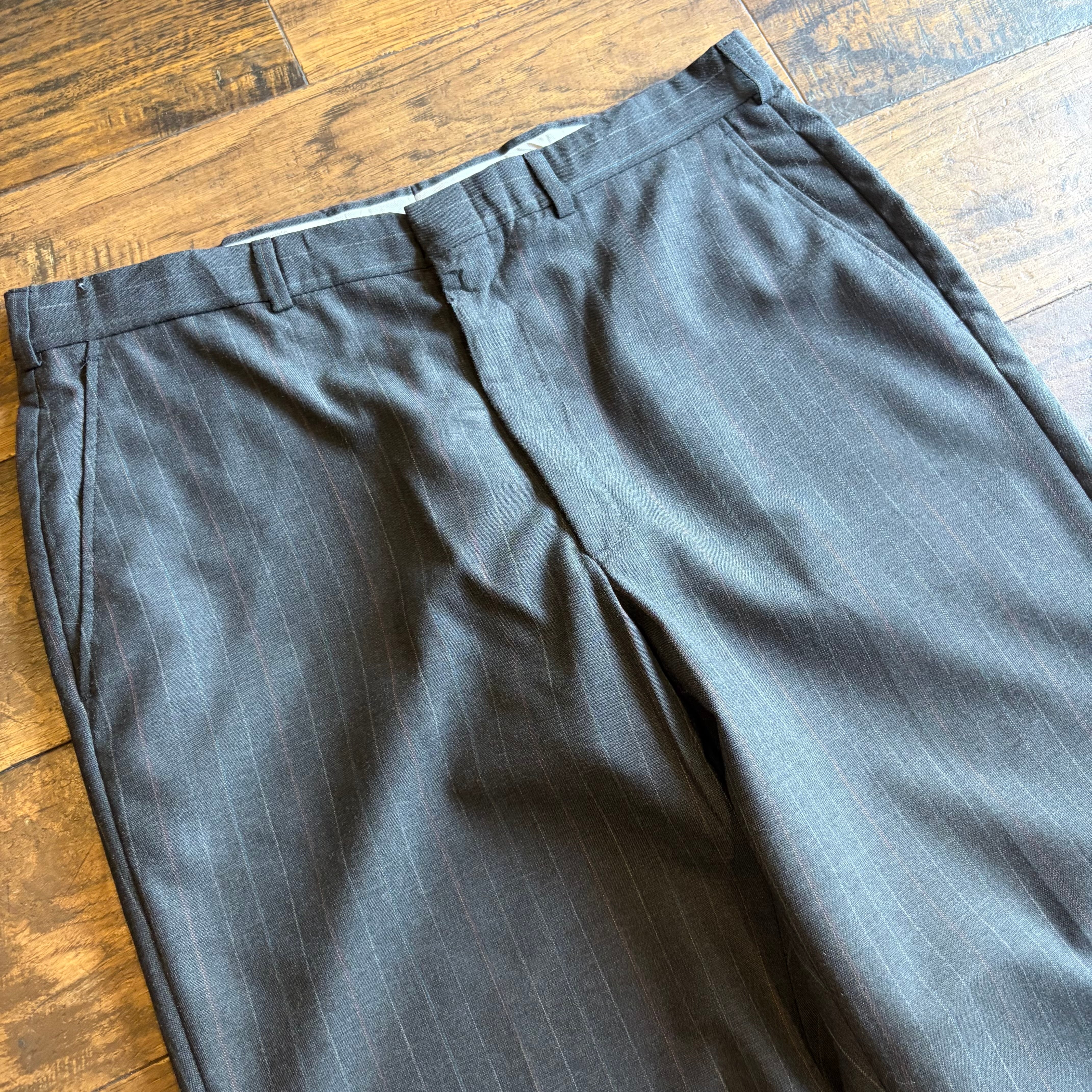 【80s〜90s】TOWNCRAFT ワイド ピンストライプ スラックス TALONジップ グレー Size W36